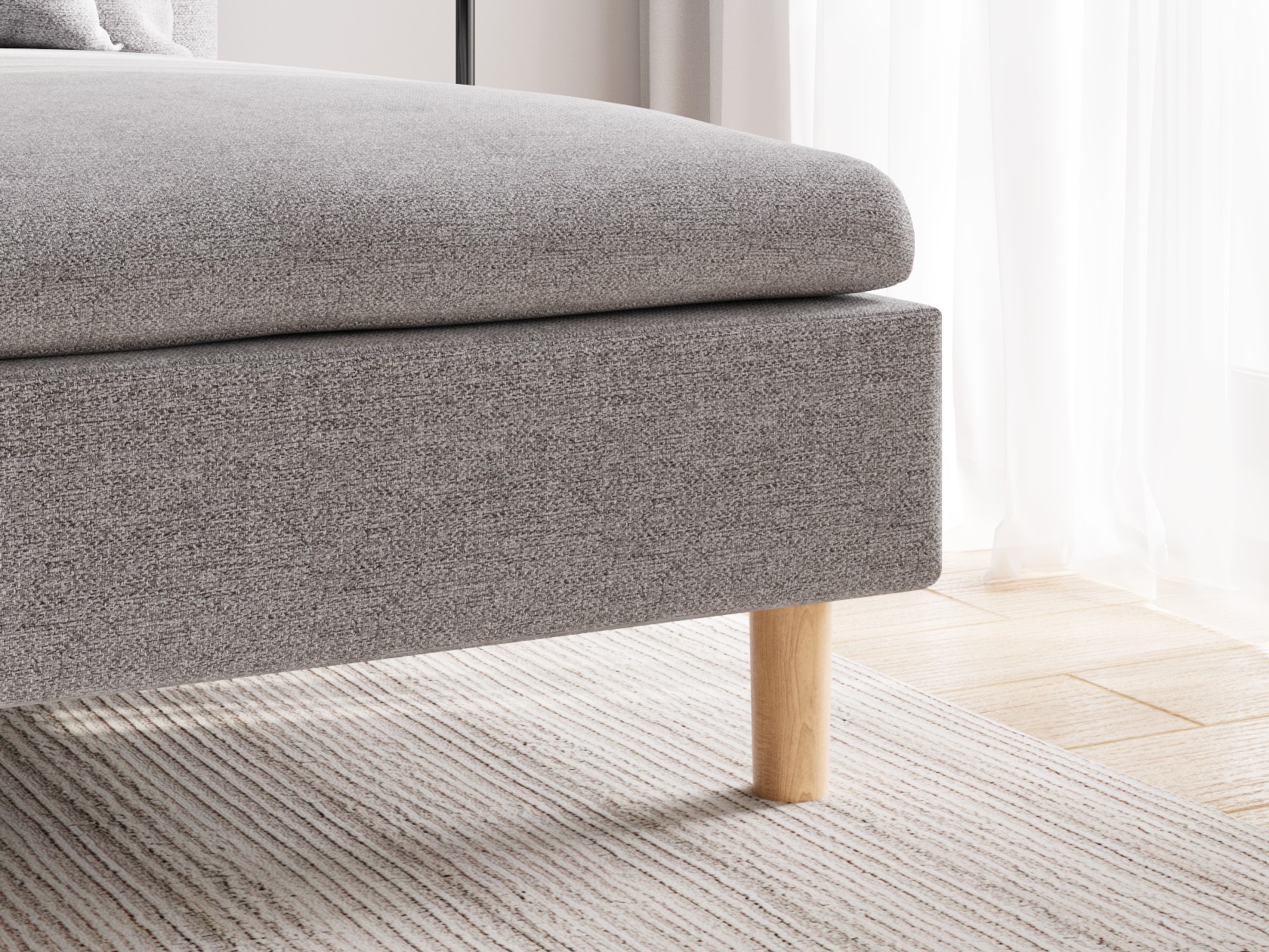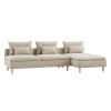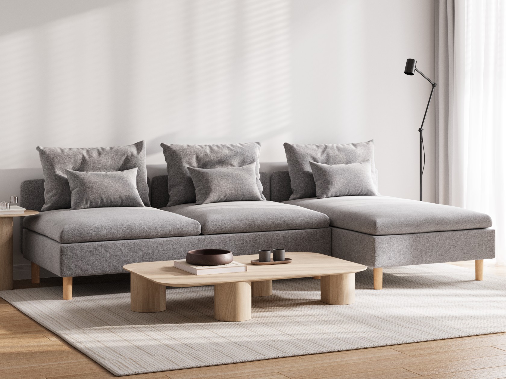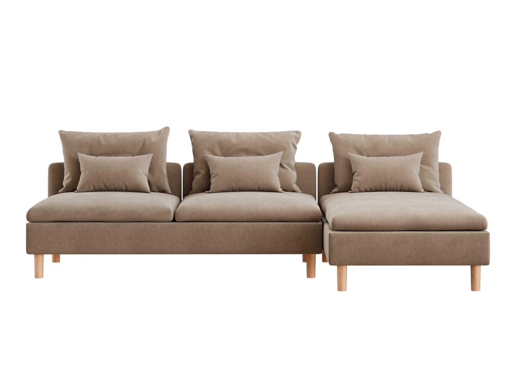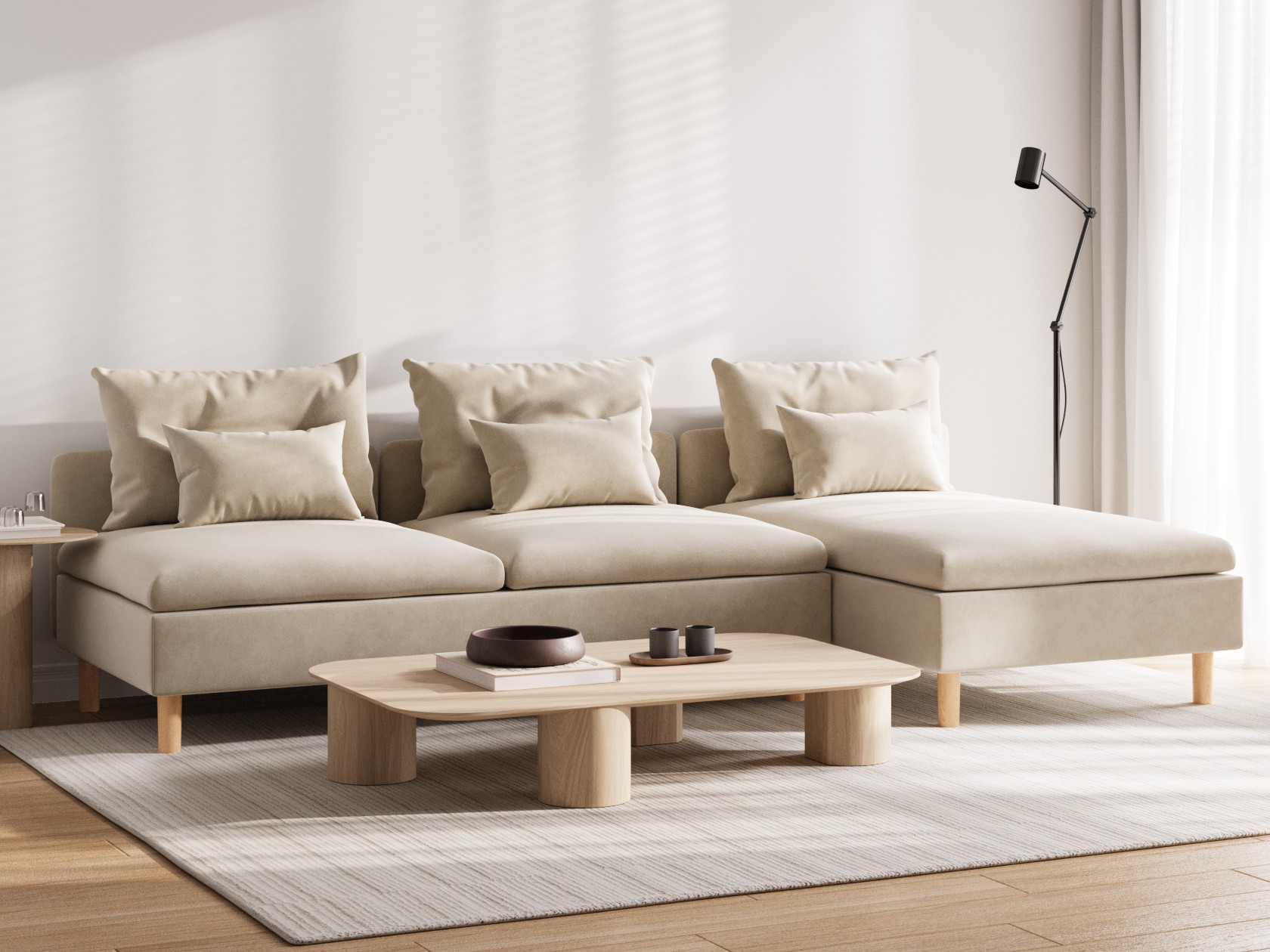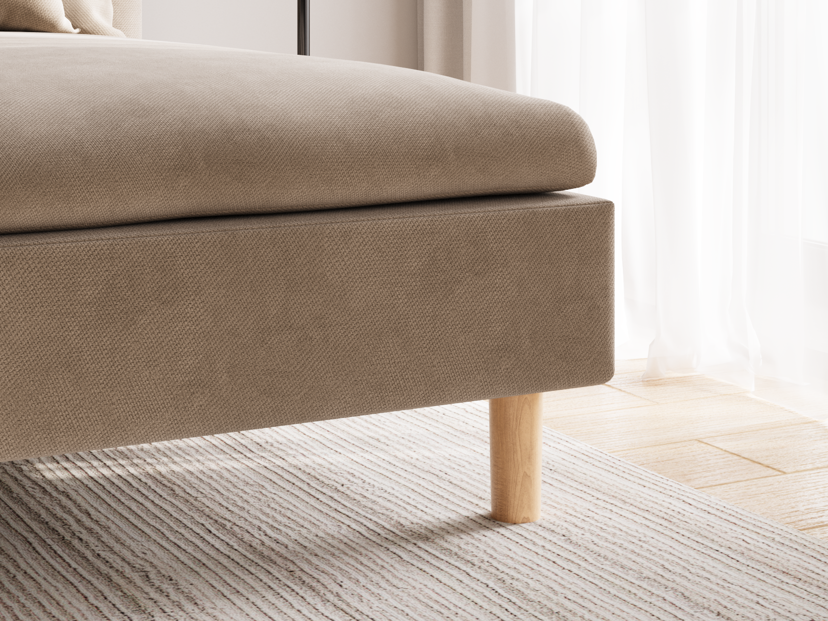 Угловой диван Калисто с оттоманкой — удачное решение для современного интерьера. На нём удобно отдыхать сидя, лежа или полулежа, откинувшись на мягкие подушки. Круглые деревянные ножки смотрятся очень уютно и облегчают уборку, в том числе с помощью робота-пылесоса. Спинка обита лицевой тканью, поэтому модель отлично подходит для зонирования просторной гостиной. Диван можно комбинировать с другими элементами коллекции.