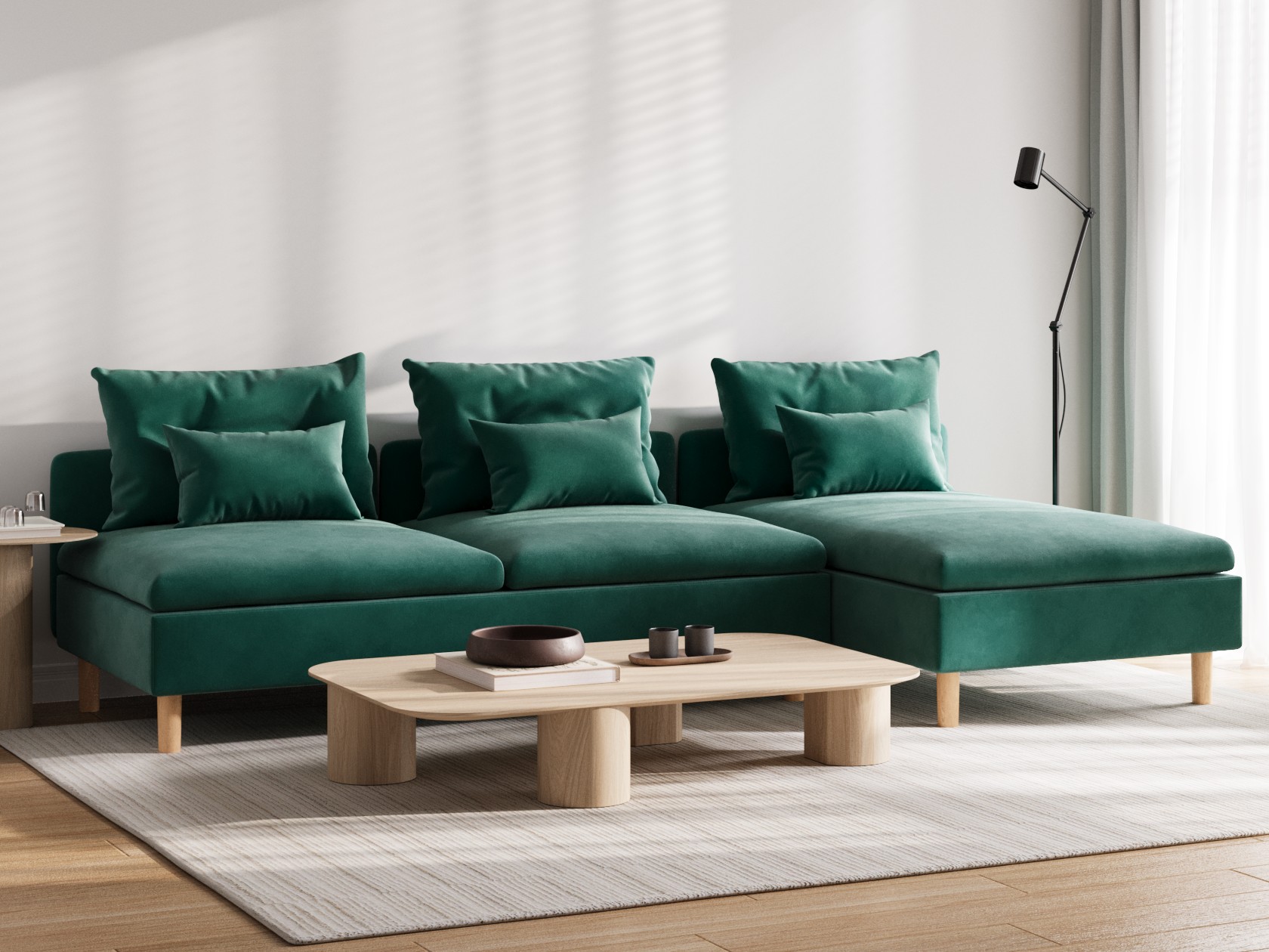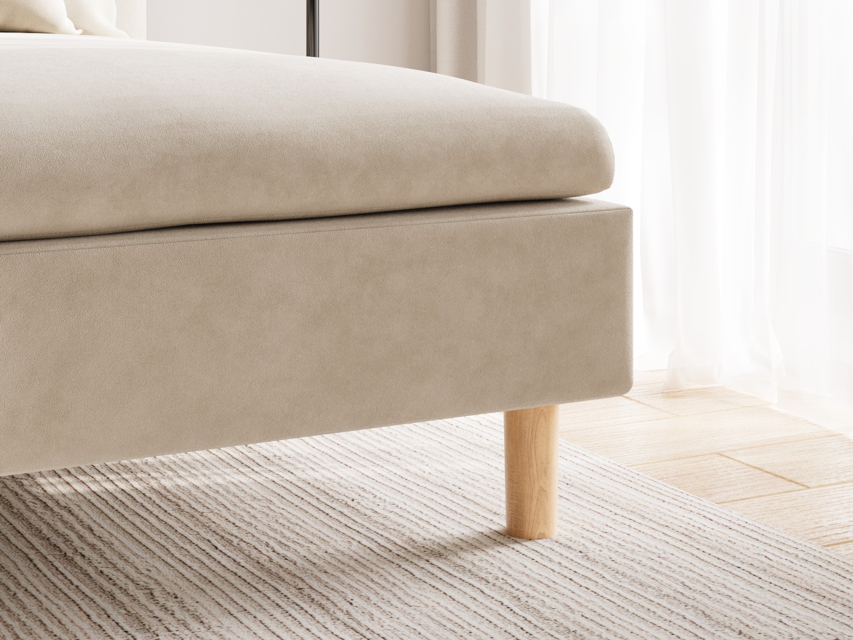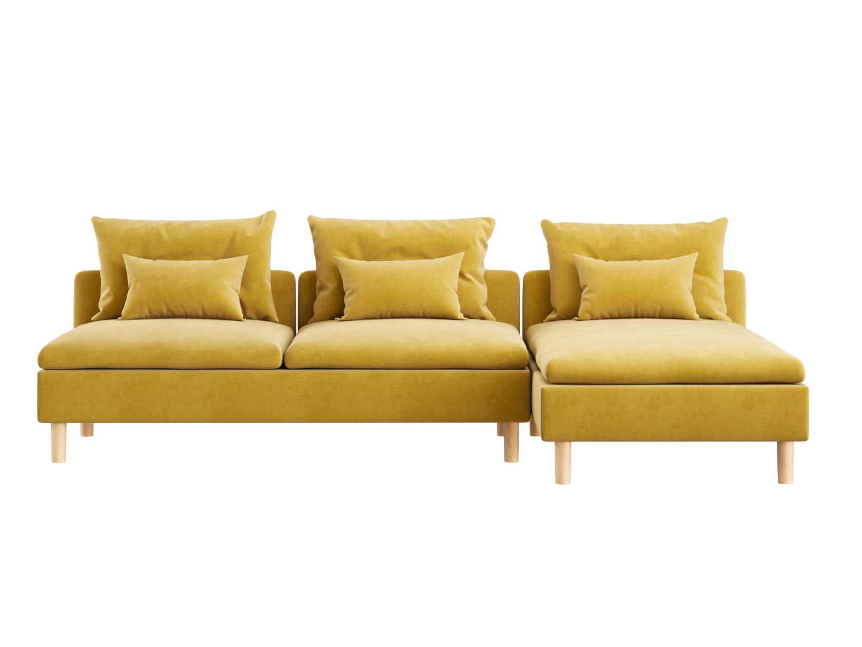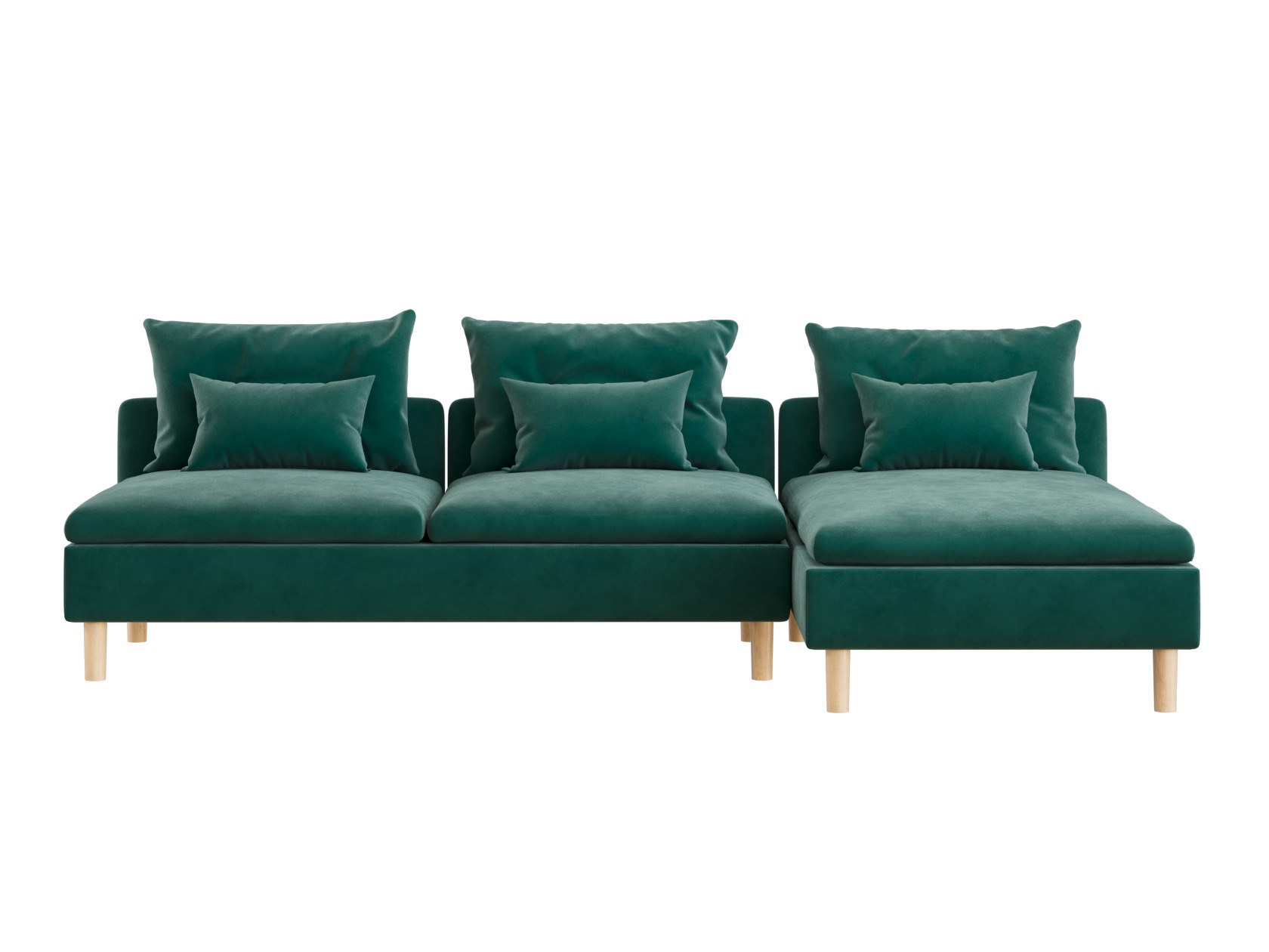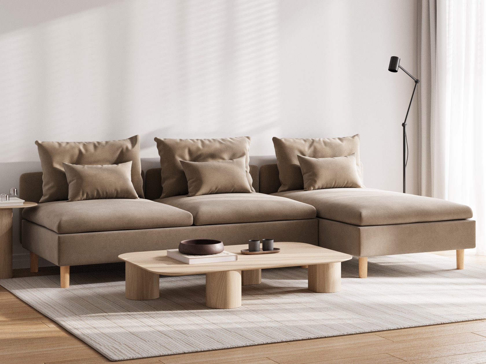 Угловой диван Калисто с оттоманкой — удачное решение для современного интерьера. На нём удобно отдыхать сидя, лежа или полулежа, откинувшись на мягкие подушки. Круглые деревянные ножки смотрятся очень уютно и облегчают уборку, в том числе с помощью робота-пылесоса. Спинка обита лицевой тканью, поэтому модель отлично подходит для зонирования просторной гостиной. Диван можно комбинировать с другими элементами коллекции.