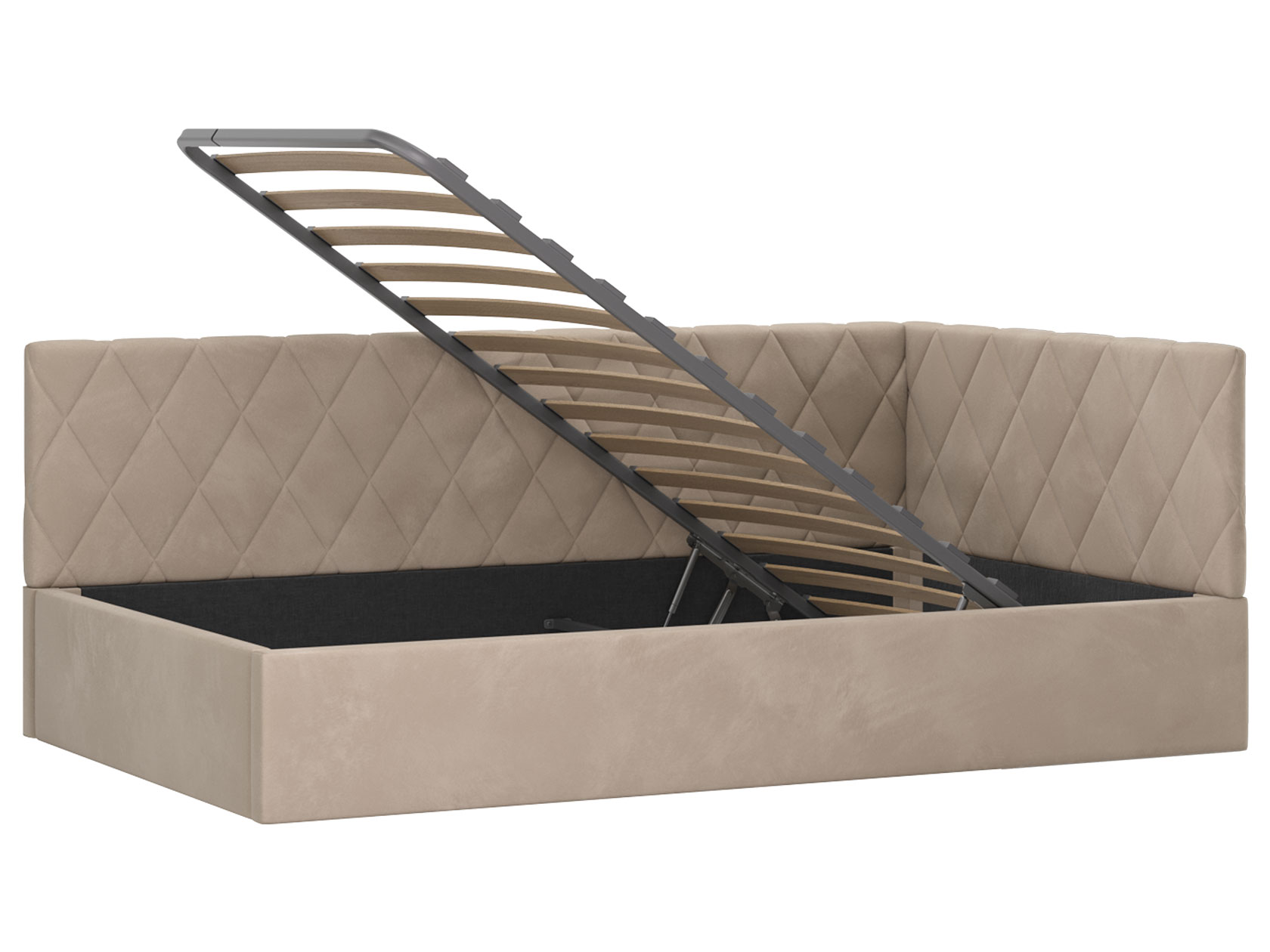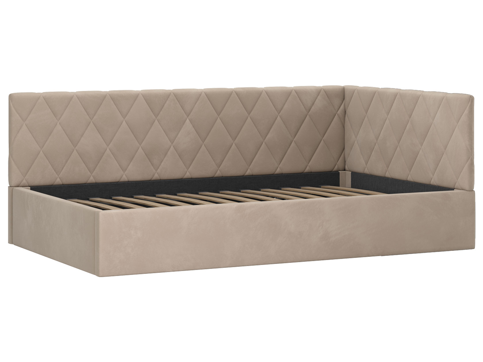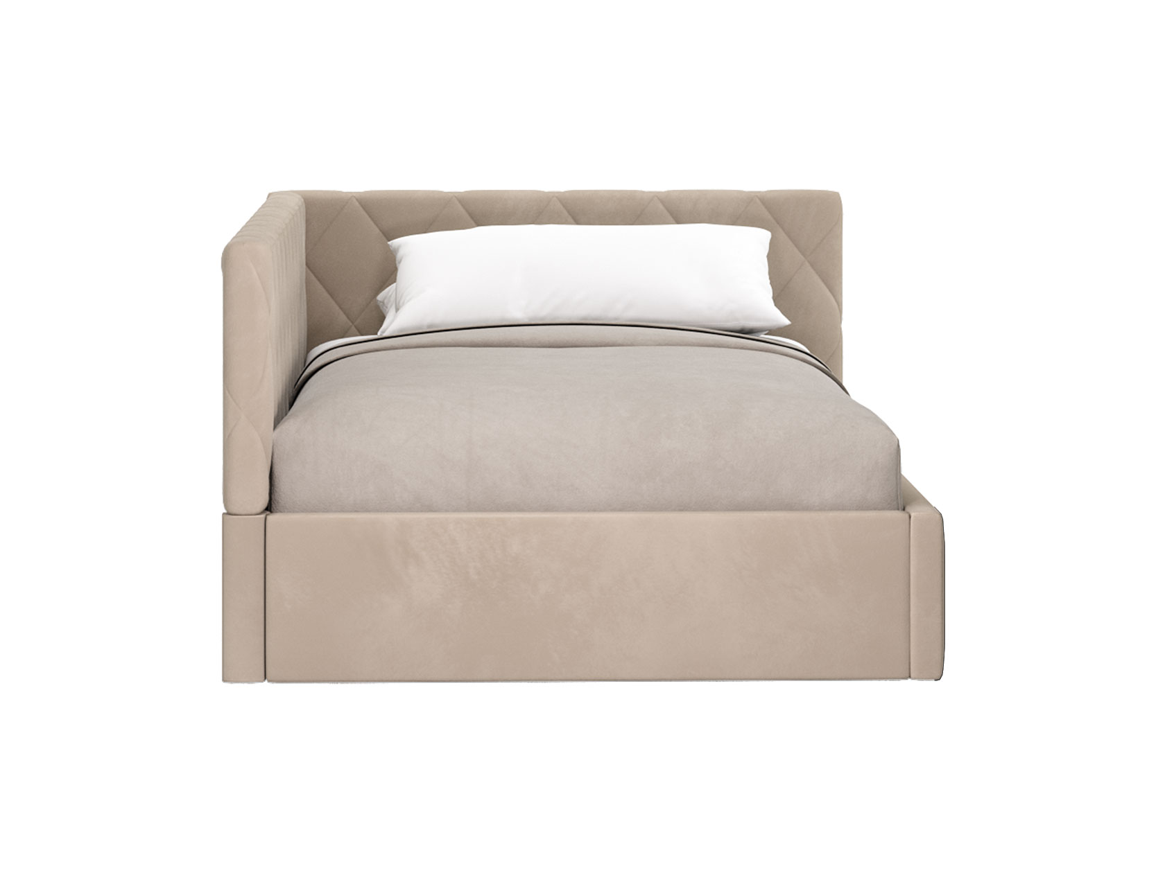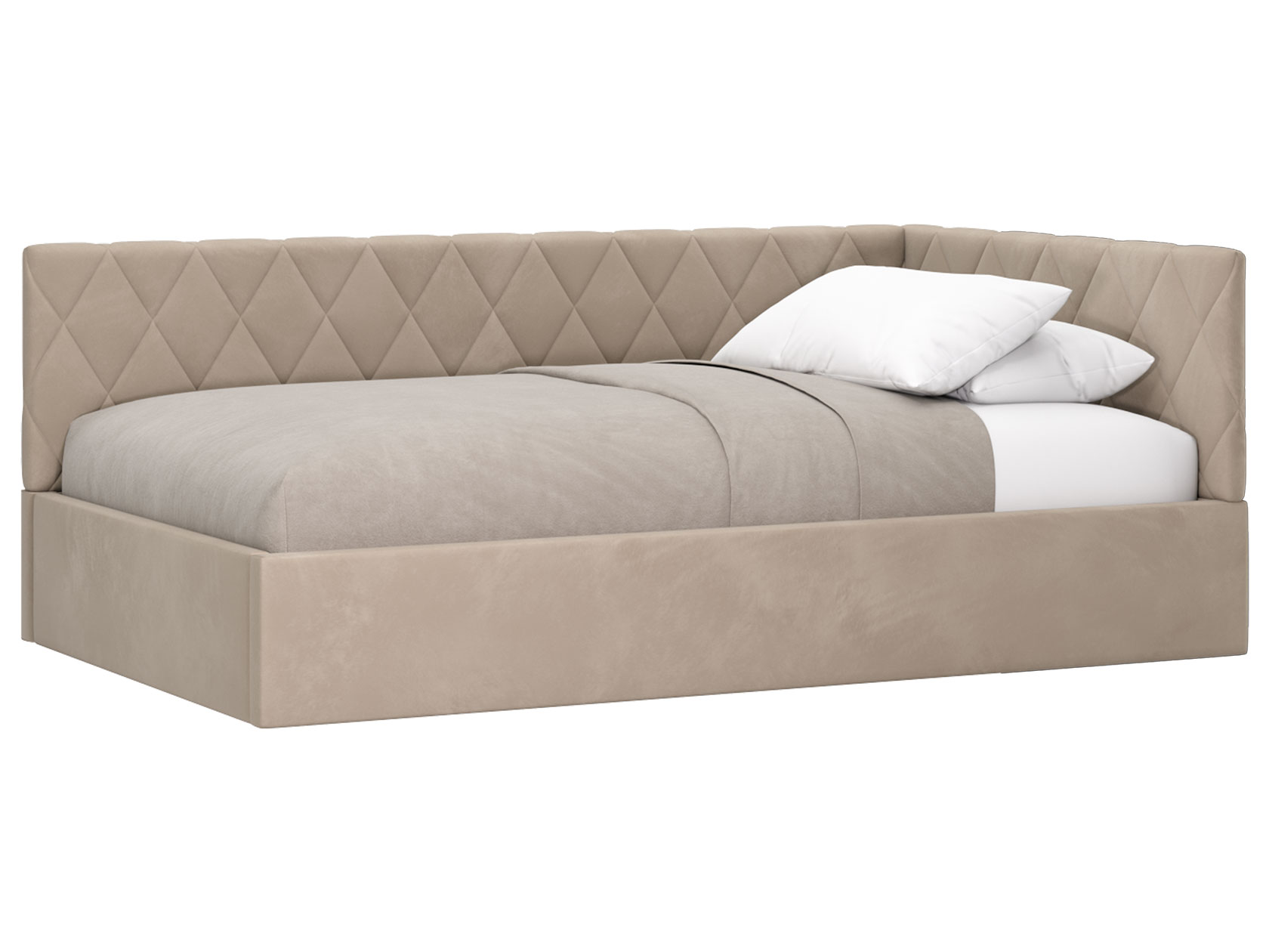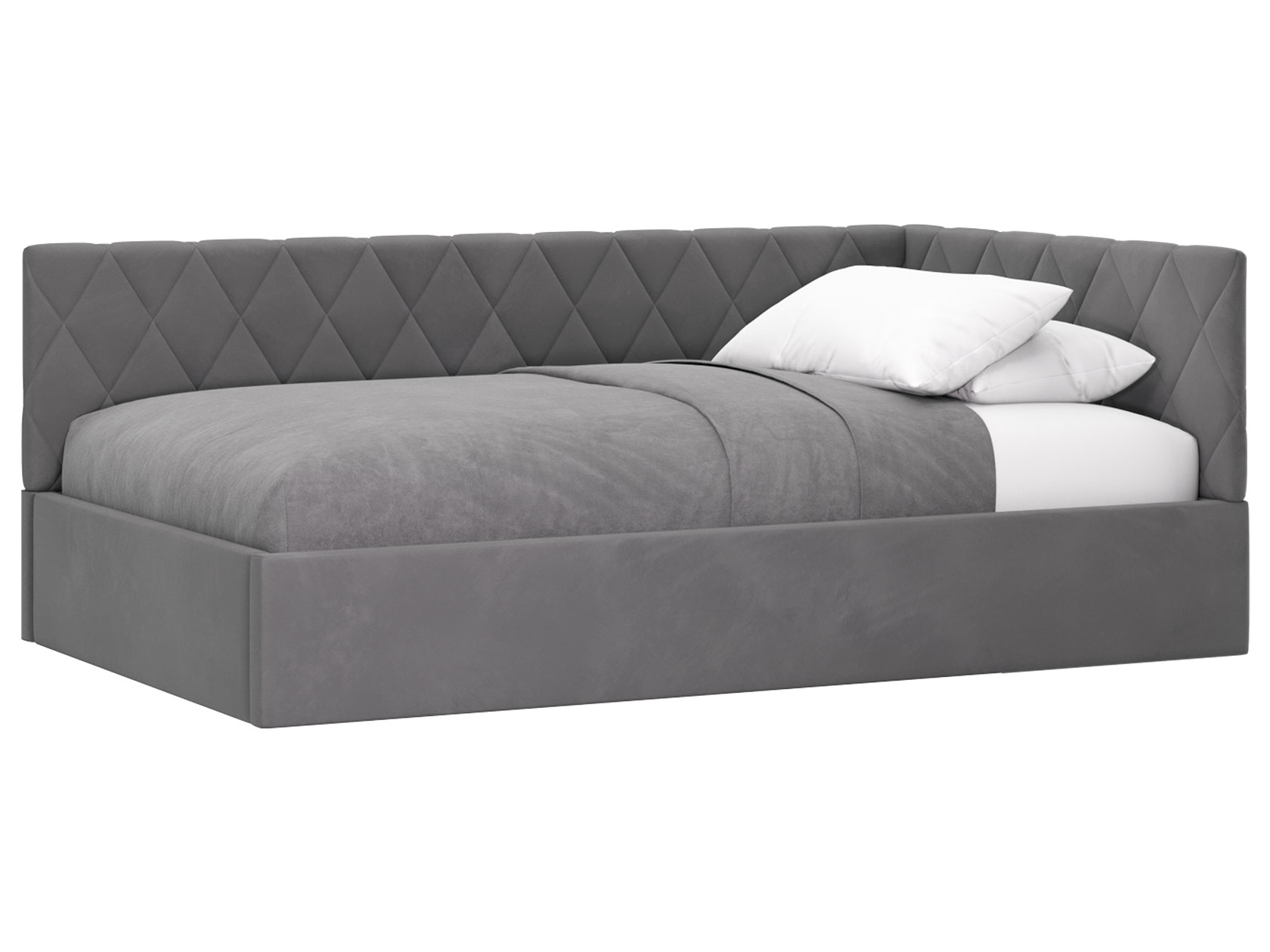 Тахта Алекс ПМ украсит интерьер любой комнаты. Днем модель послужит комфортабельным местом для отдыха, а на время сна заменит полноценную кровать. Подъемный механизм обеспечивает легкий доступ к коробу для белья. Каркас обит приятным на ощупь материалом, а спинка и боковина декорированы ромбовидной стежкой, которая создает уютные акценты меблировки.