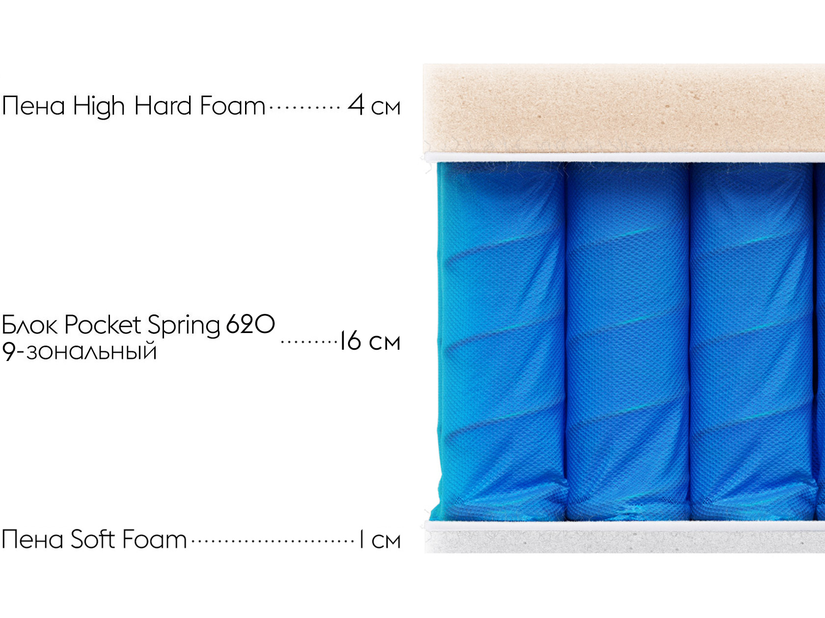 Пружинный матрас Status Ultra S 24 — это презентабельный внешний вид, идеально подобранная структура и долговечность. 9-зональный блок независимых пружин Pocket Spring 620 обеспечивает оптимальную поддержку каждой части тела, сохраняя правильное положение позвоночника. Высокий слой наполнителя High Hard Foam смягчает поверхность и усиливает анатомические свойства матраса. Нижний слой пены Soft Foam вместе с пружинным блоком создает прочную основу матраса.