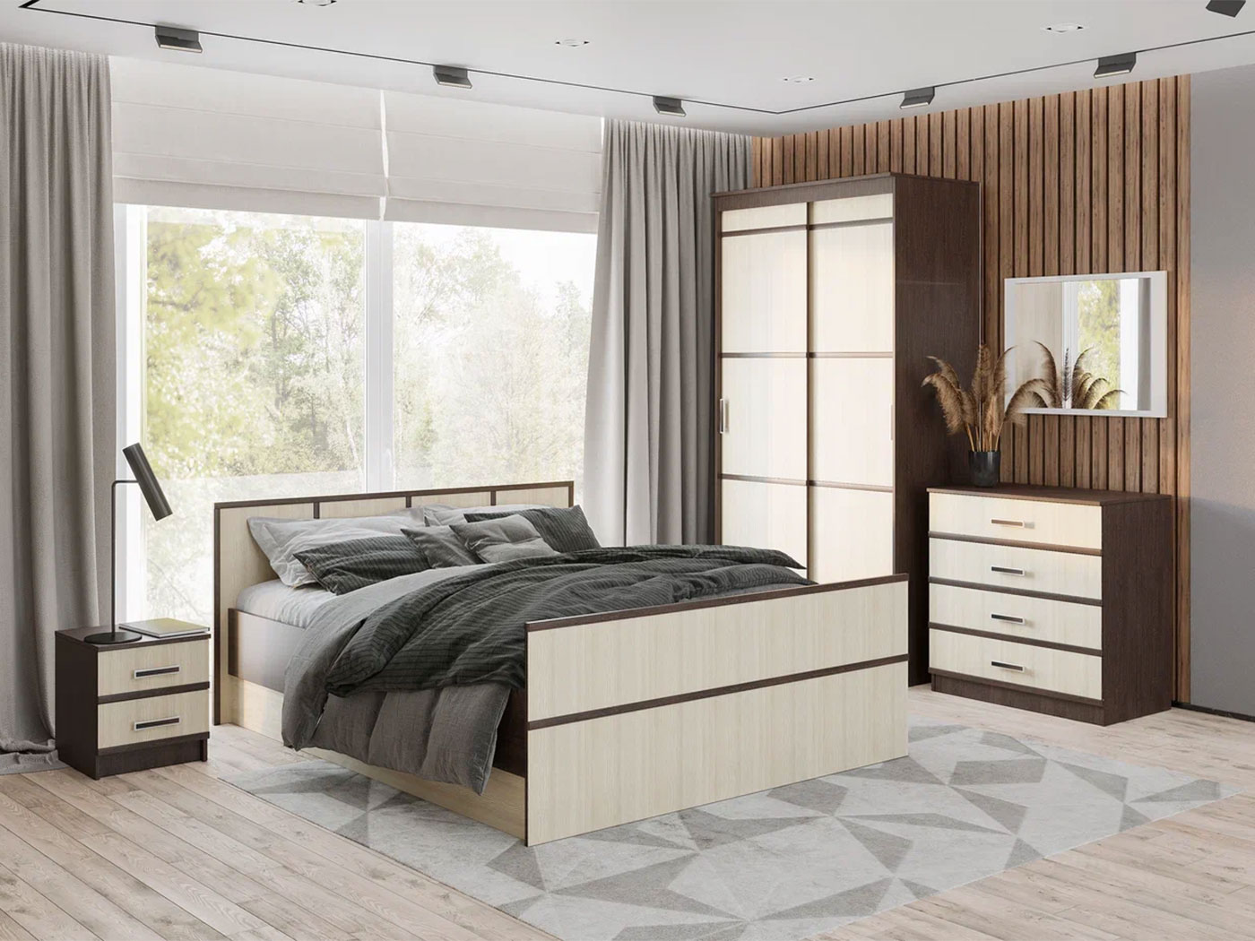 Спальный гарнитур Сакура Комби выполнен в эффектном сочетании оттенков и текстур. В дизайне сделан акцент на простоту линий и симметрию форм. Элементы удачно сочетаются с современными интерьерами, идеально дополняют друг друга и помогают поддерживать порядок в комнате.
