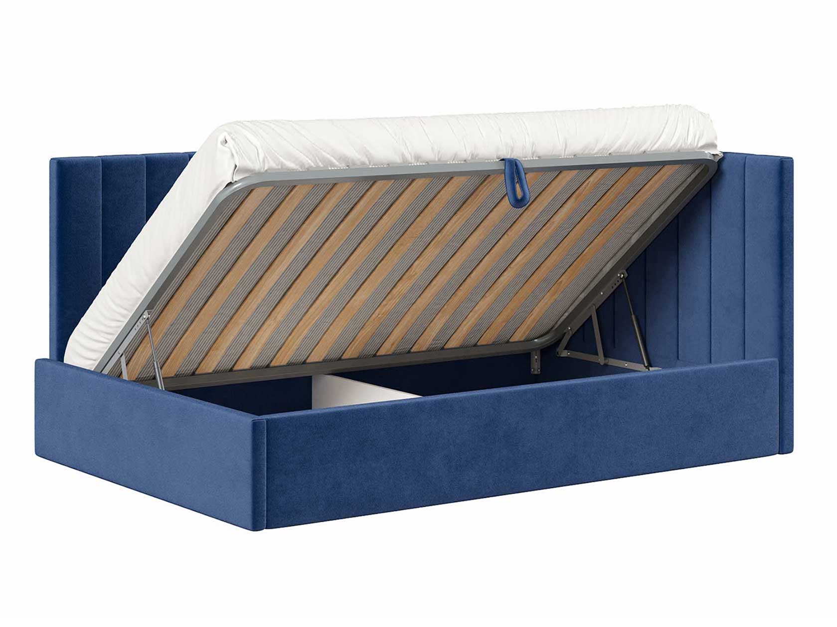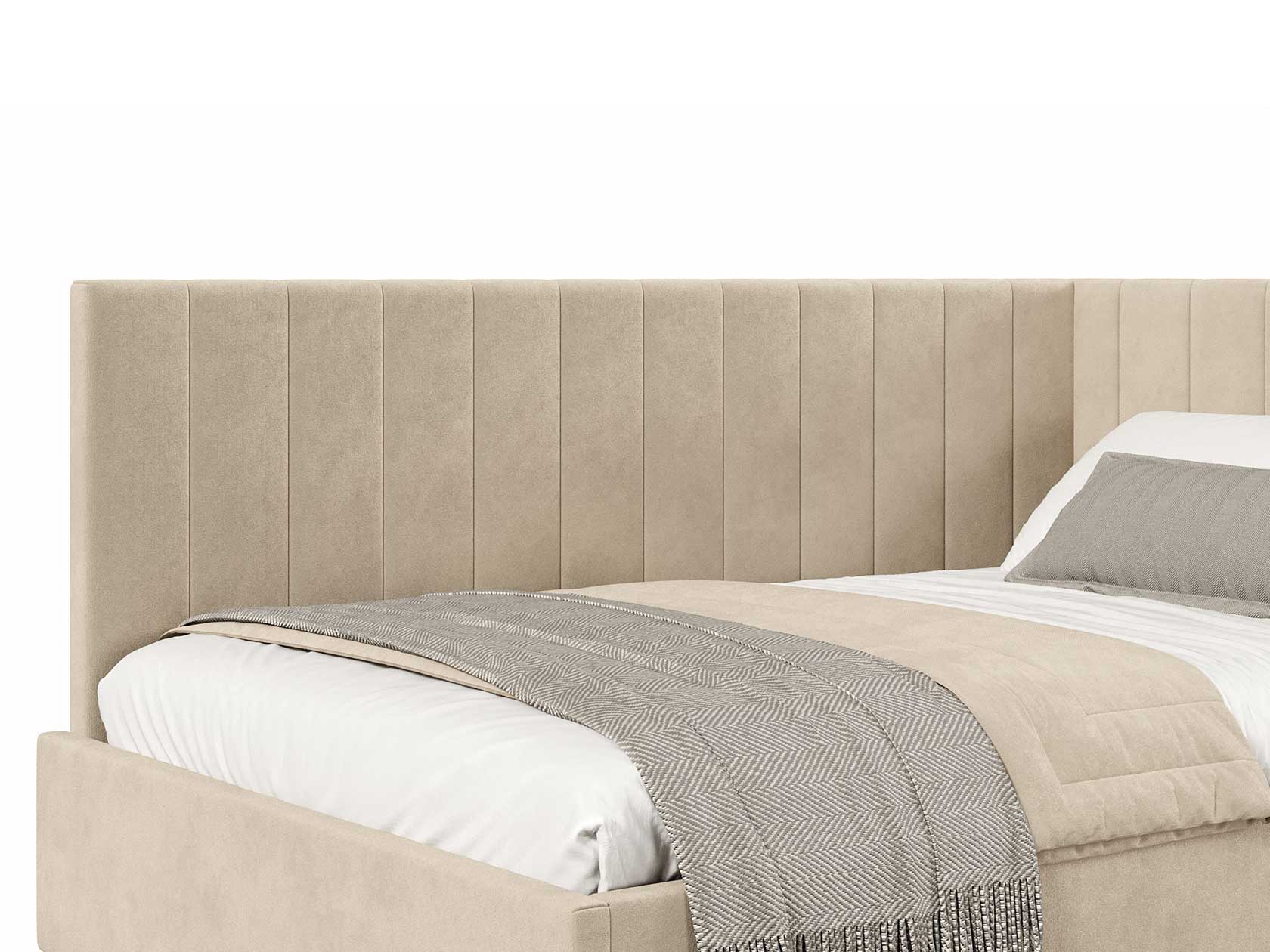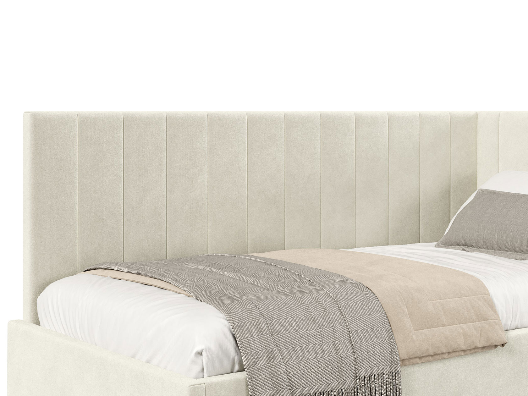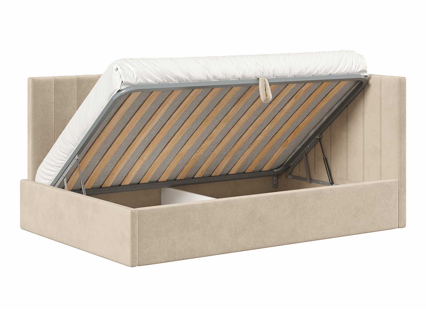 Тахта Берта ПМ украсит интерьер любой комнаты. Днем модель послужит уютным местом для отдыха, а на время сна заменит полноценную кровать. Подъемный механизм открывает быстрый доступ к бельевому коробу. Спинка и боковина декорированы вертикальной стежкой, которая подчеркивает лаконичный силуэт.