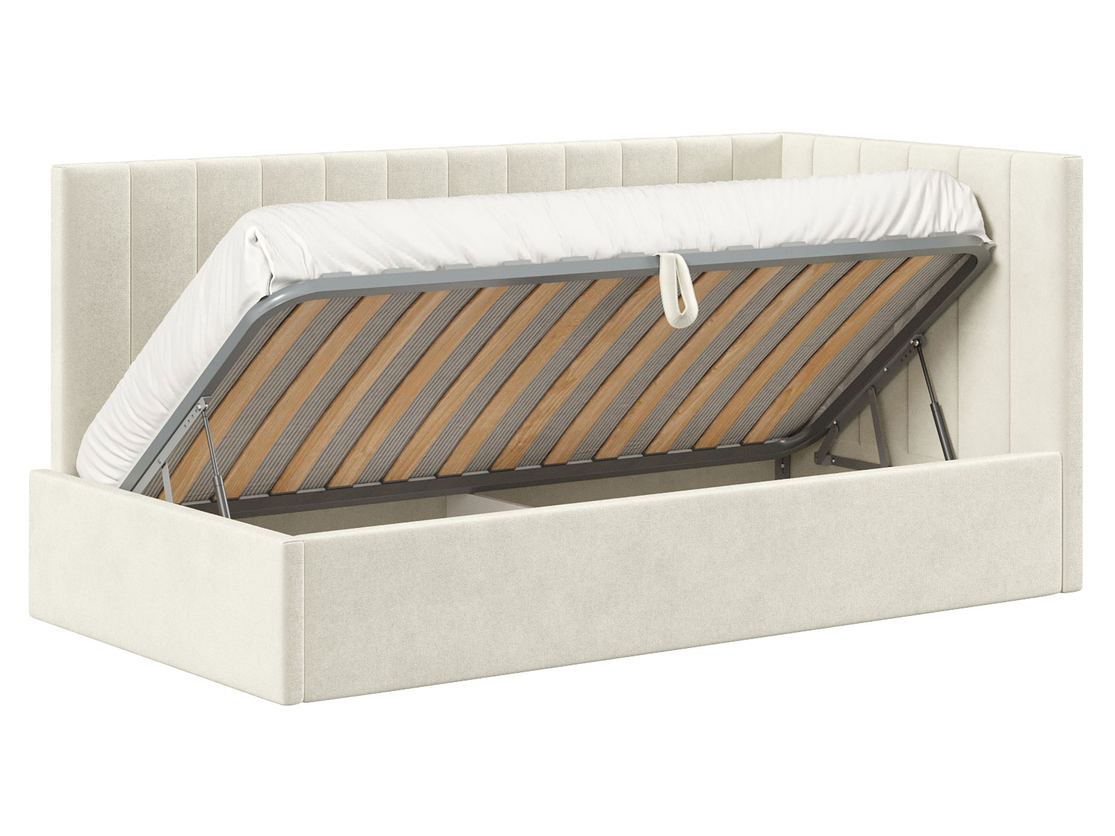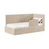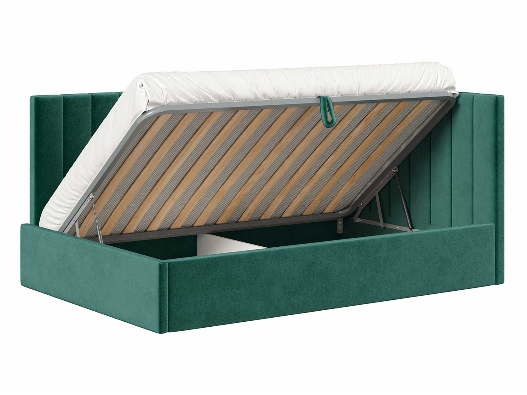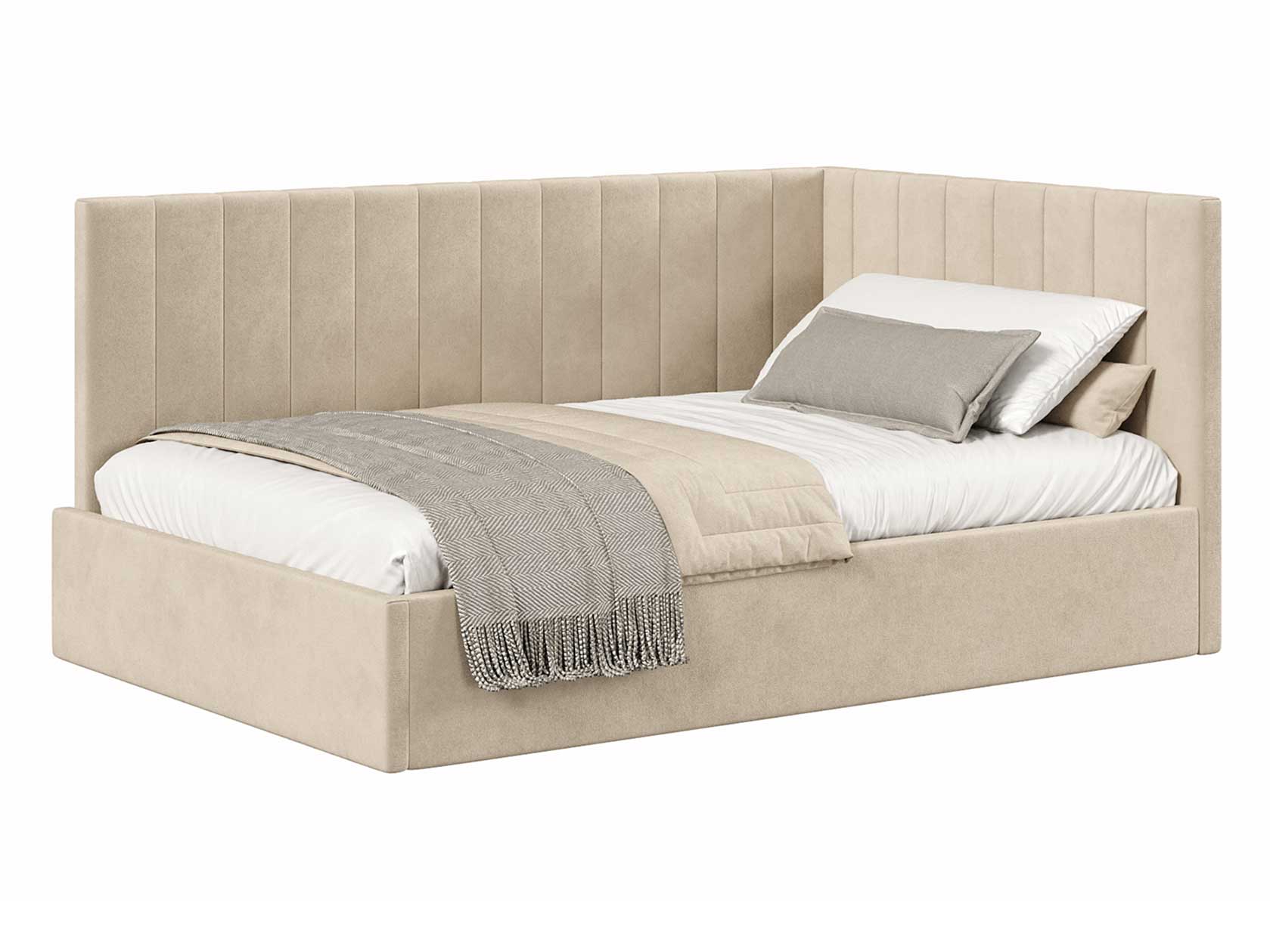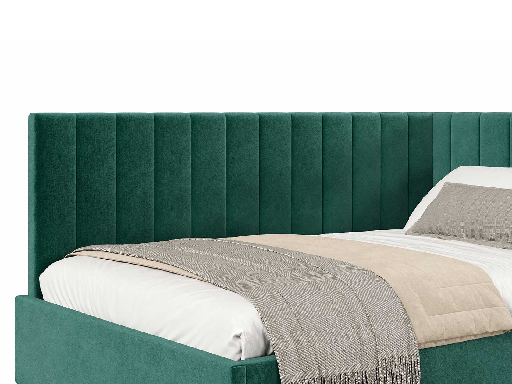 Тахта Берта ПМ украсит интерьер любой комнаты. Днем модель послужит уютным местом для отдыха, а на время сна заменит полноценную кровать. Подъемный механизм открывает быстрый доступ к бельевому коробу. Спинка и боковина декорированы вертикальной стежкой, которая подчеркивает лаконичный силуэт.