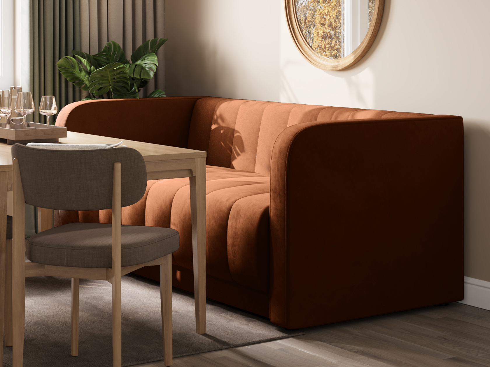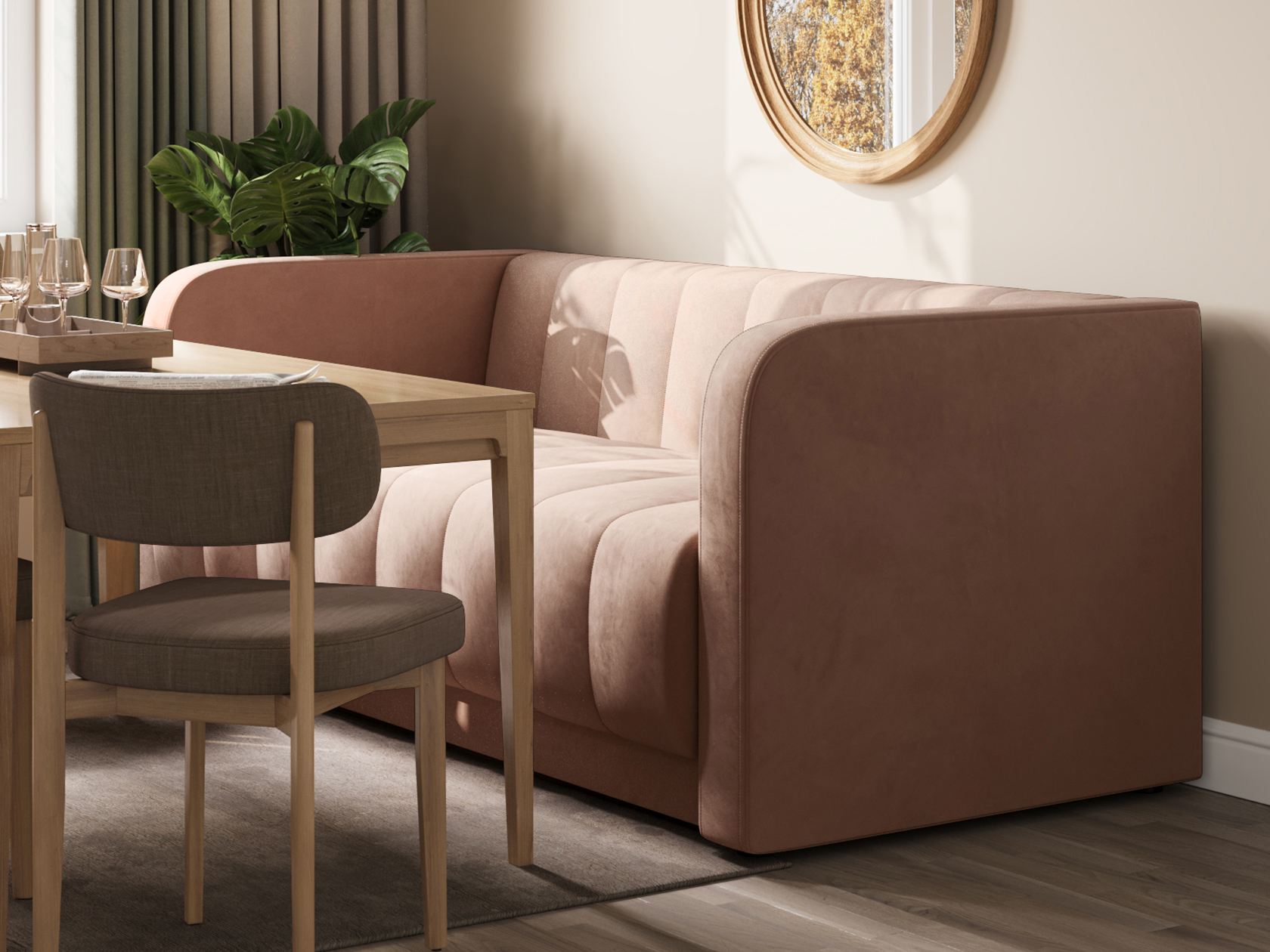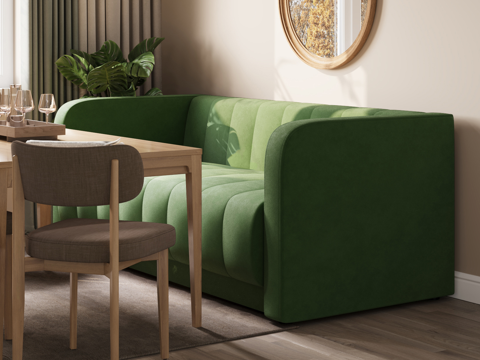 Прямой диван Мона — модель для оформления современного интерьера. Невысокие спинка и подлокотники образуют единую линию, а вертикальная строчка служит лаконичным декором обивки. Такой дизайн не перегружает обстановку и смотрится органично в разных стилях меблировки. В просторной комнате или совмещенной кухне-гостиной диван можно использовать для зонирования. Удобный уклон сиденья и спинки позволяет равномерно распределить нагрузку и обеспечивает комфортную посадку.