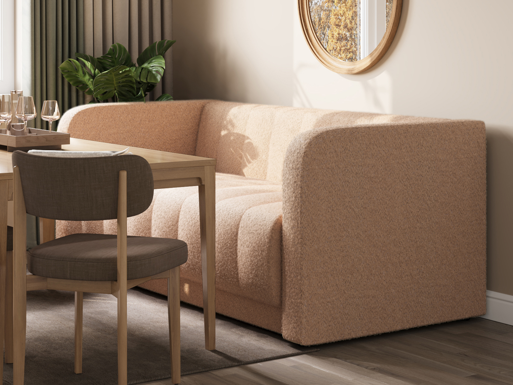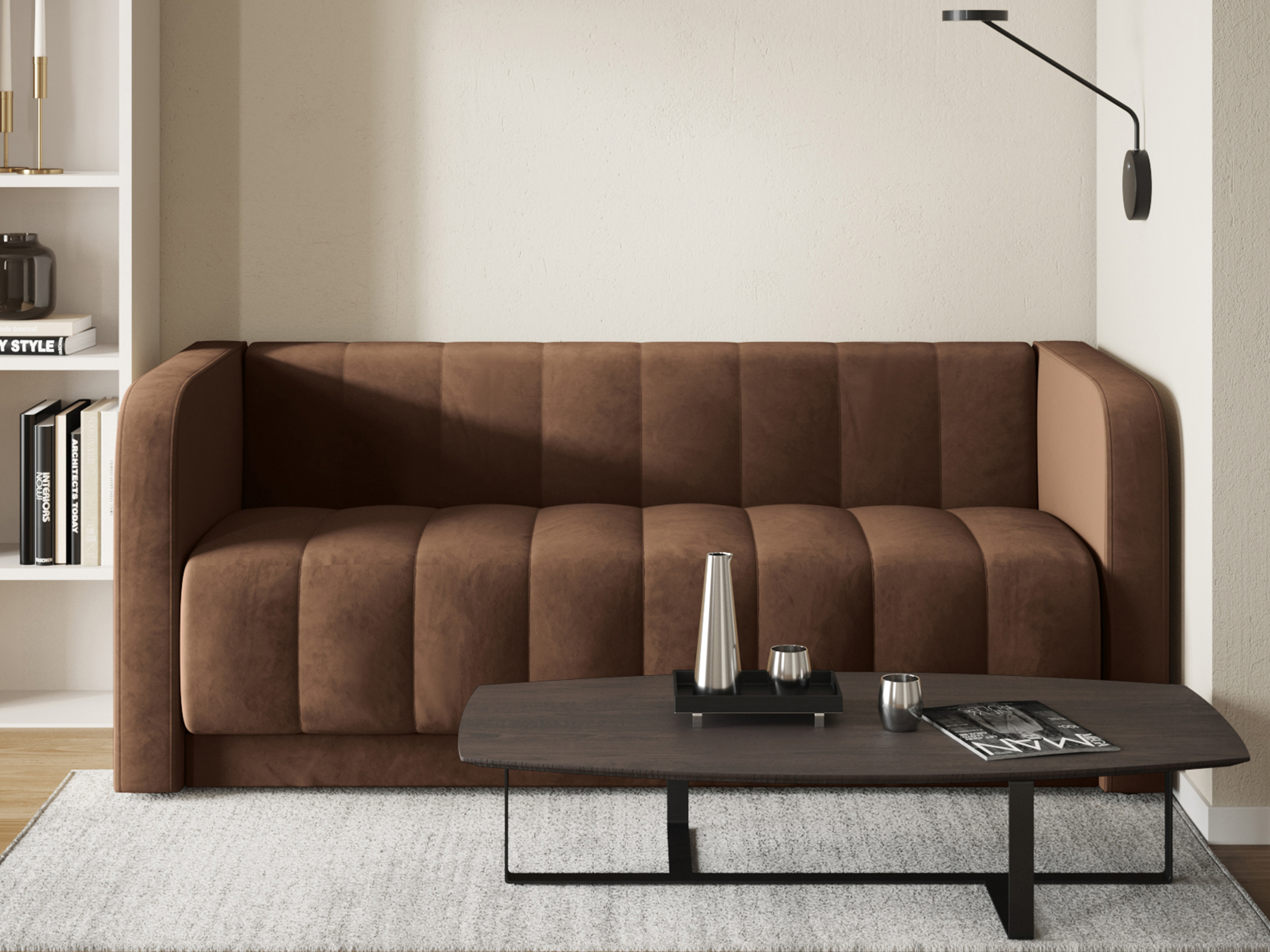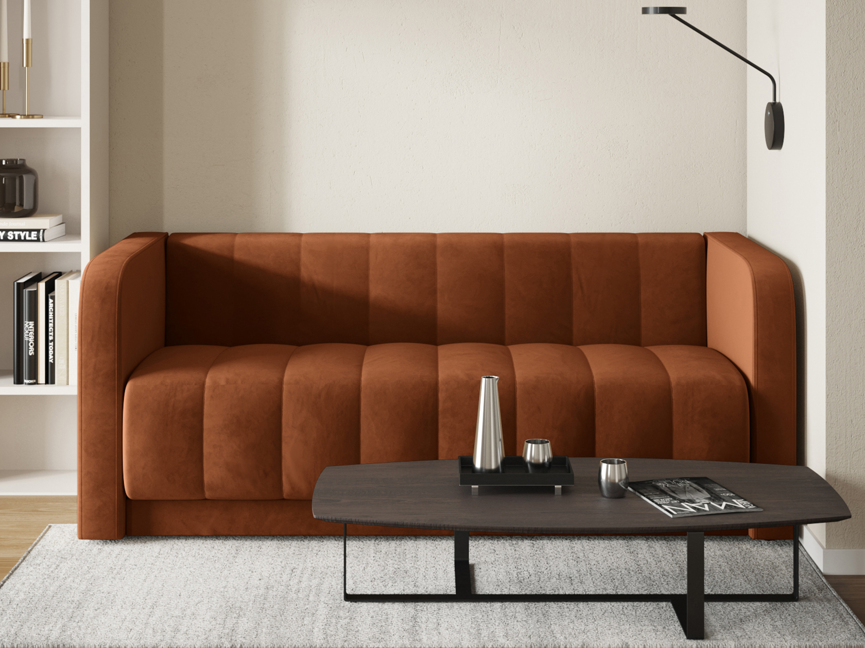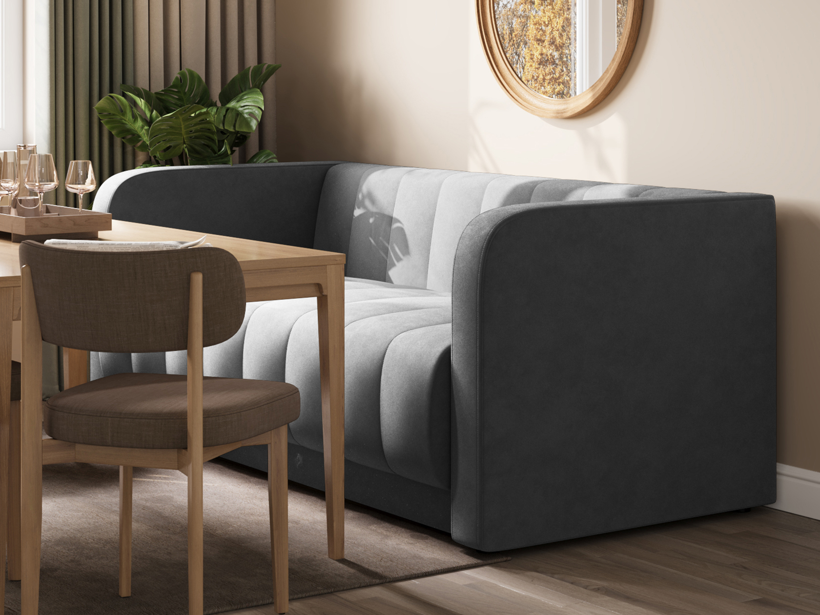 Прямой диван Мона — модель для оформления современного интерьера. Невысокие спинка и подлокотники образуют единую линию, а вертикальная строчка служит лаконичным декором обивки. Такой дизайн не перегружает обстановку и смотрится органично в разных стилях меблировки. В просторной комнате или совмещенной кухне-гостиной диван можно использовать для зонирования. Удобный уклон сиденья и спинки позволяет равномерно распределить нагрузку и обеспечивает комфортную посадку.