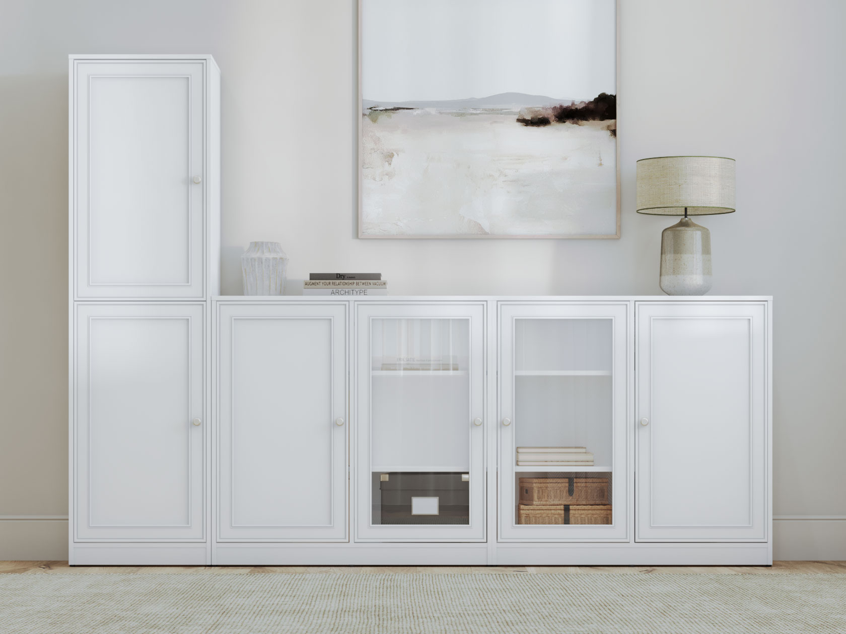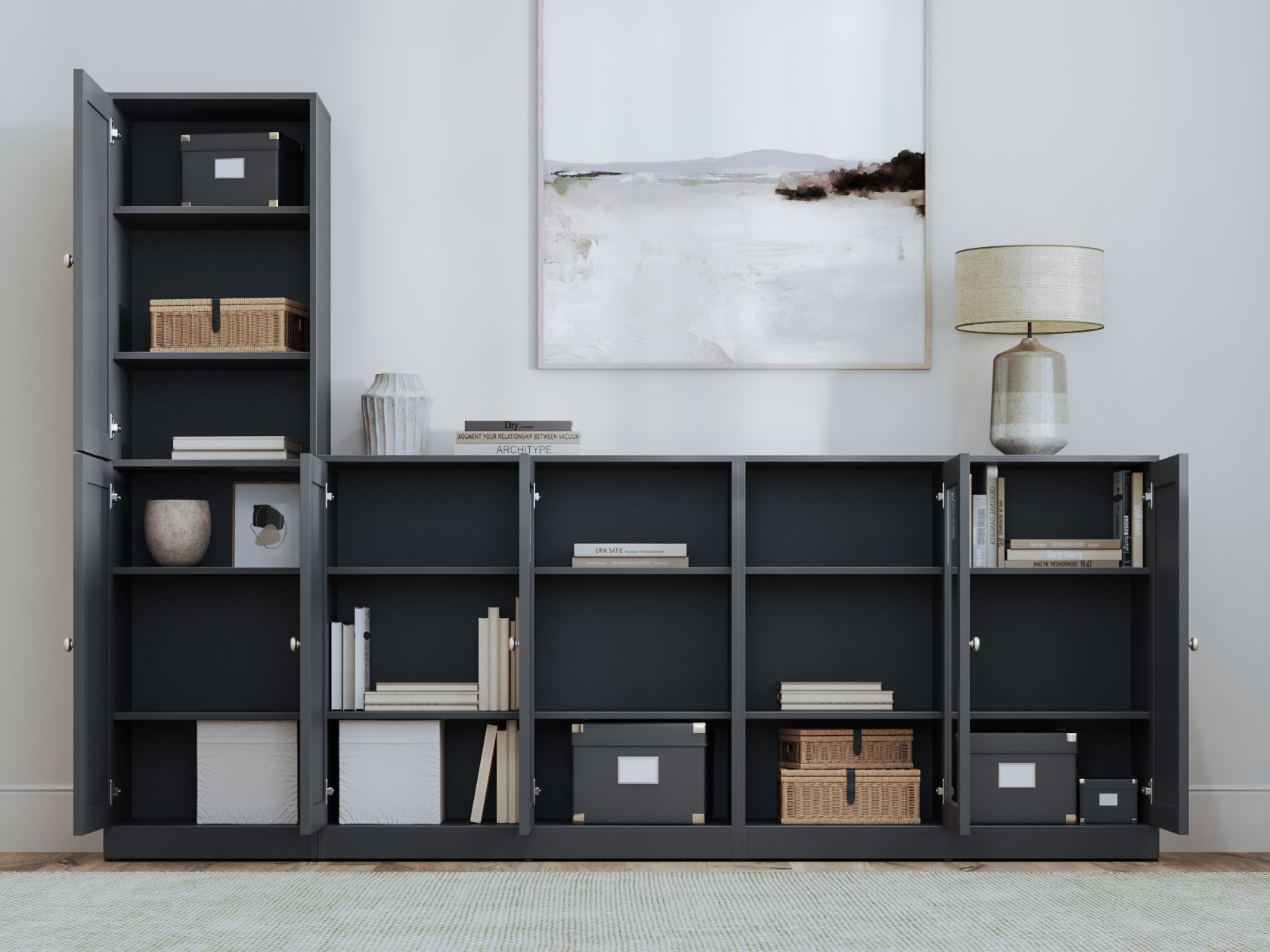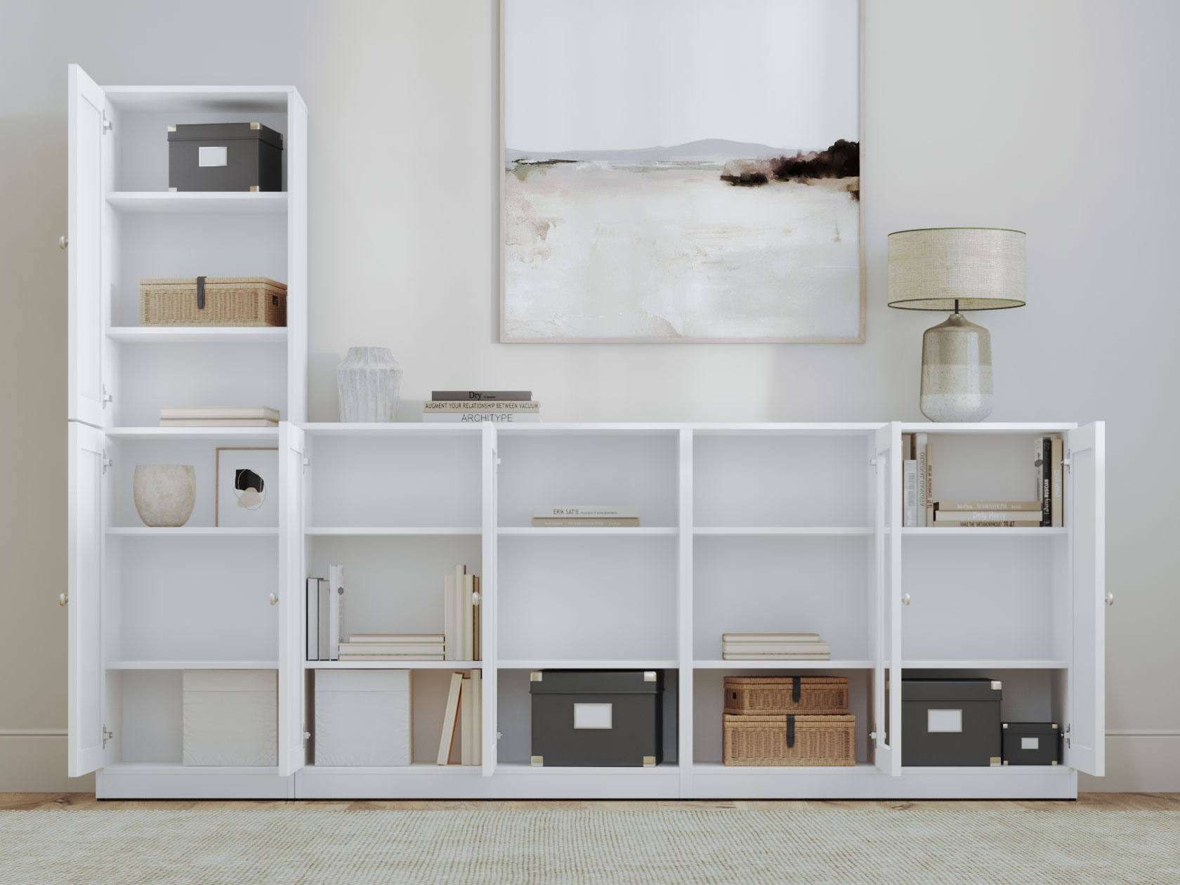 Шкаф можно комплектовать дополнительными полками и ящиками из одноименной коллекции.