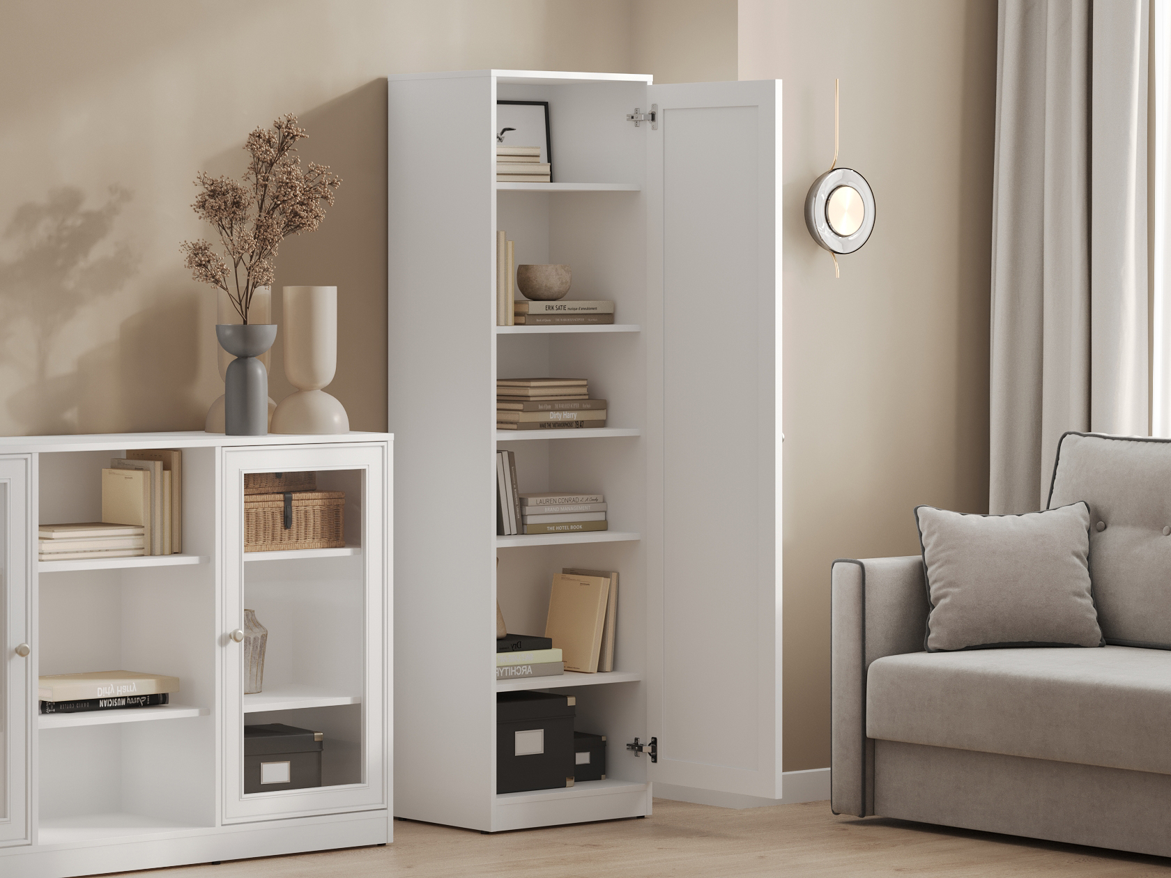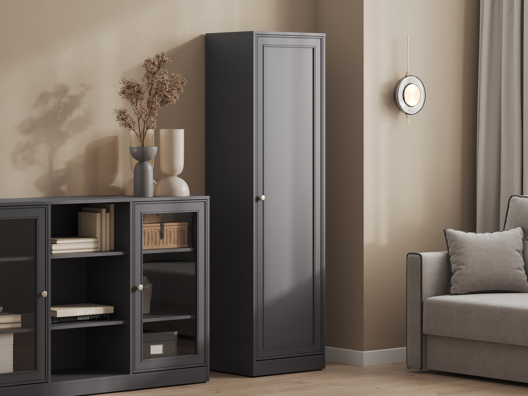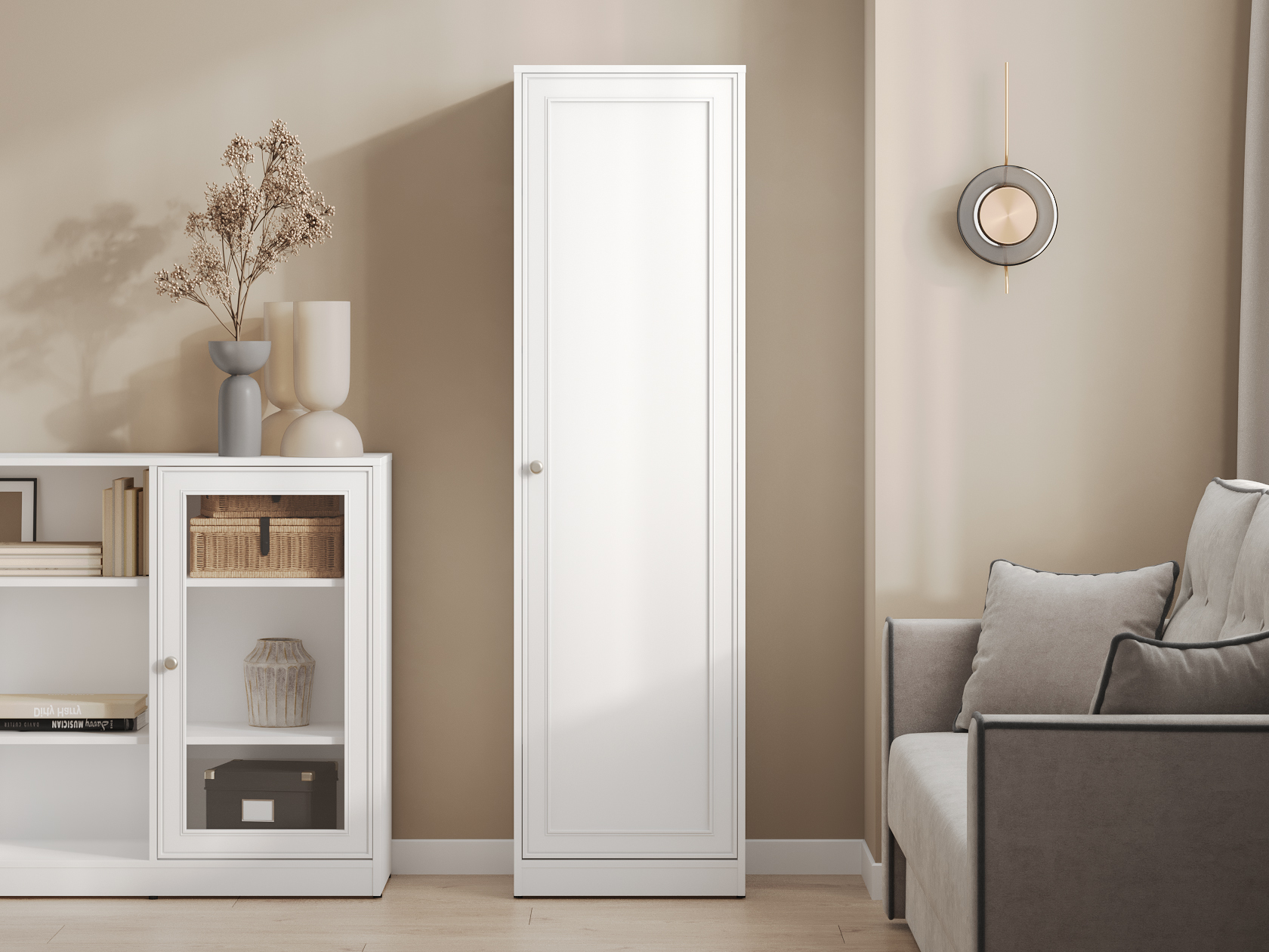 Распашной шкаф Люси 1 дверь практично дополнит интерьер небольшой комнаты. Полки позволят рационально расположить книги, документы, одежду и личные вещи. Классическое оформление с рамочным фасадом будет уместно смотреться в рабочем кабинете, гостиной или спальне.