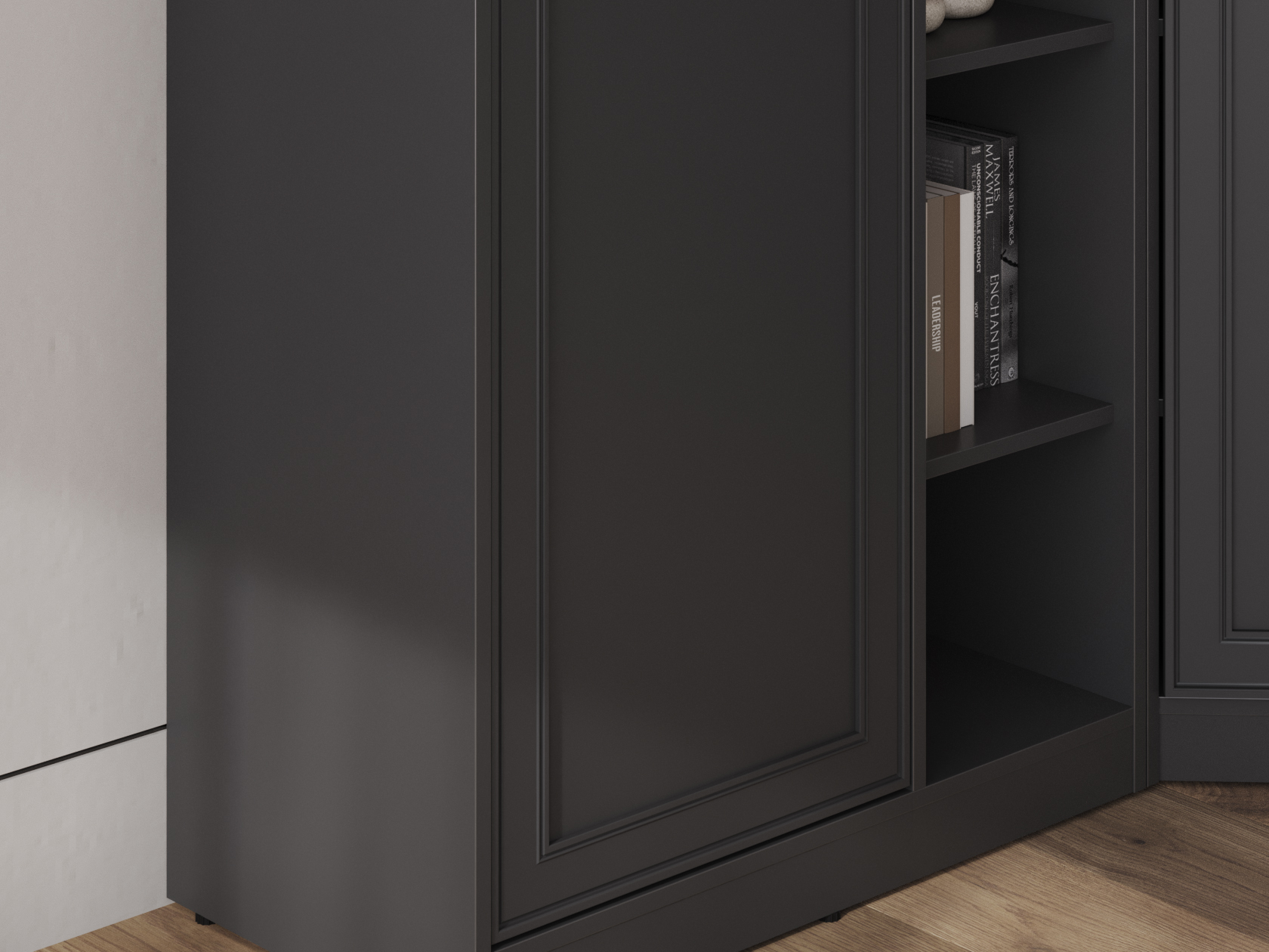Гостиная Люси Комби создаст продуманные решения для поддержания порядка в комнате. Пространство между стеллажами выступит в роли ТВ-тумбы. Открытые полки позволяют разместить книги, посуду, декор и другие важные мелочи. Распашные шкафы помогут рационально хранить личные вещи и одежду.