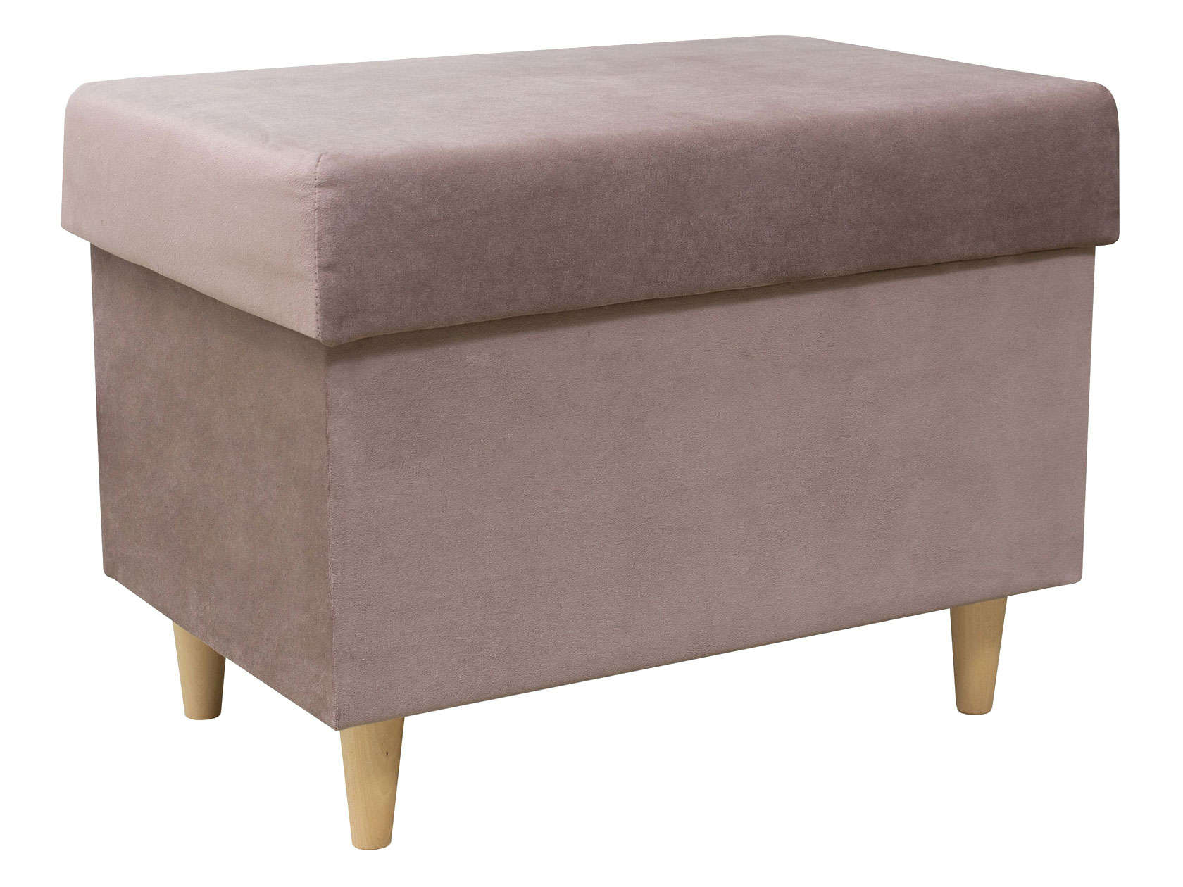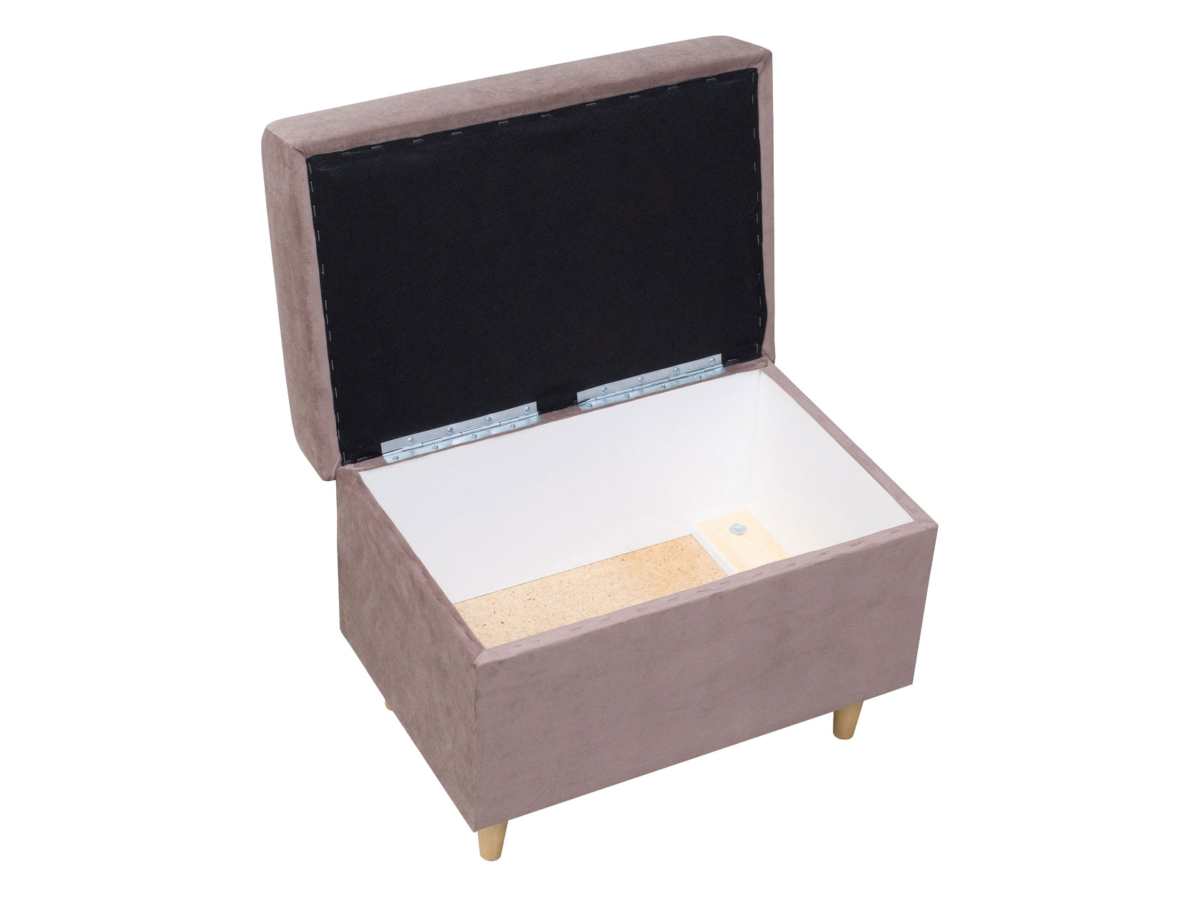 Пуфик Толедо с откидной крышкой — практичное решение для меблировки комнат, где требуются дополнительные места для сидения и хранения. Модель можно использовать как подставку под ноги во время чтения. Внутри расположено небольшое отделение для пары домашних тапочек и других полезных мелочей. Деревянные ножки создают акценты интерьера и делают пуфик более мобильным.