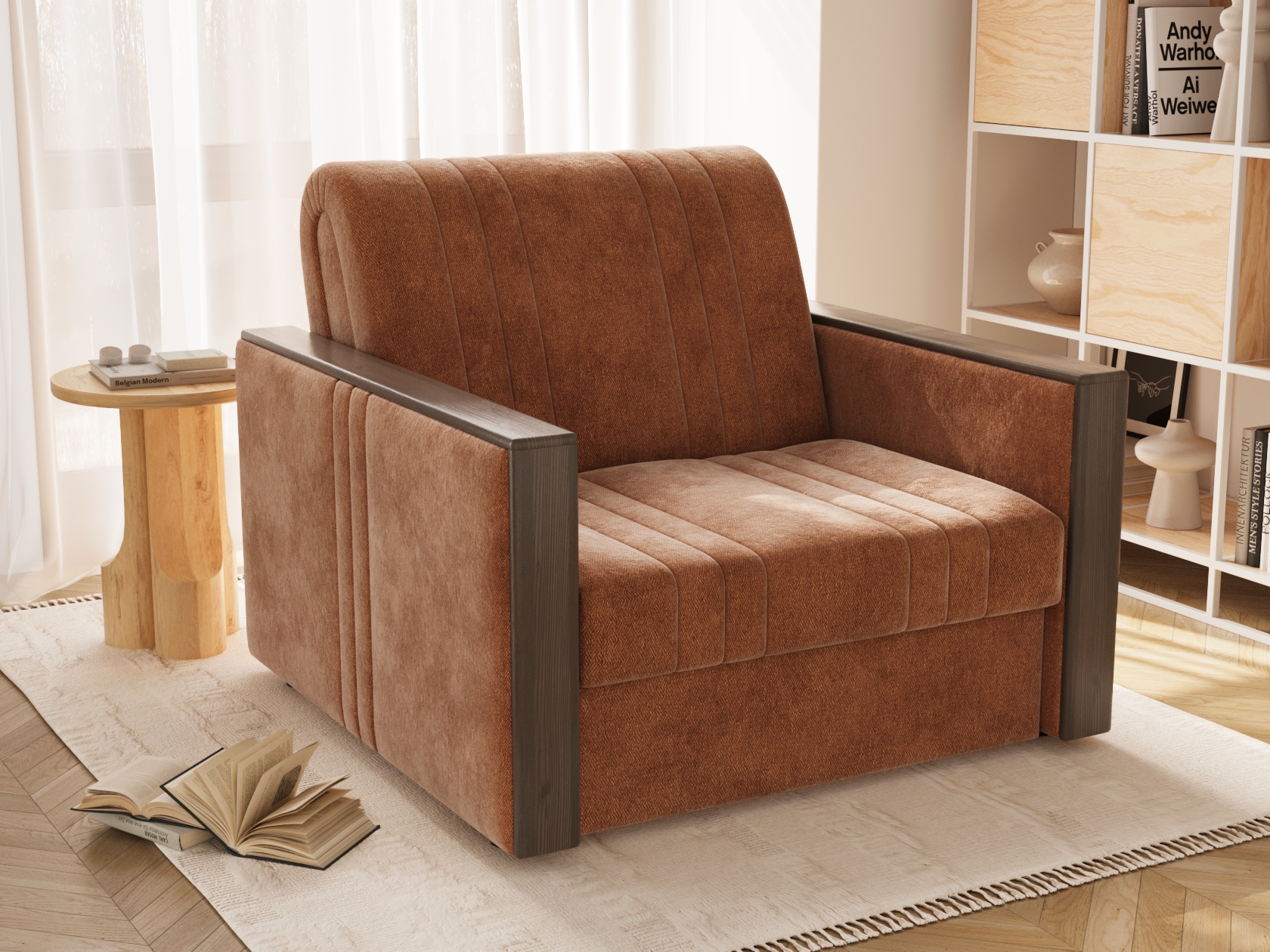 Кресло-кровать Фортис в меру мягкое, удобное и практичное. Термостойкое покрытие превращает подлокотники в мини-столешницы, на которые можно поставить чашку чая или кофе. Оптимальный угол наклона спинки позволяет комфортно расположиться для отдыха. Кресло со всех сторон выглядит эстетично, а значит, подходит для зонирования комнаты.