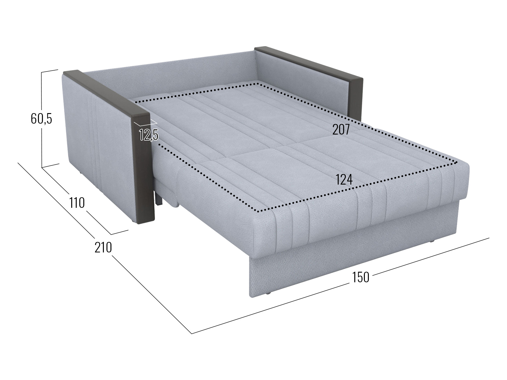 Серо-голубой, велюр. 124х207 см. Без ящика