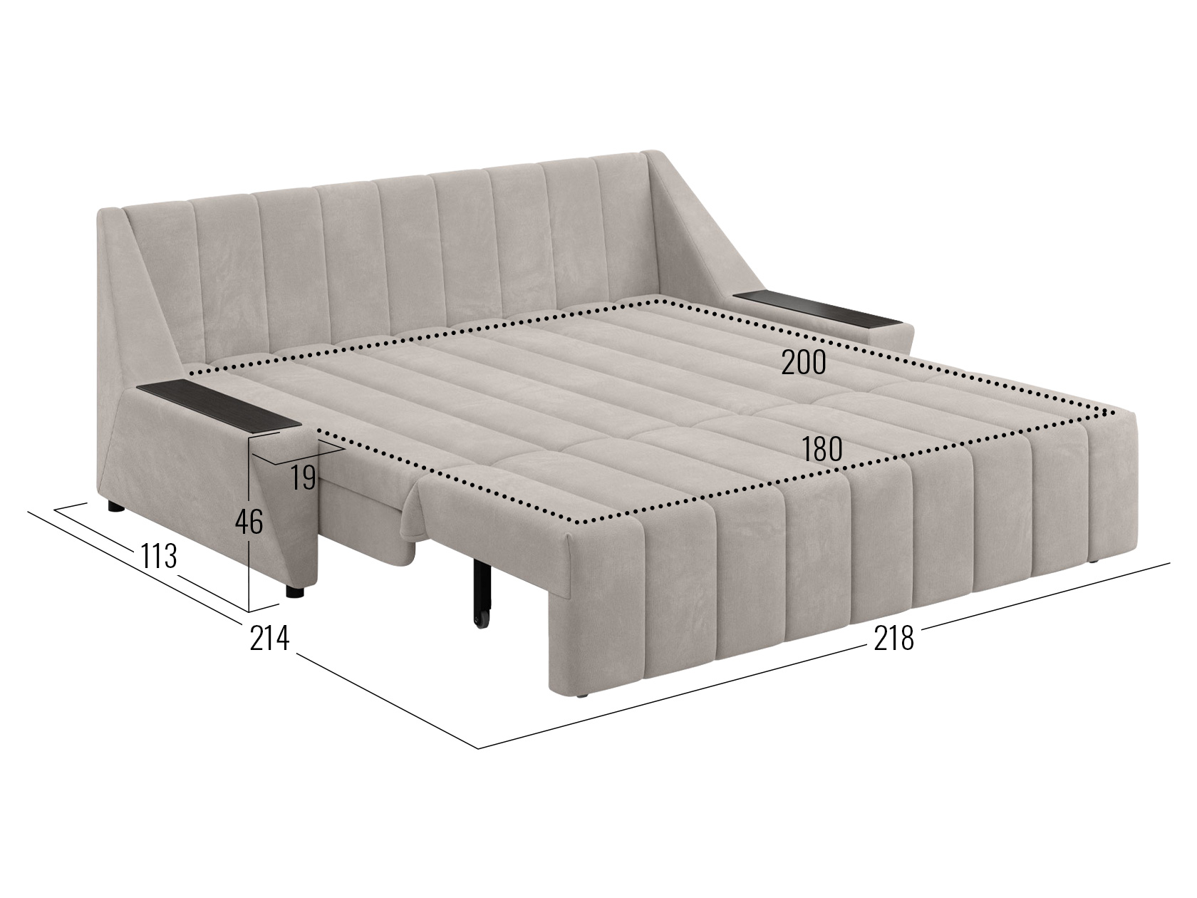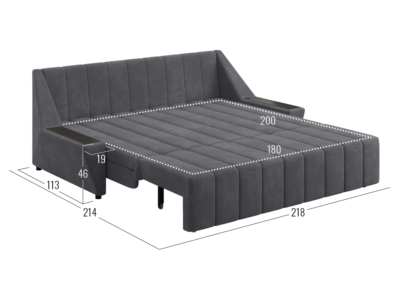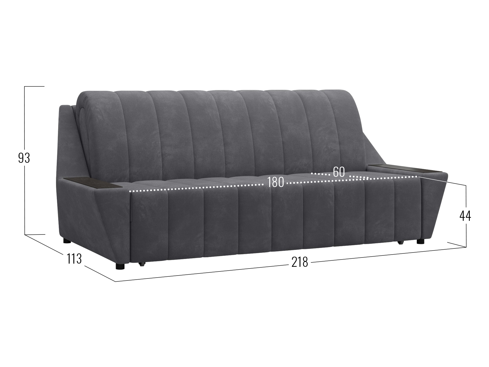 Прямой диван Осло украсит интерьер любой комнаты. Необычный силуэт и декоративная строчка по всей длине выступают оригинальными акцентами дизайна. Накладки на широких подлокотниках можно использовать как мини-столешницы. В разложенном виде диван образует ровное спальное место без стыков, а специальная планка служит защитой от контакта с холодной стеной.