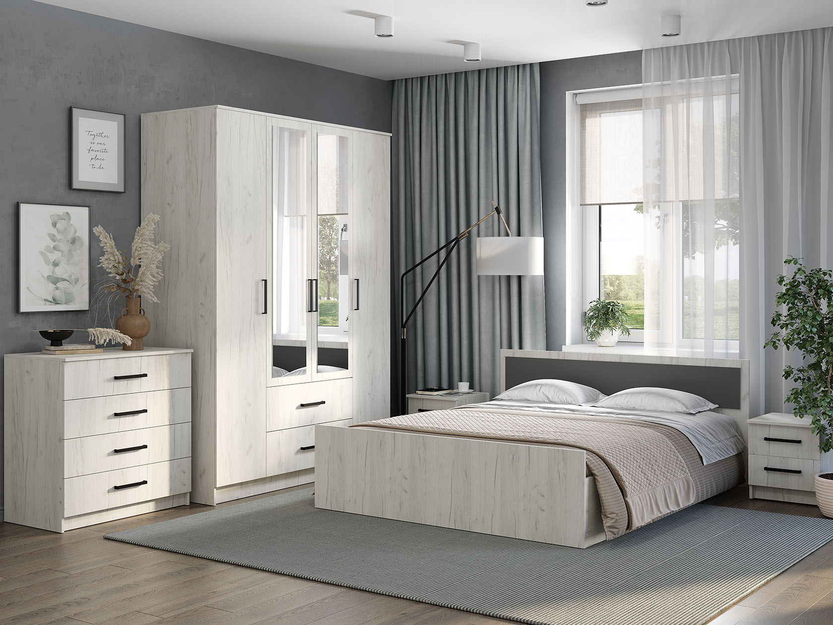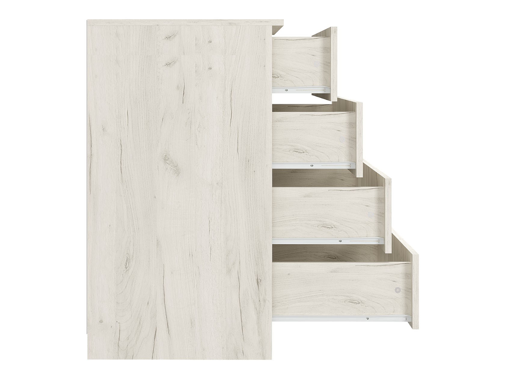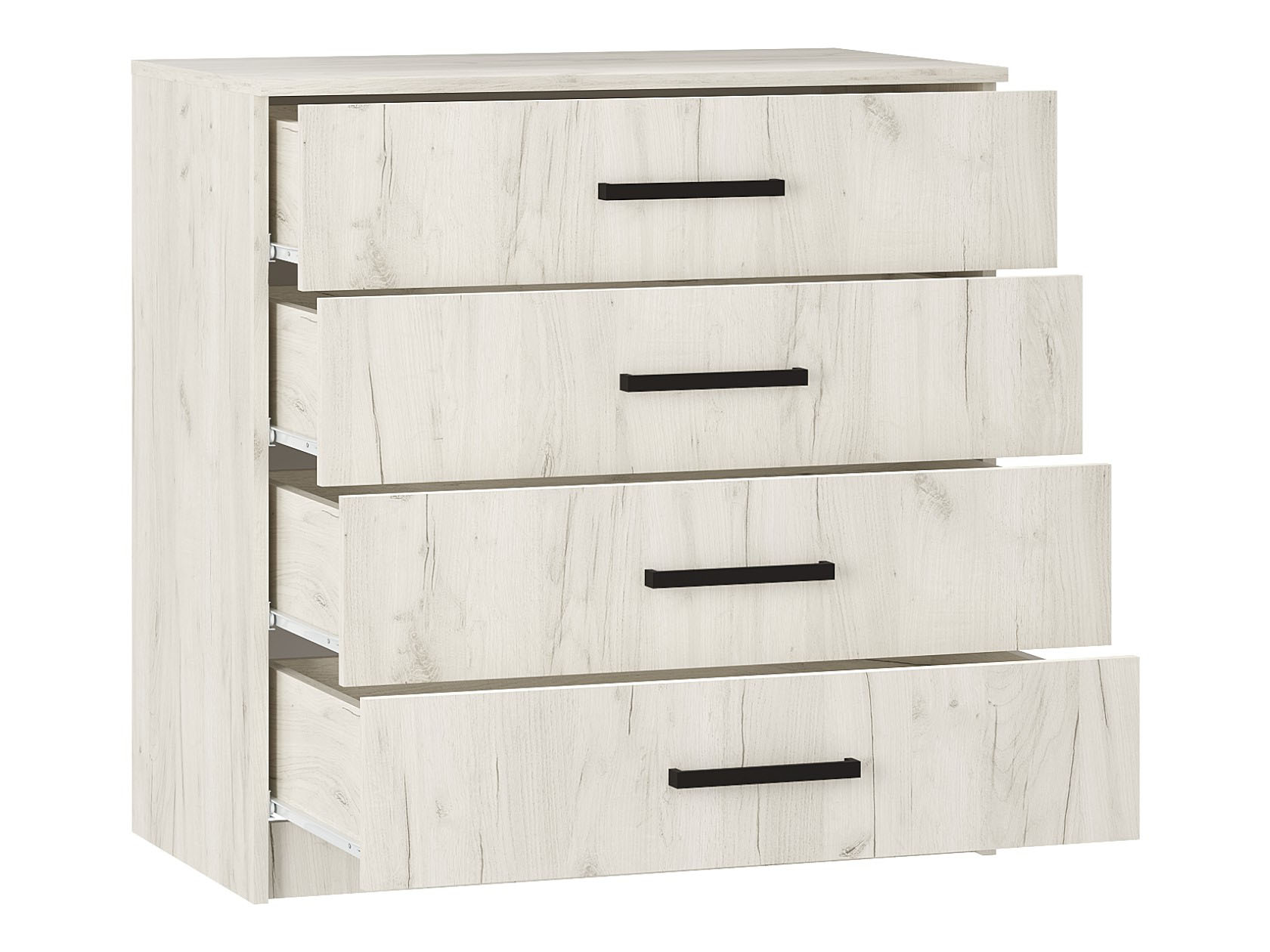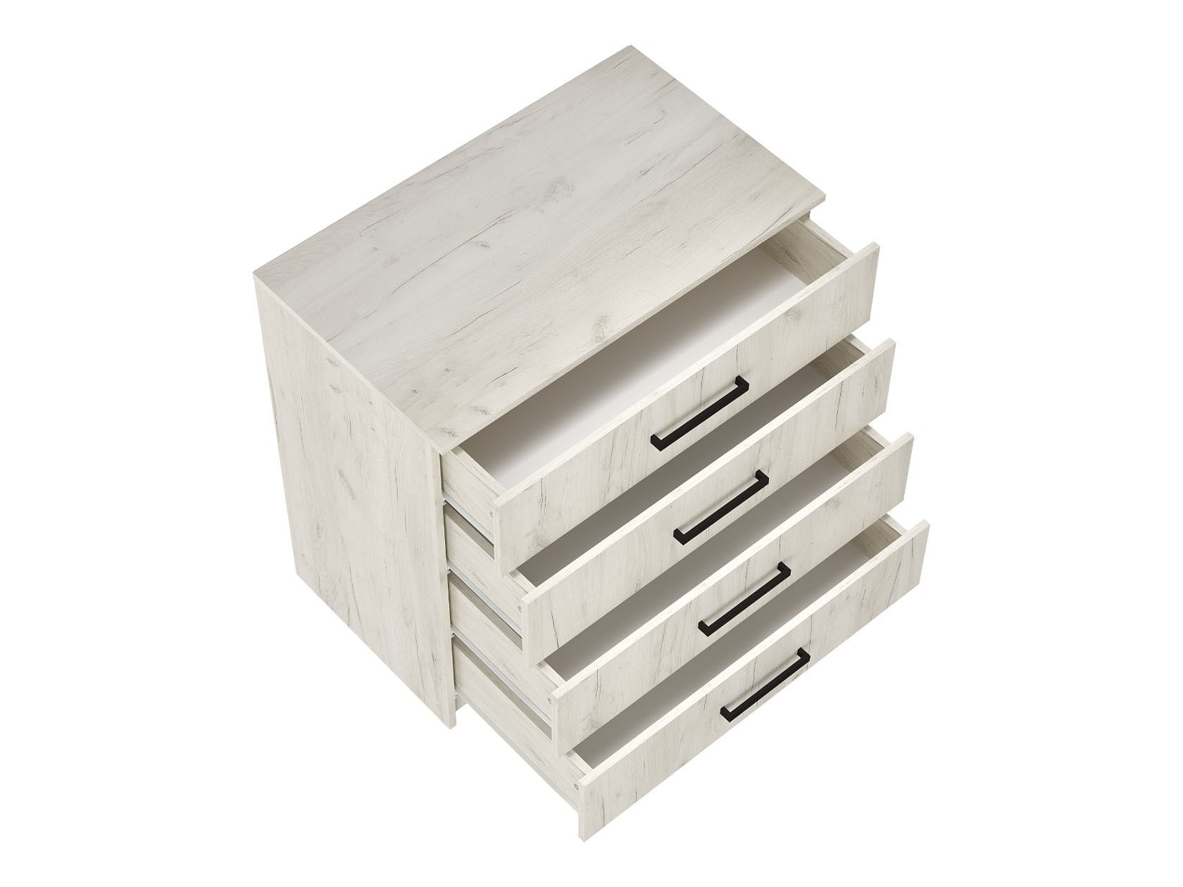 Комод Фиеста 4 ящика поможет систематизировать хранение, аккуратно распределив нужные вещи внутри выдвижных ящиков. Такая мебель станет удачным приобретением для любой комнаты. Контрастные ручки, которыми дополнены гладкие фасады, выполняют не только основную, но и декоративную функцию. На поверхности можно расположить светильник, рамки с фотографиями или живые растения.