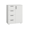 Комод Эйр удачно дополнит интерьер гостиной. Вместительная модель организует удобное хранение белья, одежды и сопутствующих аксессуаров. Ящики с плавным бесшумным ходом выдвигаются на всю глубину, обеспечивая доступ к содержимому. За распашной дверцей находятся полки, которые подходят для текстиля и личных вещей. На поверхности можно поставить лампу, рамки с памятными фотографиями или живые растения.
