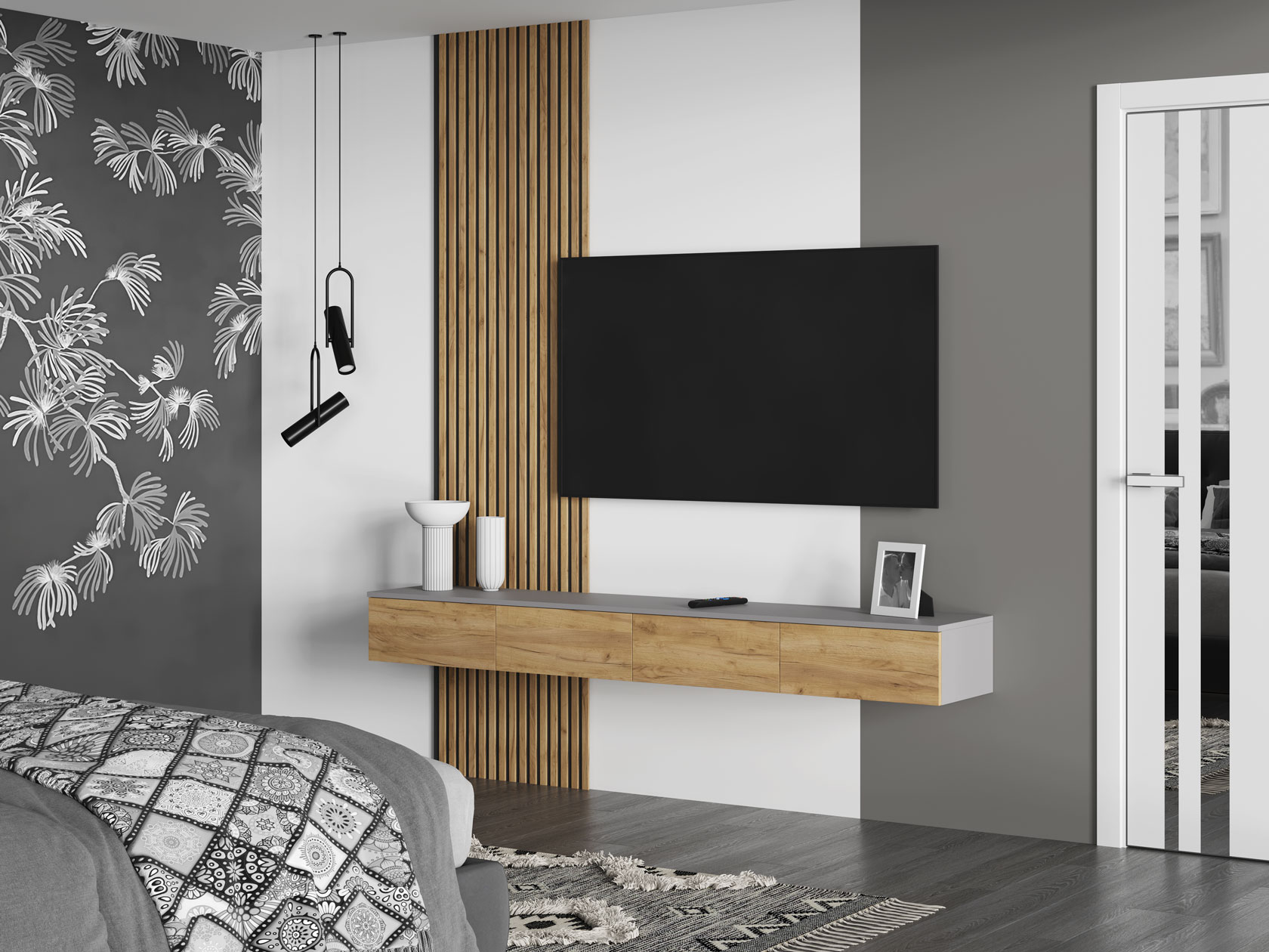 Гостиная Бостон Дуо станет полноценной системой хранения в современном интерьере. За глухими фасадами можно спрятать разные предметы обихода и придать комнате более опрятный вид. Навесная тумба выступит прекрасной опорой для телевизора, а также позволит разместить декор, стильные аксессуары или памятные фото. Реечная панель выполняет декоративную функцию и создает уютный акцент.