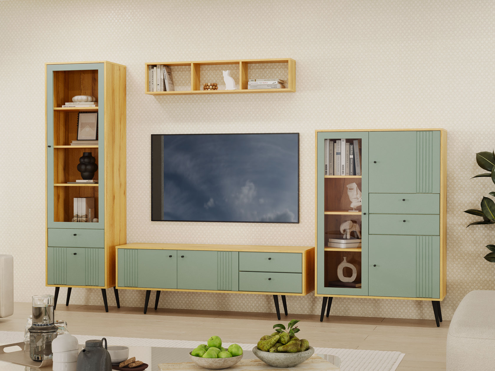 Гостиная Вега Саксония отлично смотрится как в просторной, так и небольшой комнате. Прозрачные витрины организуют удобное хранение, при этом позволяют продемонстрировать красивую посуду, коллекцию книг и памятных сувениров. Пользоваться мебелью очень комфортно: выдвижные ящики дают полный обзор содержимого, а дверцы закрываются плавно и бесшумно.