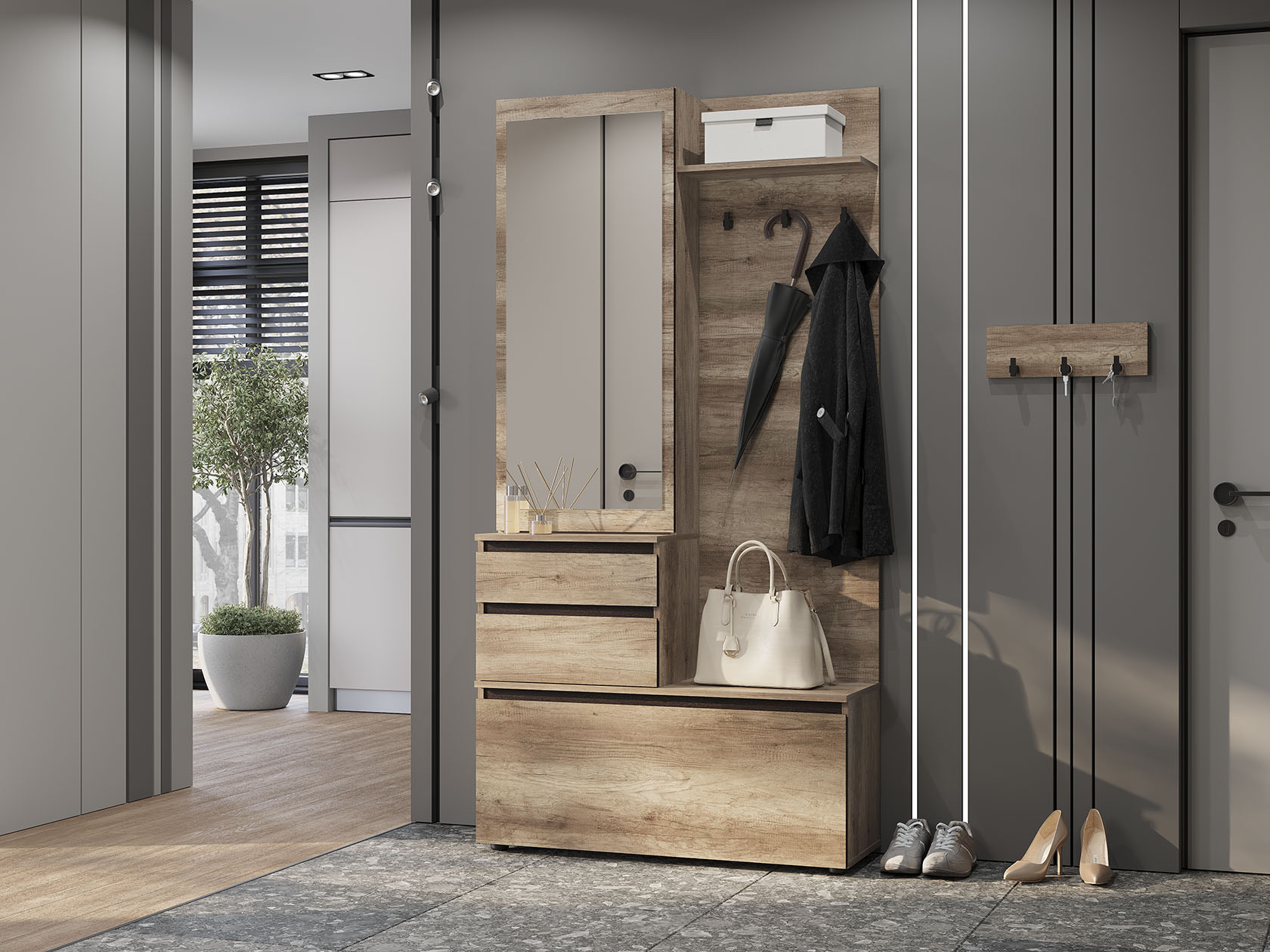 Прихожая Энигма придется по душе ценителям практичности и сдержанного оформления. Функциональная модель позволит распределить одежду и обувь, сохранив при этом полезную площадь. Зеркало визуально расширит пространство и станет незаменимым помощником, чтобы оценить свой образ.