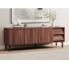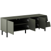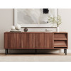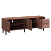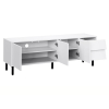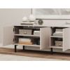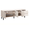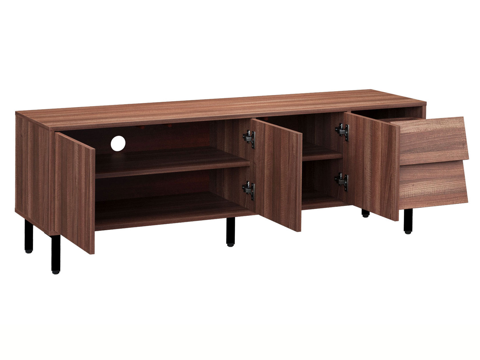 ТВ-тумба Степ привлекает внимание эффектным сочетанием прямых и скошенных фасадов. Дверцы закрываются плавно и бесшумно, а выдвижные ящики предоставляют полный обзор содержимого. На поверхности можно разместить телевизор с широкой диагональю или осветительные приборы. Высокие опоры облегчают уборку.