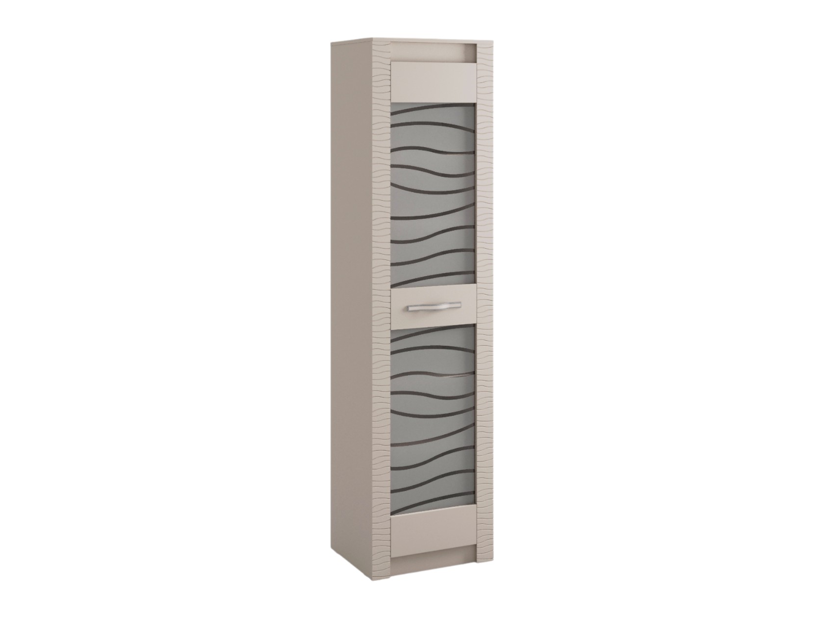 Гостиная Далия с витринами — эффектный способ обустроить главную комнату в доме. В наборе есть всё необходимое, чтобы организовать удобное хранение и украсить интерьер предметами декора. Фрезеровка на фасадах дублирует волны на дверцах шкафов, что создает необычные акценты меблировки.