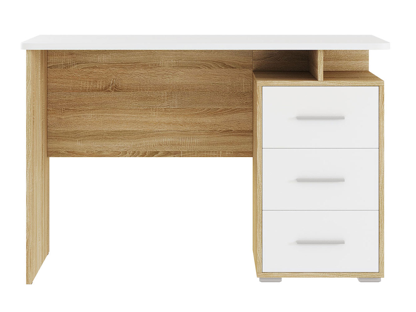 Письменный стол Лайт-Т дополнит рабочую зону домашнего кабинета или офисного пространства. В дизайне нет ничего лишнего: только природные оттенки и гладкие фасады с лаконичными ручками. Такое исполнение легко комбинировать с различными стилями интерьера. На поверхности достаточно места для стационарного компьютера или ноутбука, лампы и органайзеров. Компактные ящики помогут держать под рукой необходимые мелочи.