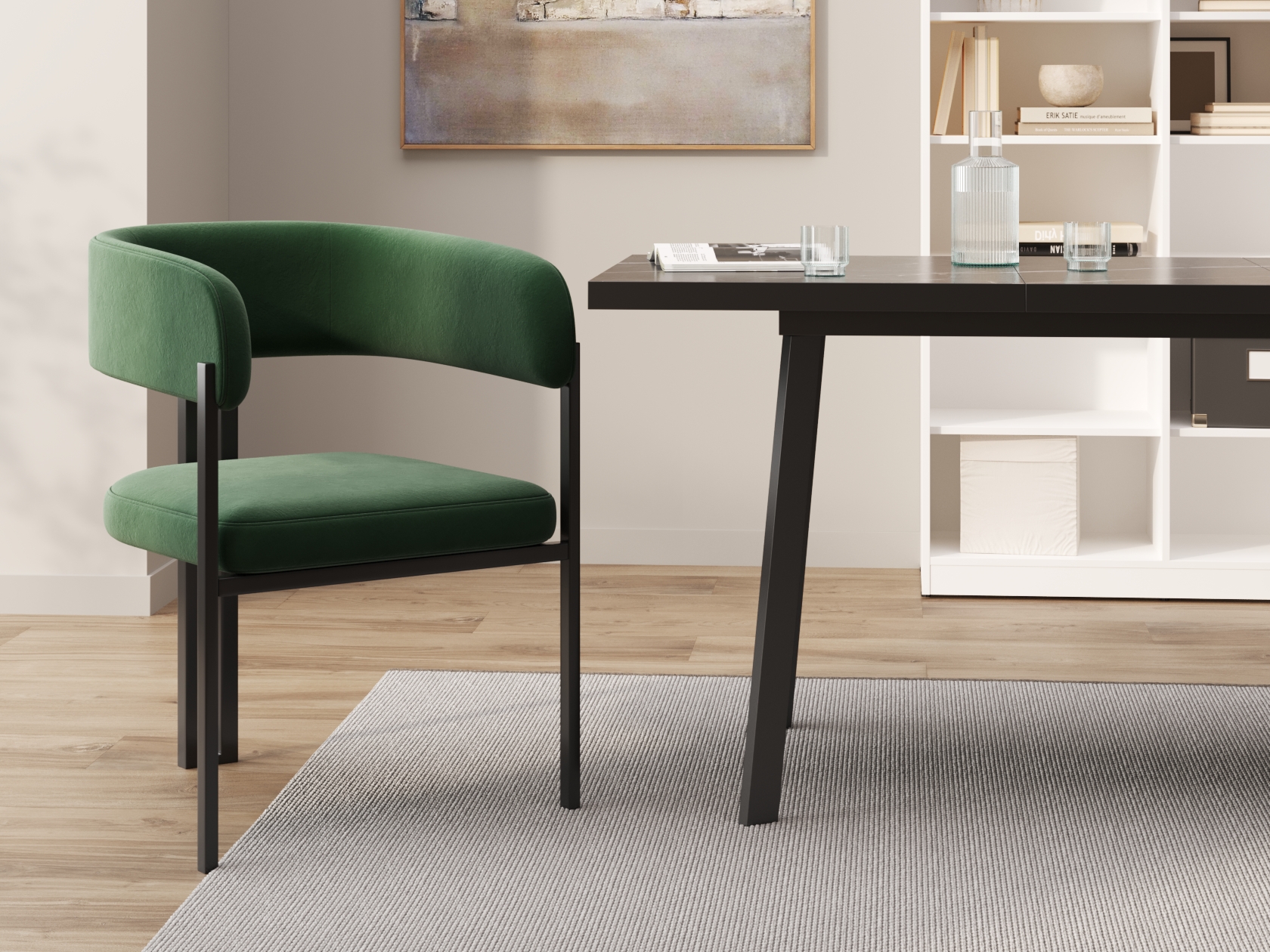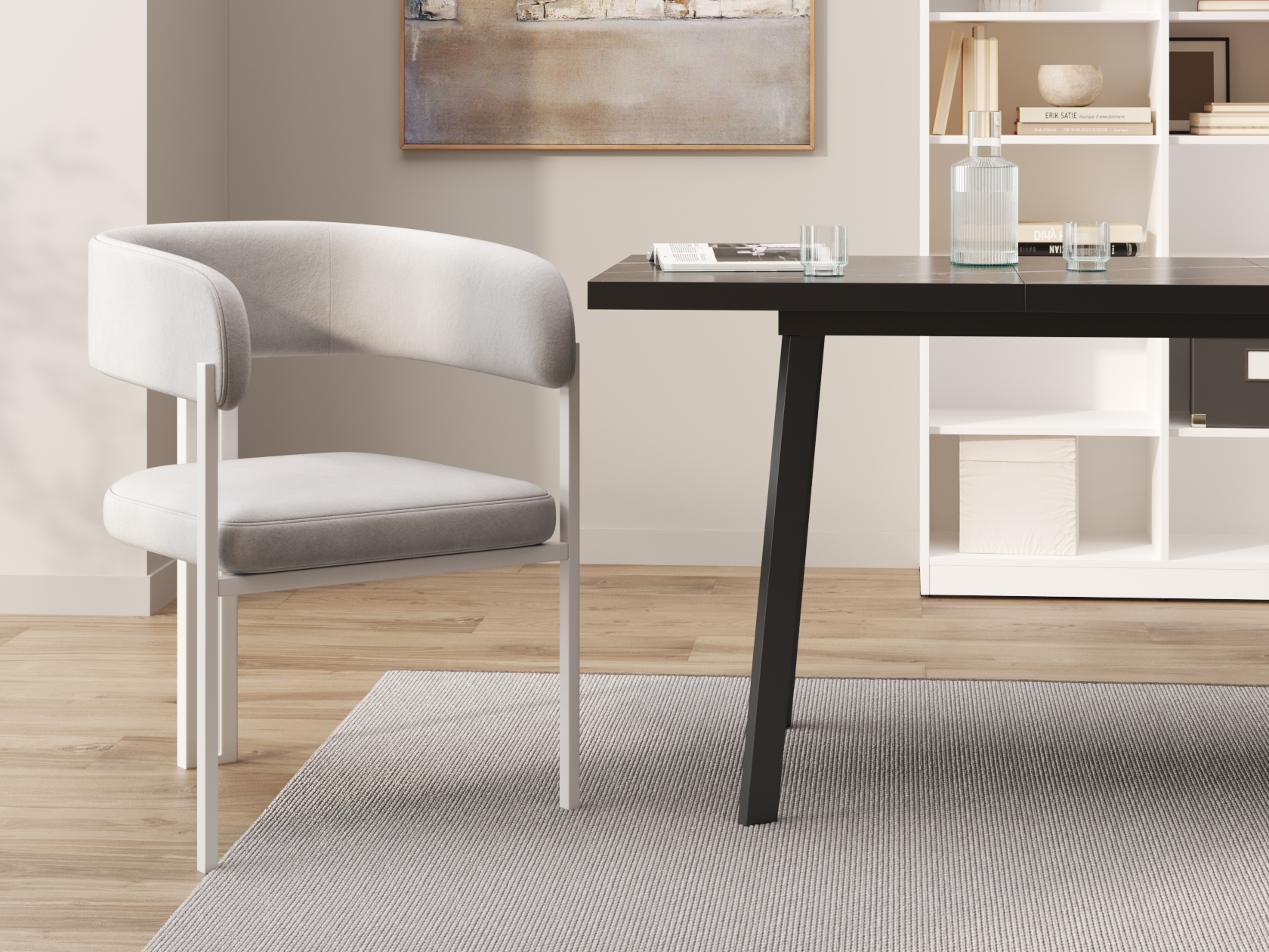 Стул Брис добавит меблировке нотки утонченной роскоши. Изящная спинка плавно переходит в подлокотники, создавая элегантный силуэт модели. Мягкое сиденье и металлические ножки — эффектное сочетание материалов, которое смотрится актуально в большинстве современных интерьеров. Обивка выполнена из практичной износостойкой ткани.
