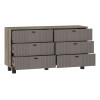 Комод Олива оснащен выдвижными ящиками небольшой глубины. Модель идеально подходит для узкой комнаты или прихожей. Матовые фасады с фрезеровкой гармонично дополняют корпус в древесном декоре. Внутри удобно хранить одежду, важные документы, бытовые мелочи и другие вещи, которые не хочется оставлять на виду.