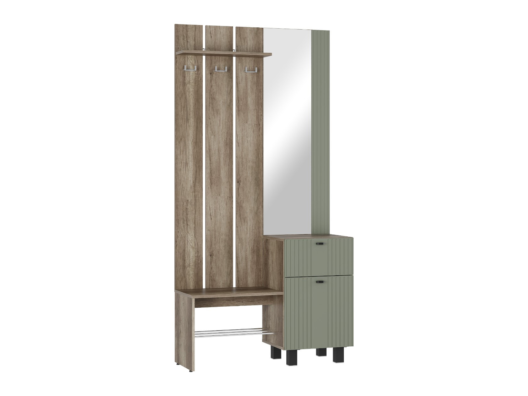 Прихожая Олива со шкафом поможет удобно разместить повседневную верхнюю одежду, обувь и аксессуары при входе в квартиру. Однотонные фасады с вертикальной фрезеровкой гармонично сочетаются с древесной текстурой. Такой дизайн смотрится очень уютно и актуально. Благодаря качественной фурнитуре пользоваться мебелью комфортно и приятно.