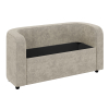 Прямой диван Лорен Мини можно установить в очень ограниченном пространстве. Спинка и подлокотники образуют единую линию, подчеркивая лаконичность дизайна. В качестве обивки используется износостойкий и простой в уходе материал. Под сиденьем находится глубокий короб, который создает дополнительное место для хранения вещей.