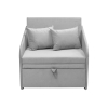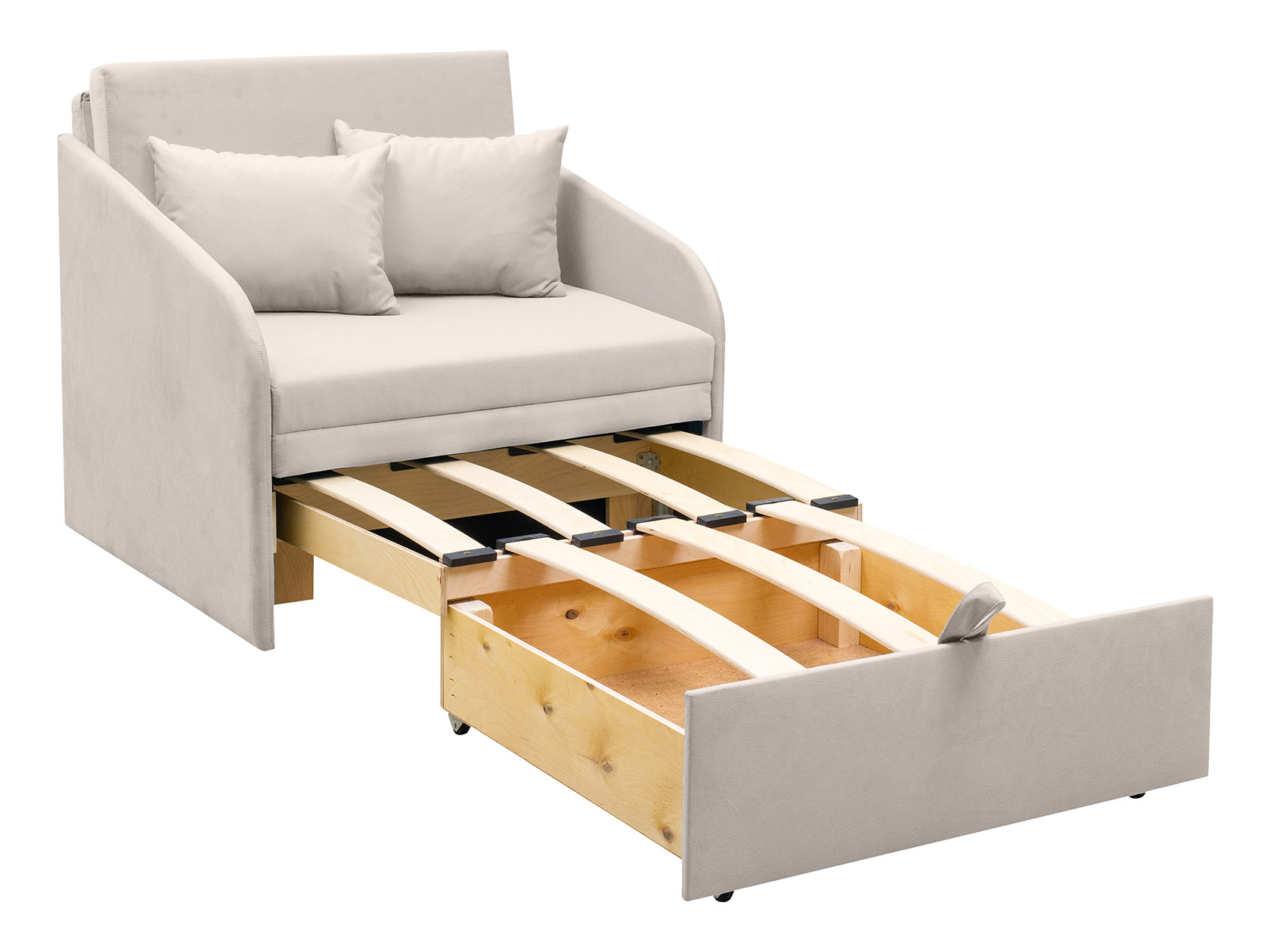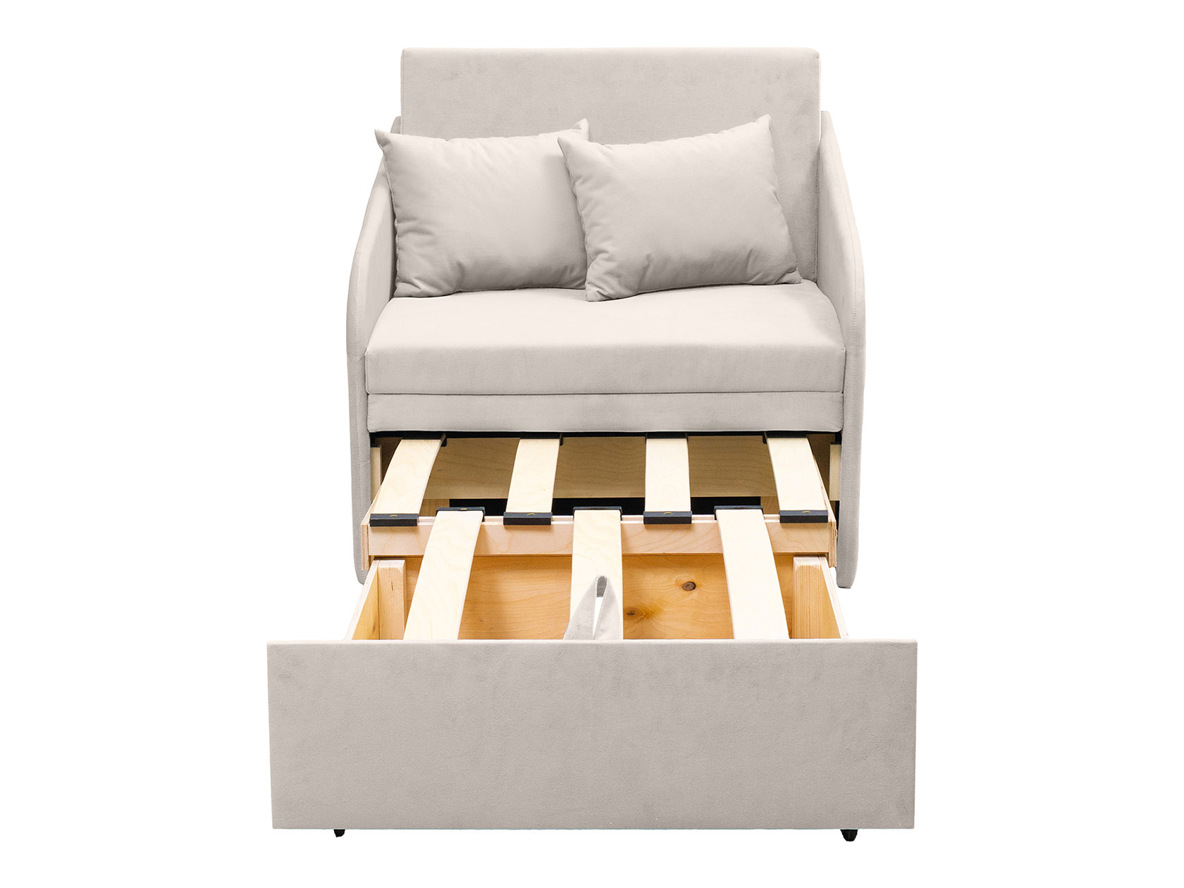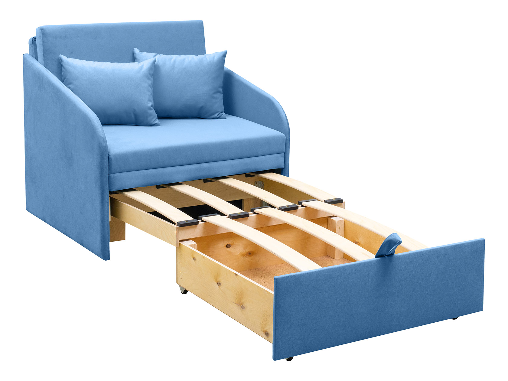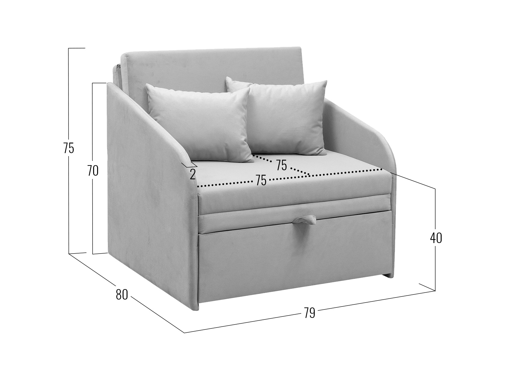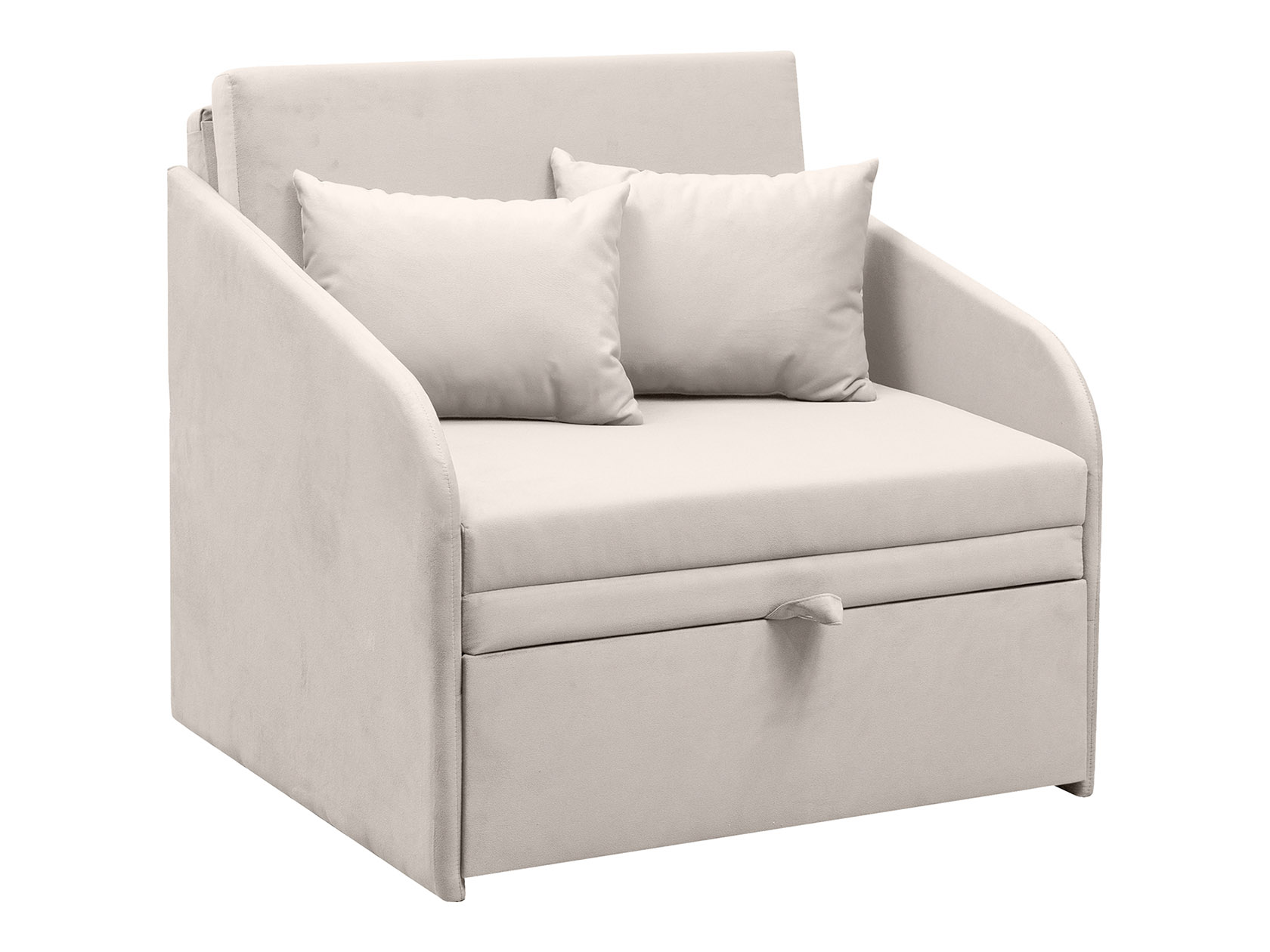 Кресло-кровать Бонго отлично впишется в комнату с ограниченным пространством. В сложенном виде модель идеальна для отдыха, а с помощью выкатного механизма легко превращается в спальное место. Бельевой короб позволяет удобно хранить постельные принадлежности. Подушки создают дополнительный комфорт, а небольшая спинка защищает от контакта со стеной, когда кресло разложено.