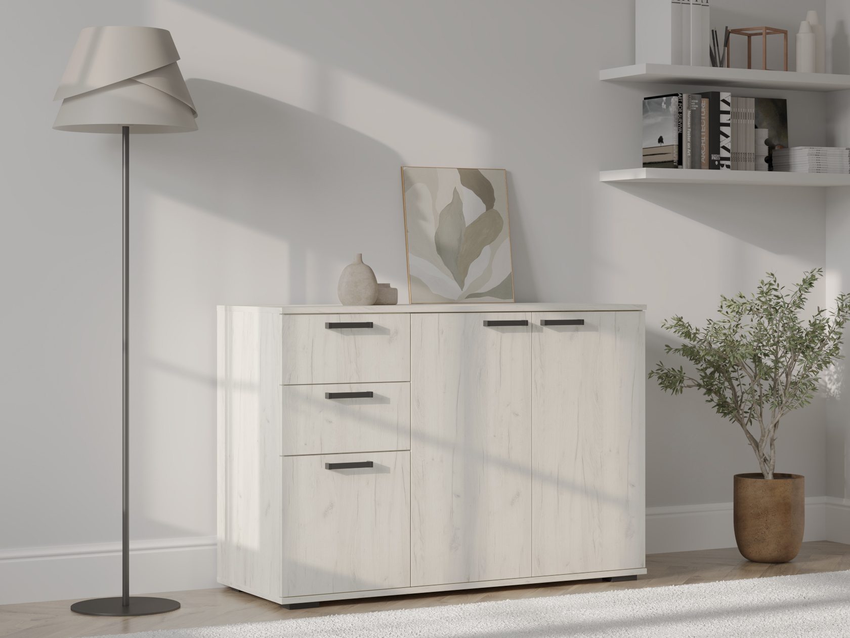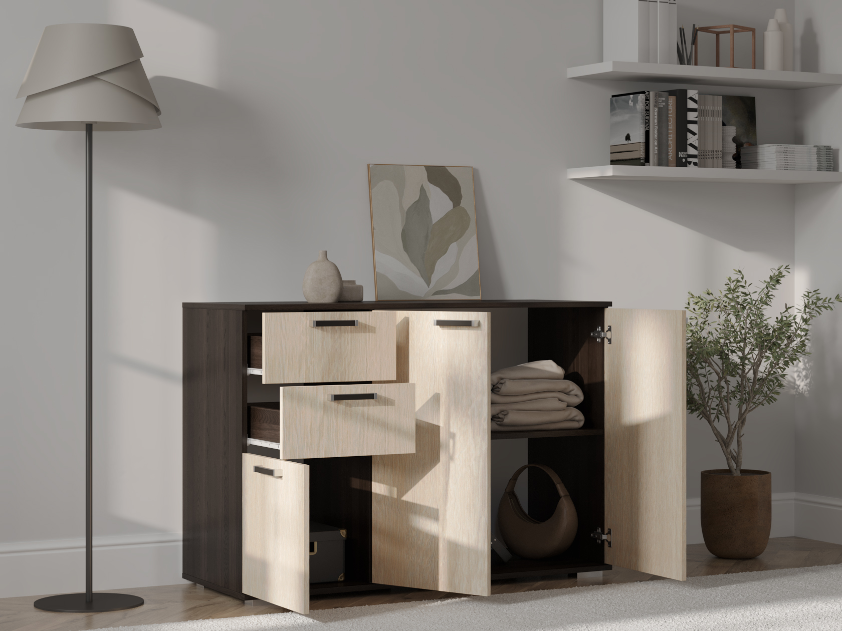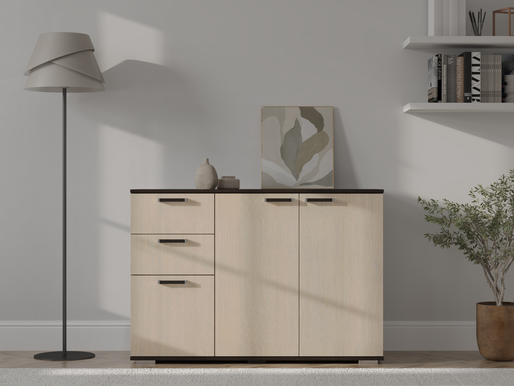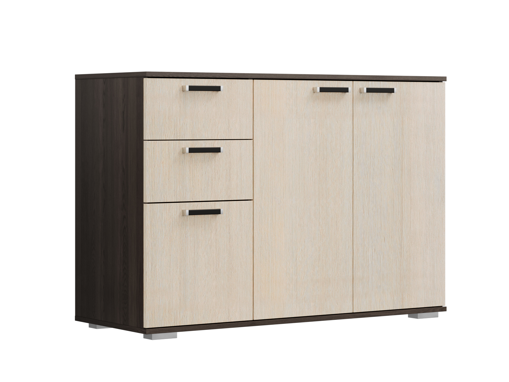 Комод Стандарт 3 — удачное решение для меблировки. Выдвижные ящики помогут аккуратно расположить разные мелочи, а за дверцами поместятся более объемные предметы гардероба, документы или детские игрушки. Уютный дизайн в приятных древесных оттенках легко интегрировать в современные интерьерные стили.