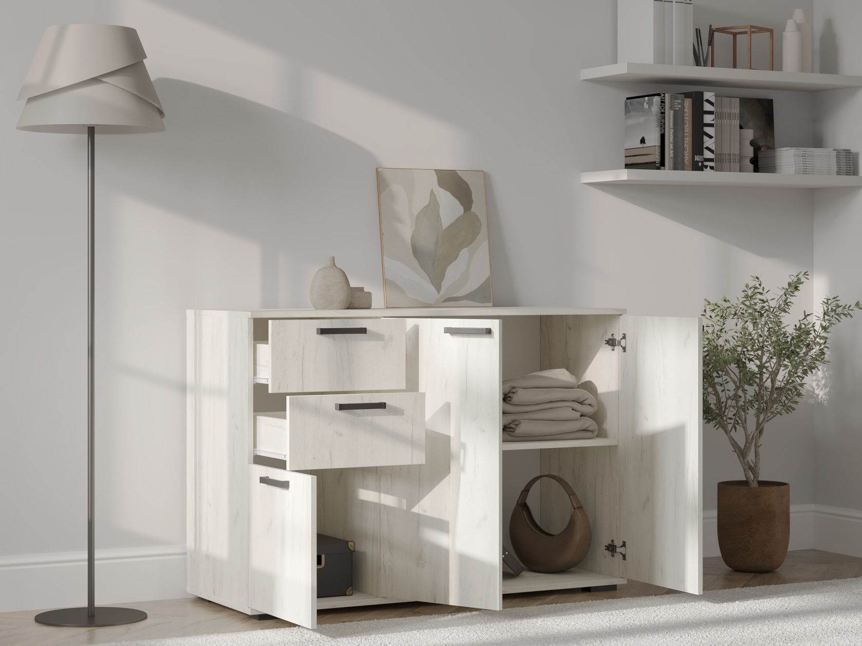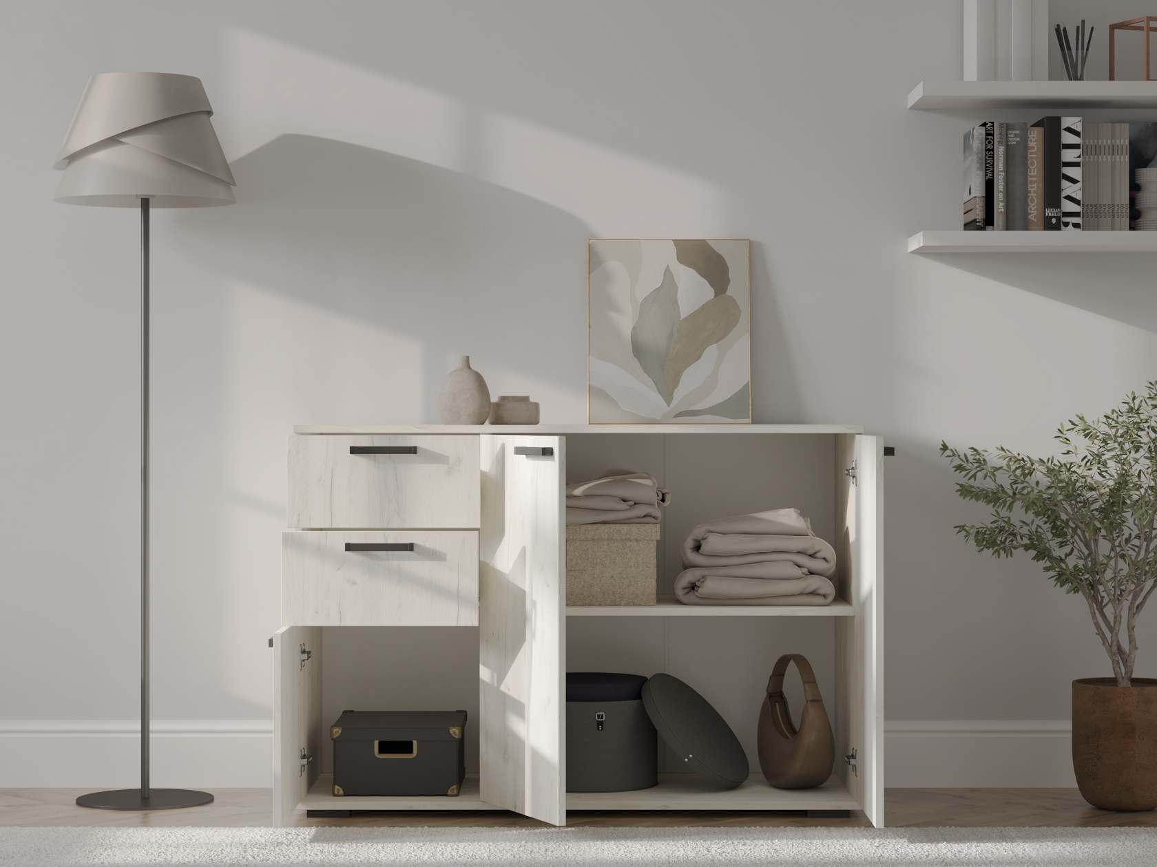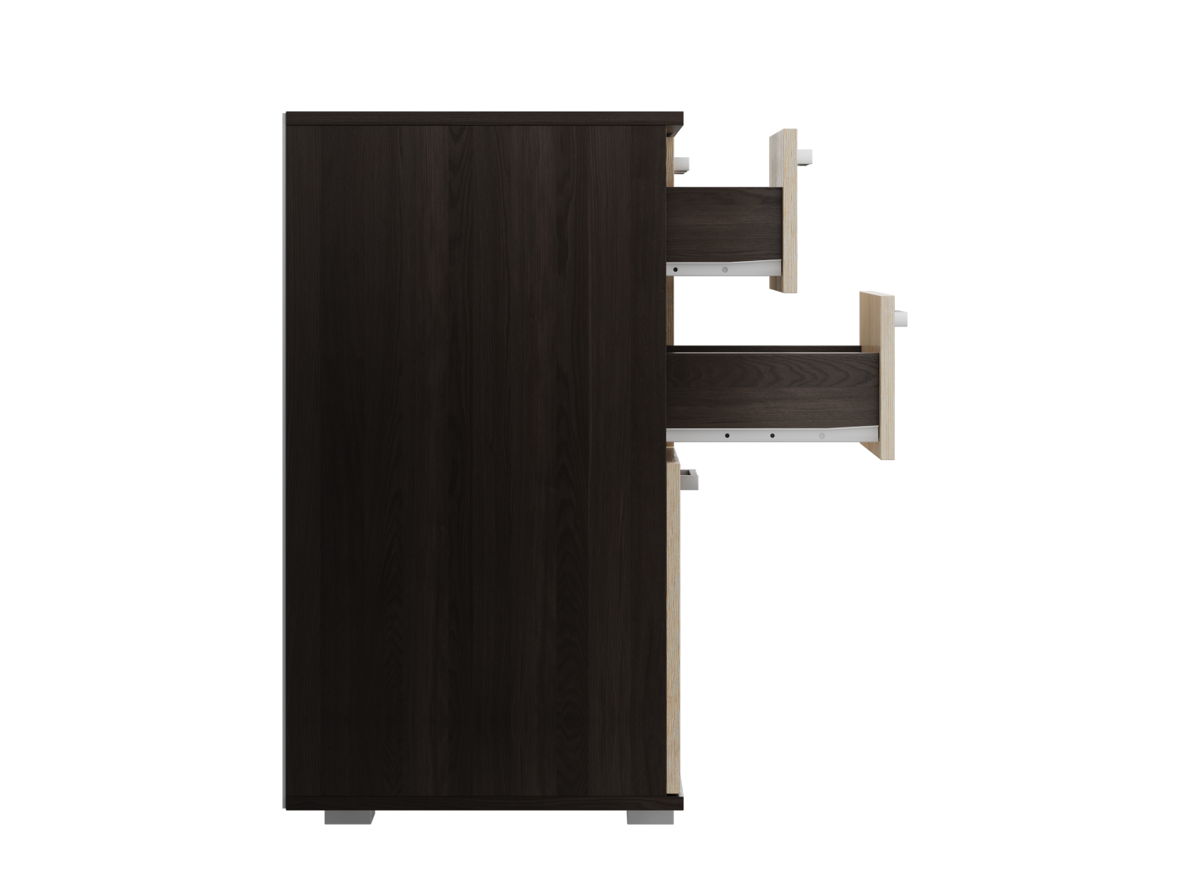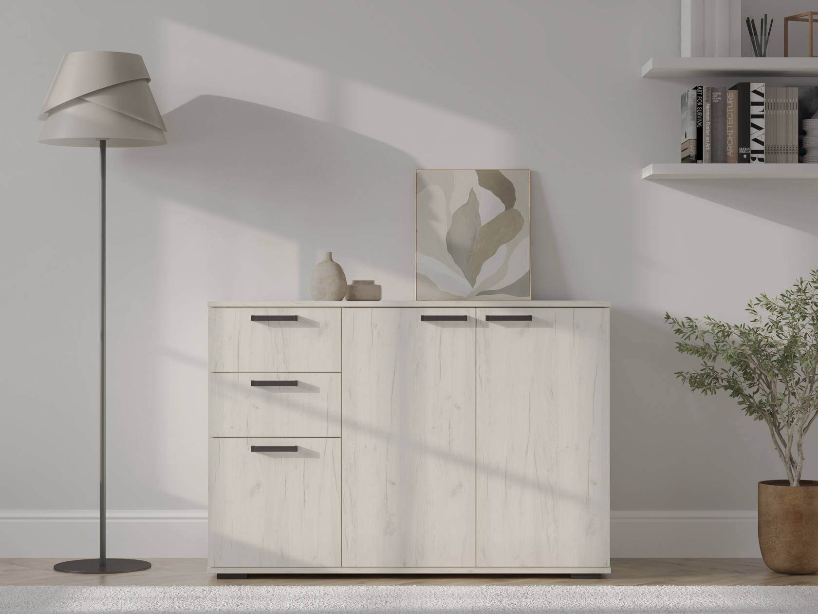 Комод Стандарт 3 — удачное решение для меблировки. Выдвижные ящики помогут аккуратно расположить разные мелочи, а за дверцами поместятся более объемные предметы гардероба, документы или детские игрушки. Уютный дизайн в приятных древесных оттенках легко интегрировать в современные интерьерные стили.