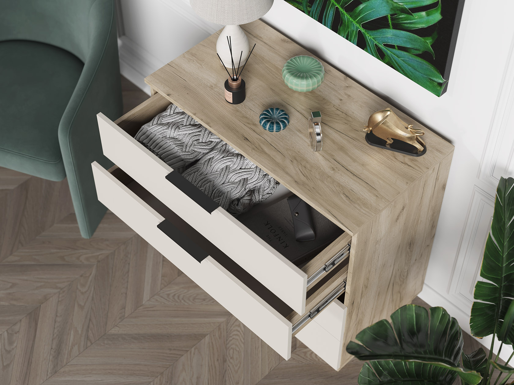 Комод Бохо Стандарт поможет поддерживать порядок в любой комнате. В выдвижных ящиках удобно хранить белье, одежду, документы и другие предметы обихода. В дизайне сделан акцент на визуальную легкость и стильную гамму оттенков, которая создает уютную и теплую атмосферу.