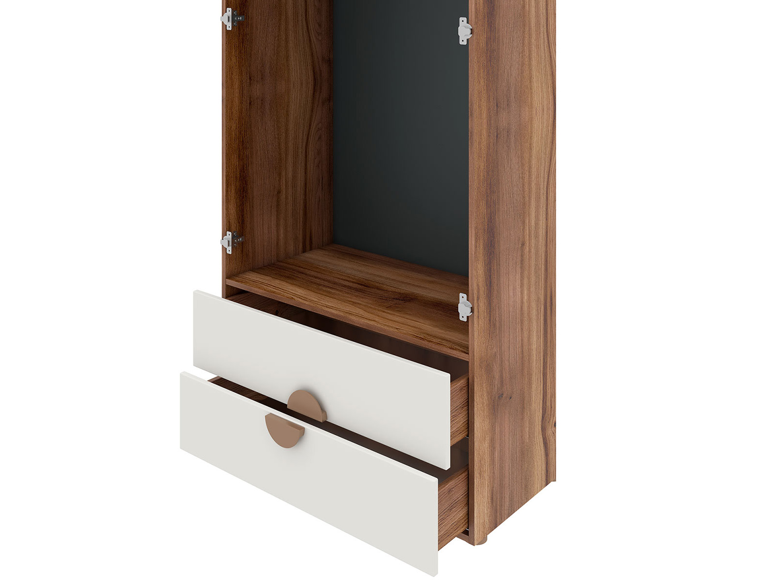 Детский шкаф Эллия — удобная модель с ярким дизайном. Оттенки фасадов и корпуса гармонично сочетаются и создают особое настроение в интерьере. Оригинальные ручки выполняют как основную, так и декоративную функцию. В шкафу найдется место для повседневной одежды, игрушек и аксессуаров.