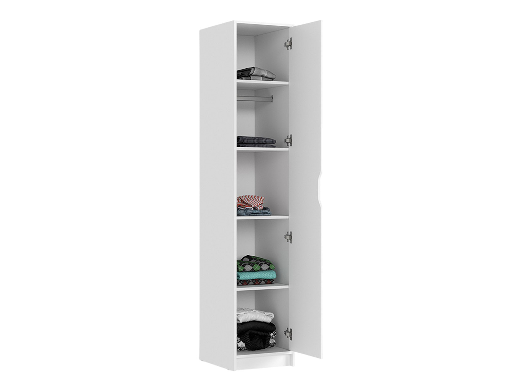 Шкаф Руна отлично подходит для хранения повседневных вещей, игрушек и книг. Полки регулируются по высоте, что позволяет адаптировать модель под разные цели. Лаконичное оформление не перегружает интерьер и сочетается с другой мебелью в любой цветовой гамме.