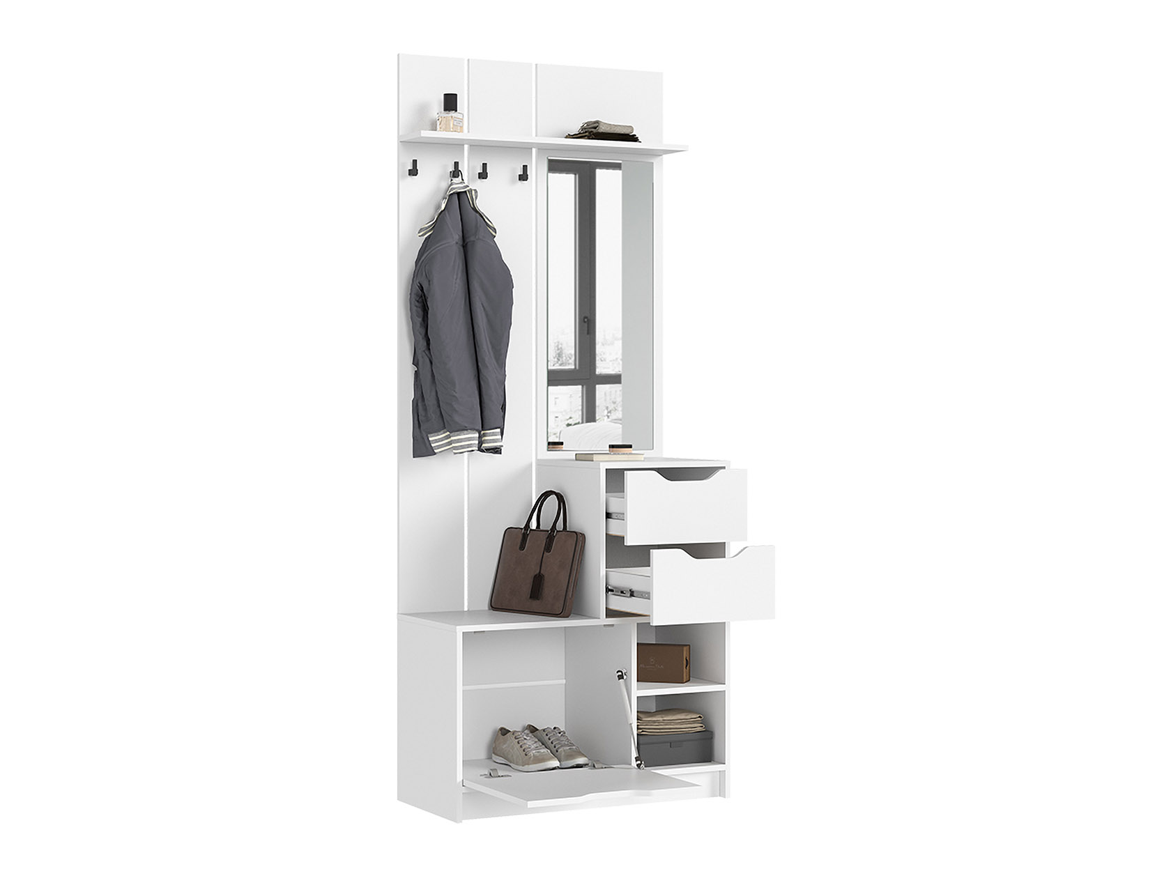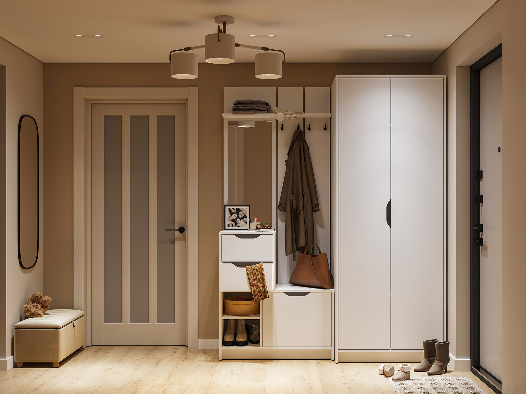 Прихожая Руна представляет собой сочетание функциональных элементов с удобным и продуманным наполнением. На полках, в нишах и выдвижных ящиках найдется место для всех необходимых вещей. Минималистичное оформление без выступающей фурнитуры удачно сочетается с разными интерьерными решениями.