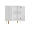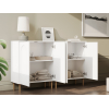Комод Ванесса Дуо — воплощение изящного и в то же время сдержанного дизайна. Оригинальная фрезеровка на фасадах и высокие ножки подчеркивают элегантный стиль модели. За распашными дверцами скрыто отделение с полкой, где удобно хранить книги, текстиль и небольшие предметы обихода. На поверхности можно разместить декор, лампу или домашние растения.