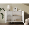 Комод Ванесса Трио упорядочит хранение вещей и украсит обстановку. Фасады с фрезеровкой в виде плавных линий придают модели особый шарм. За распашными дверцами находятся два отделения с полками, где удобно держать книги, документы или посуду. Благодаря высоким ножкам мебель смотрится невесомо и подходит для небольшой комнаты или прихожей.