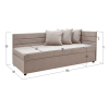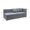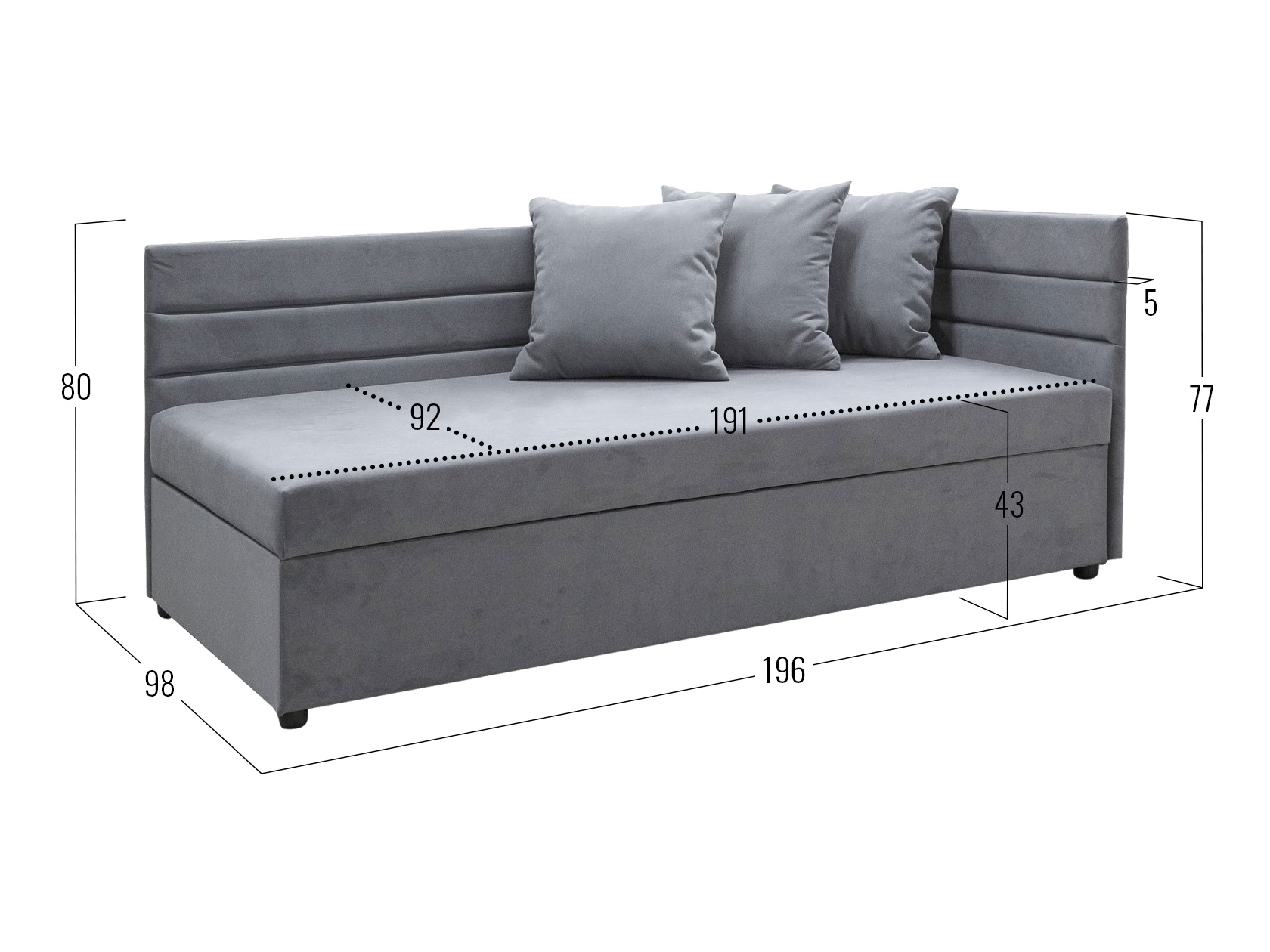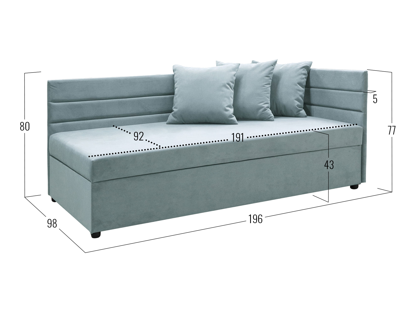 Прямой диван Хельга — удобное место для отдыха в небольшой спальне, детской или квартире-студии. Простой силуэт с лаконичным декором удачно смотрится в любом интерьере. Подушки под спину обеспечивают максимальный уют, а высокие бортики в мягкой обивке защищают от контакта со стеной. Под сиденьем расположен бельевой короб с двумя отделениями для постельных принадлежностей.