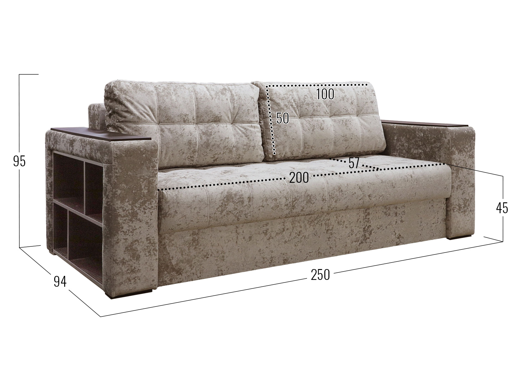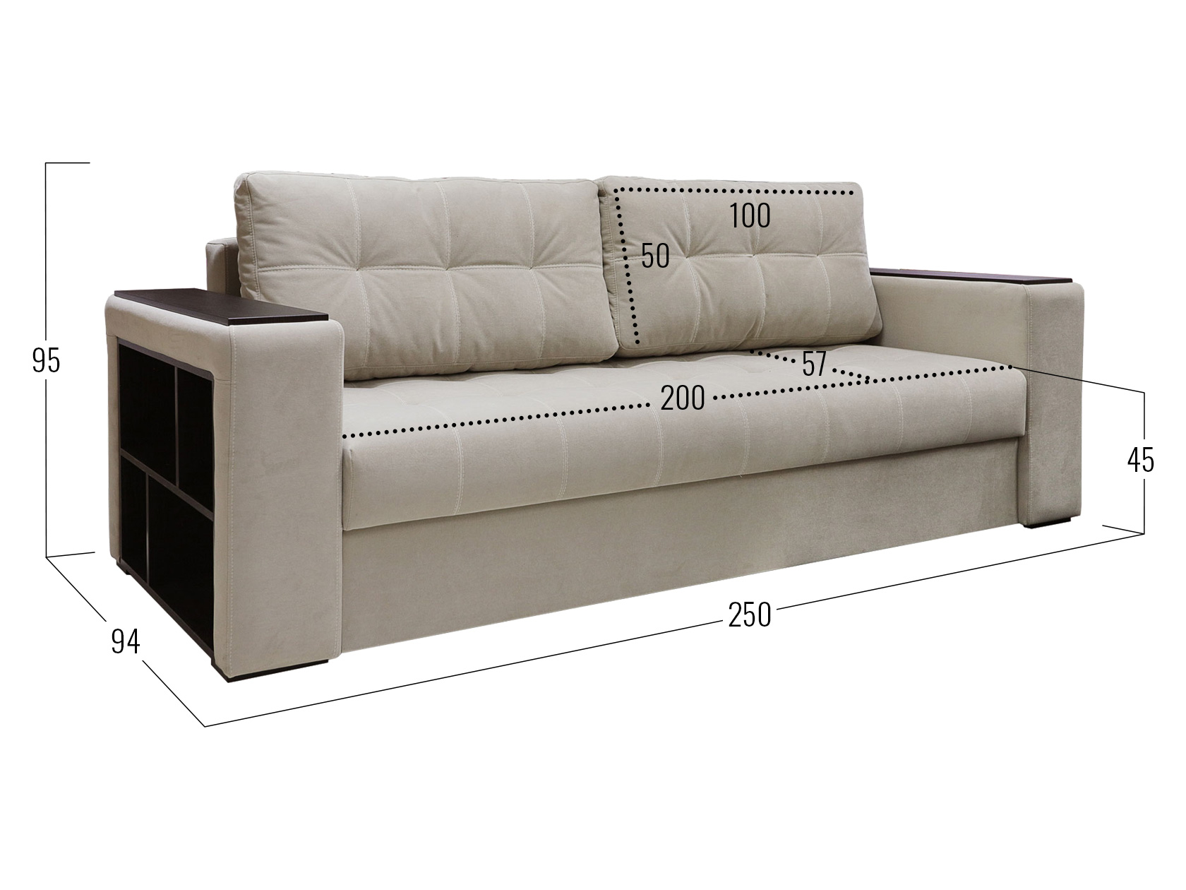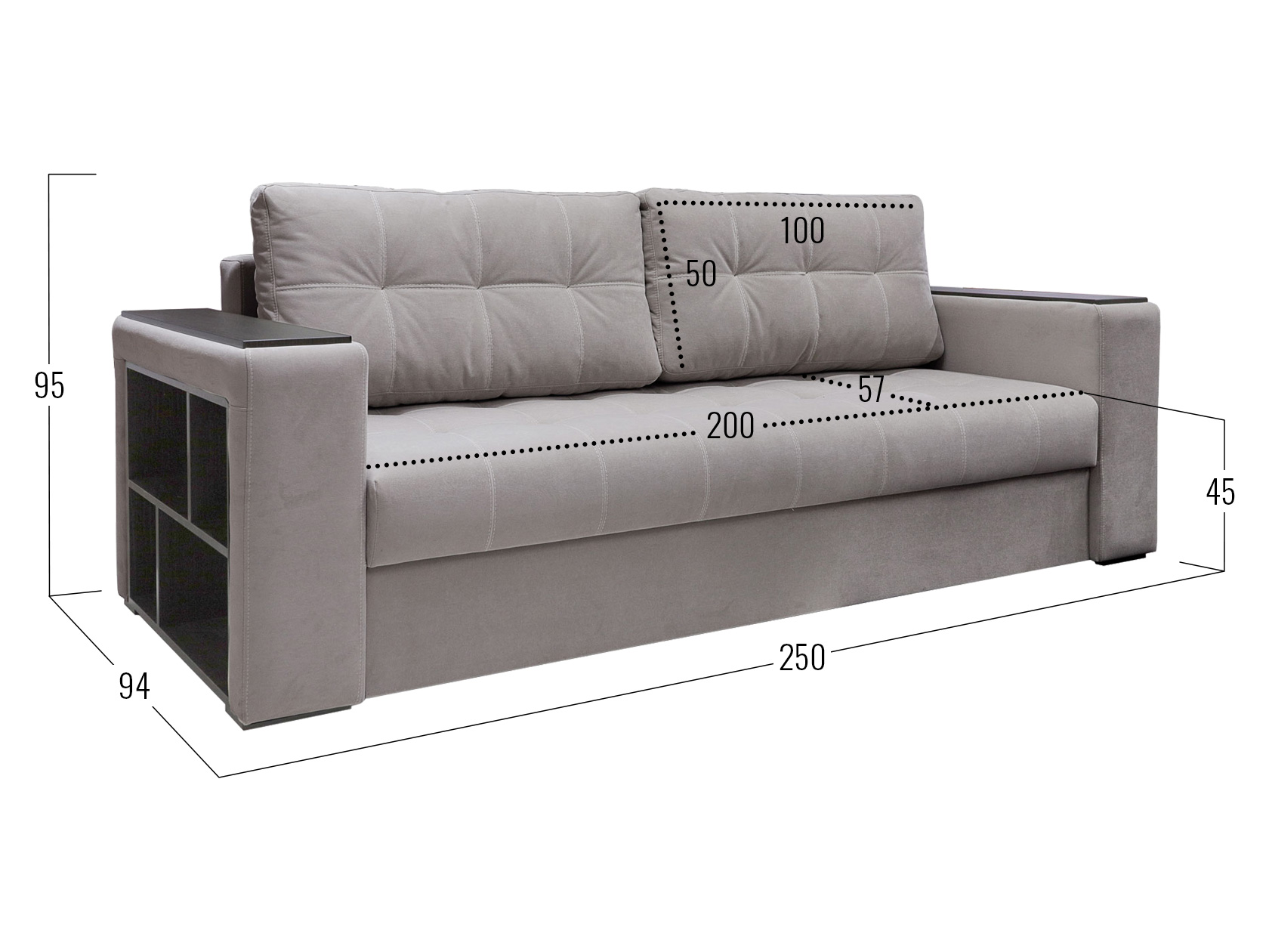 Посадочное место без подушек (ШхГ): 200 х 71 см.