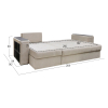 Благодаря приспинным подушкам можно регулировать глубину посадки, отдыхая сидя или полулежа. В разложенном виде модель превращается в комфортное место для сна. Бельевые коробы в оттоманке и основной секции делают диван еще практичнее.