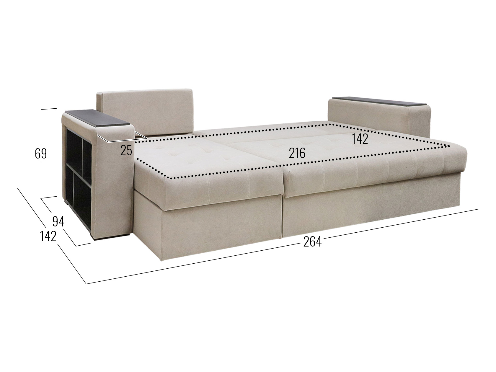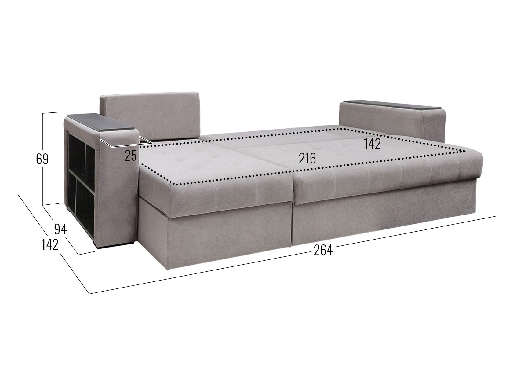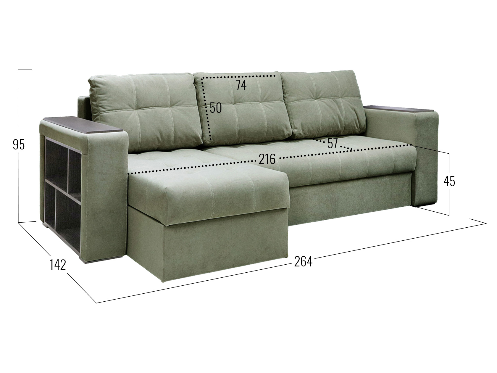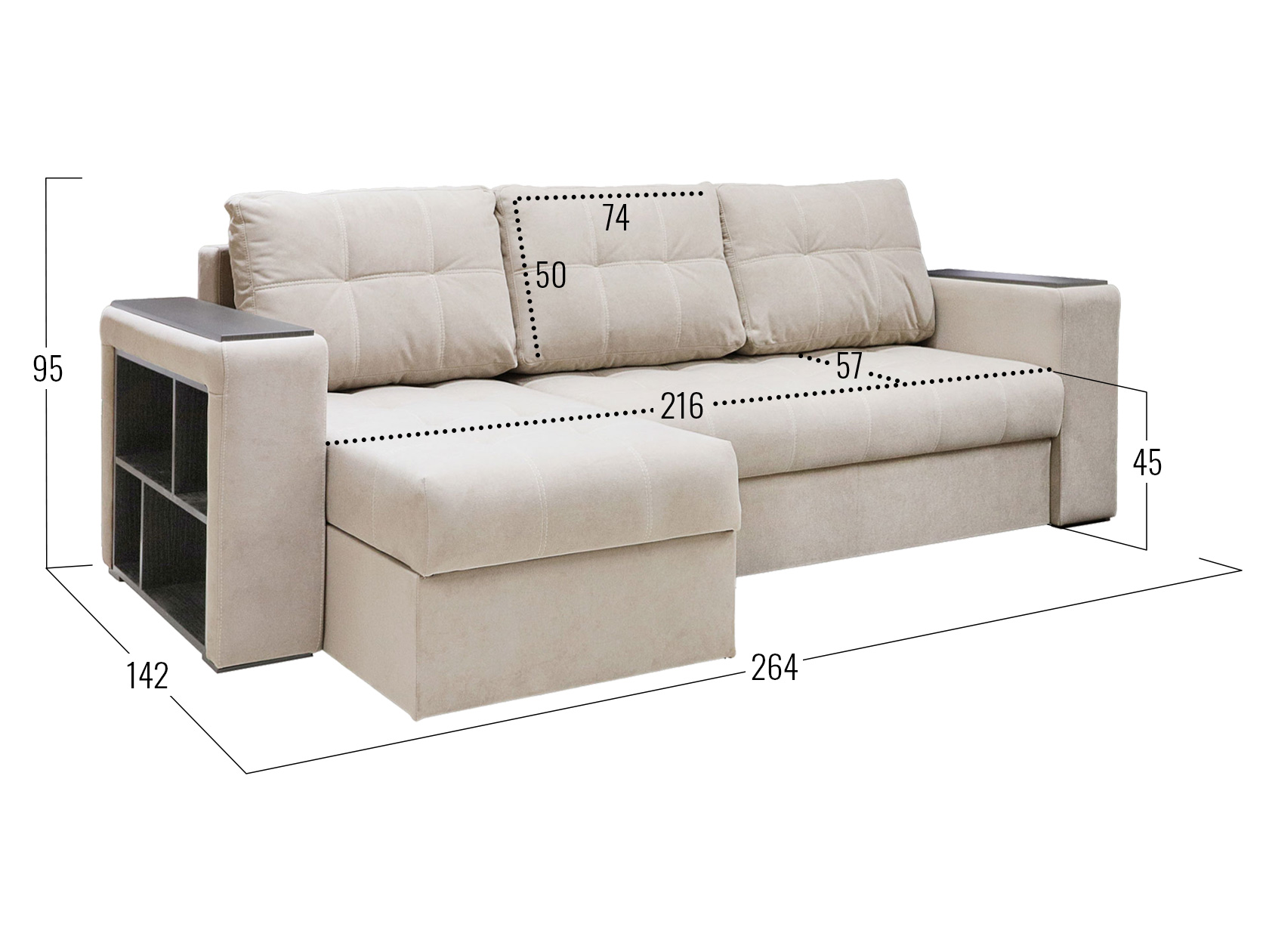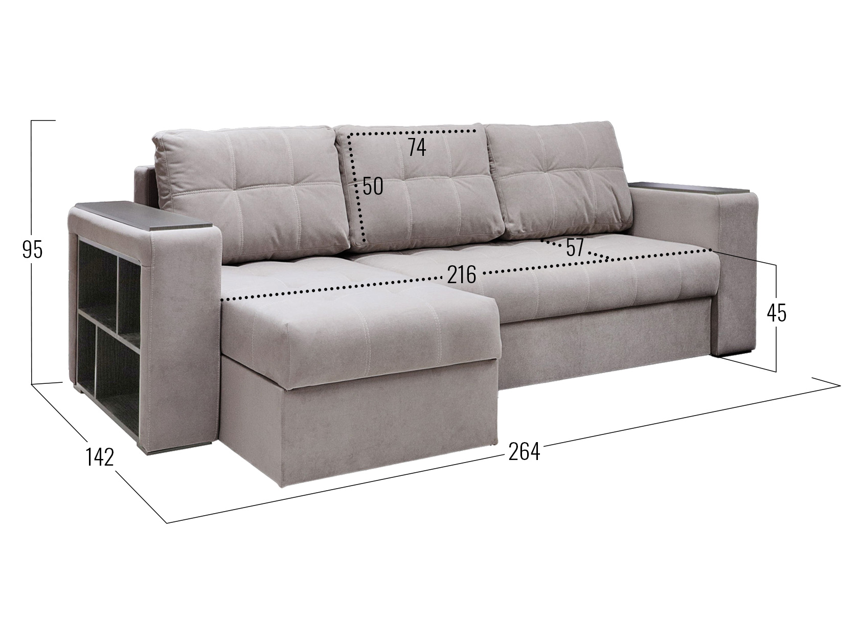 Дизайн углового дивана Берген продуман до мелочей и отлично сочетается с разными стилями интерьера. Широкие подлокотники дополнены специальными накладками, где удобно держать пульт, очки или смартфон. С обеих сторон расположены ниши для хранения книг и гаджетов.