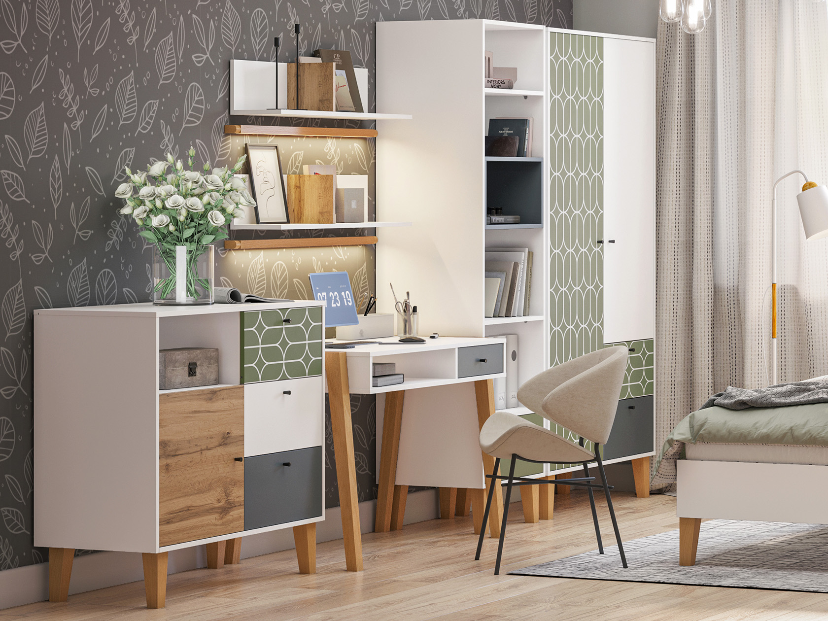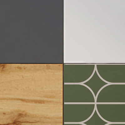 Белый шелк / Темно-серый / Дуб Вотан / Олива