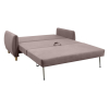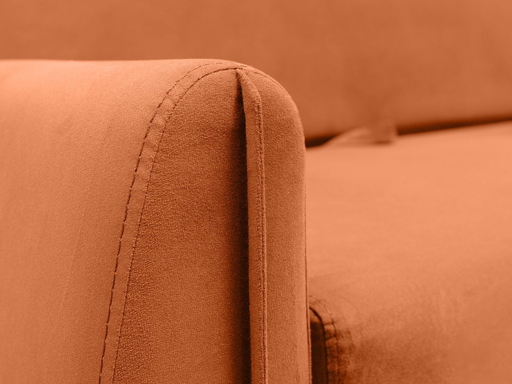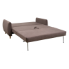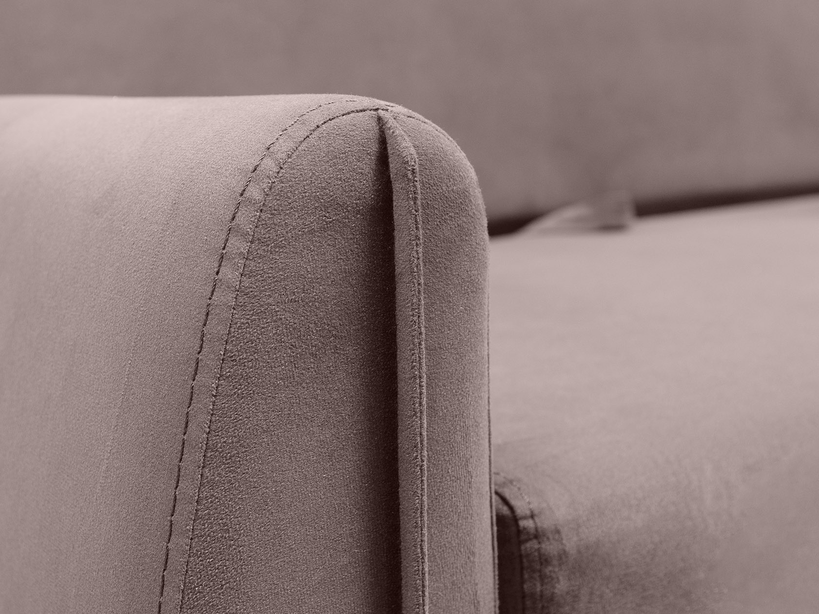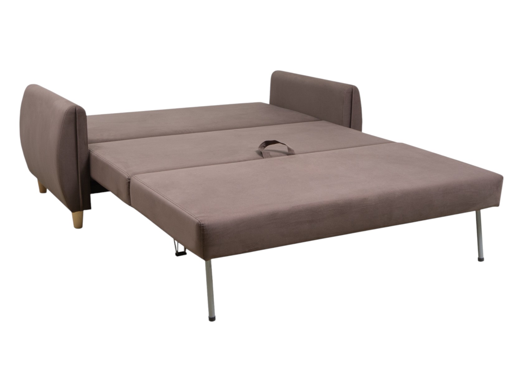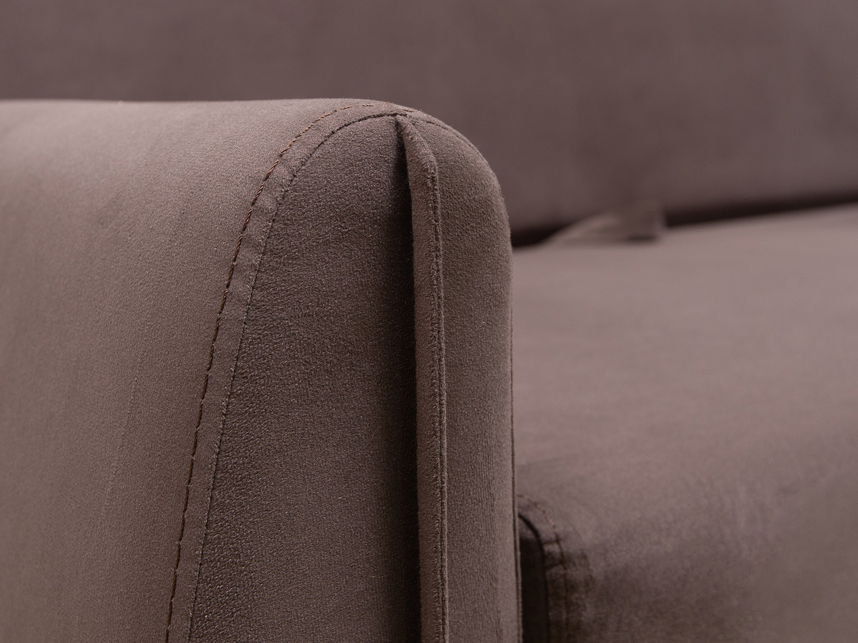 Прямой диван Дели — современная модель с необычным силуэтом. Спинка обита лицевой тканью, поэтому его можно установить в любой части комнаты, а не только вдоль стены. Ровное и просторное спальное место — еще одно преимущество модели. Шагающий механизм трансформации не портит напольное покрытие и не задевает ковер. Высокие ножки облегчают уборку и создают визуально легкий облик. Деревянный каркас отличается экологичностью и долговечностью.