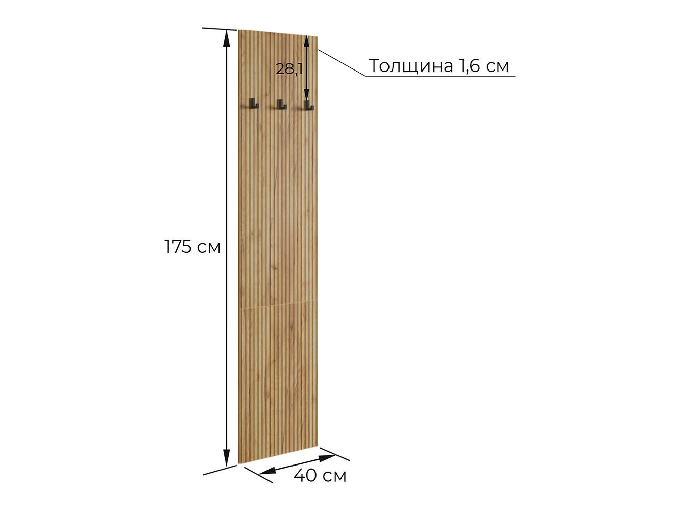 Настенная вешалка: 175 x 40 x 1,6 см.
