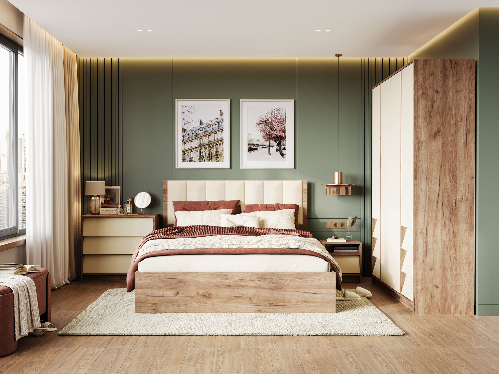Комод Рейн Мини — практичное решение для хранения домашнего текстиля и предметов гардероба. Вместительные выдвижные ящики полностью открываются, что облегчает поиск нужной вещи. Скошенные линии фасадов добавляют меблировке динамики и стиля.