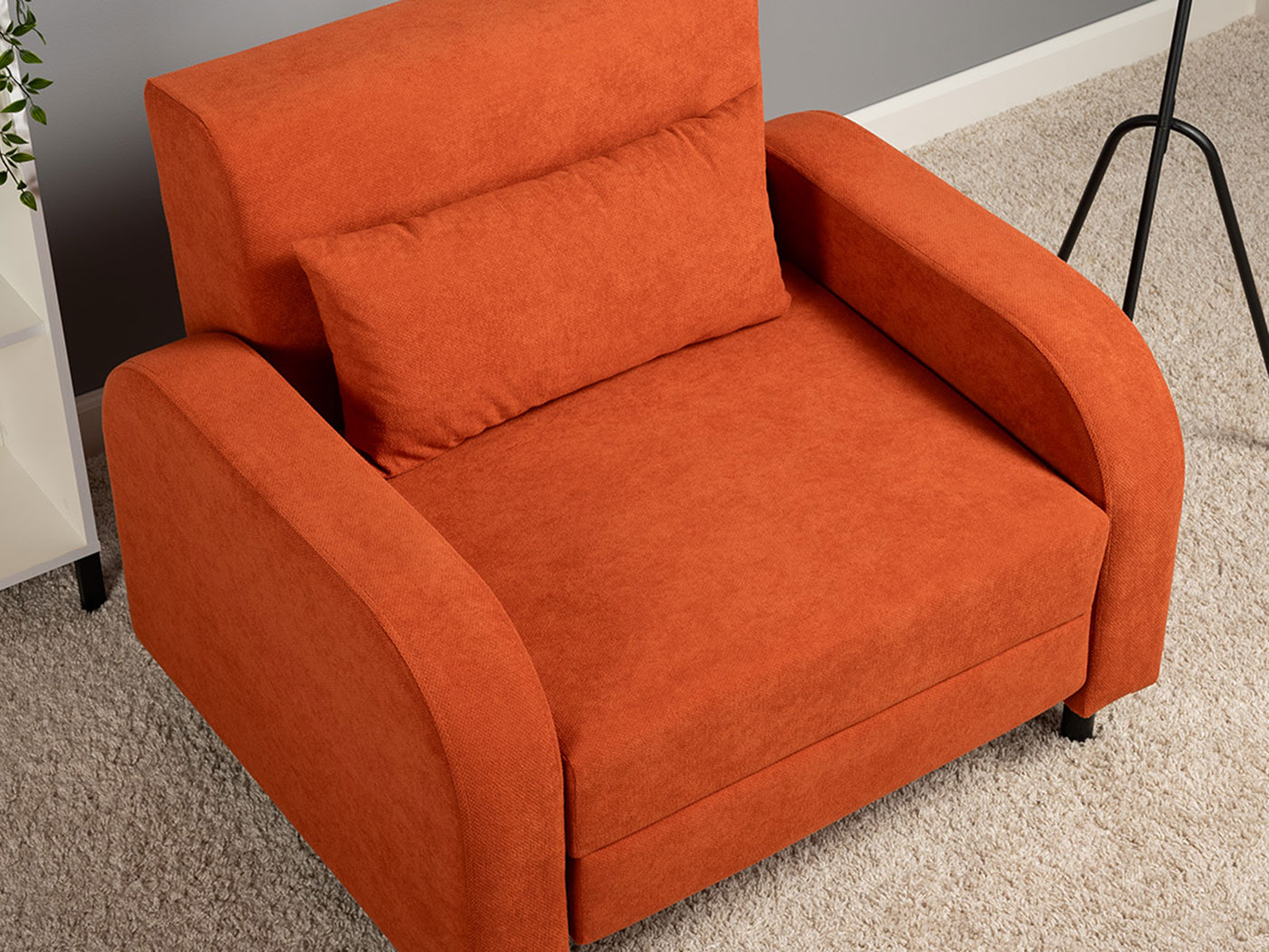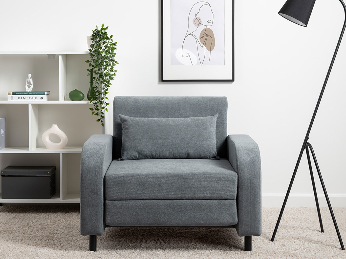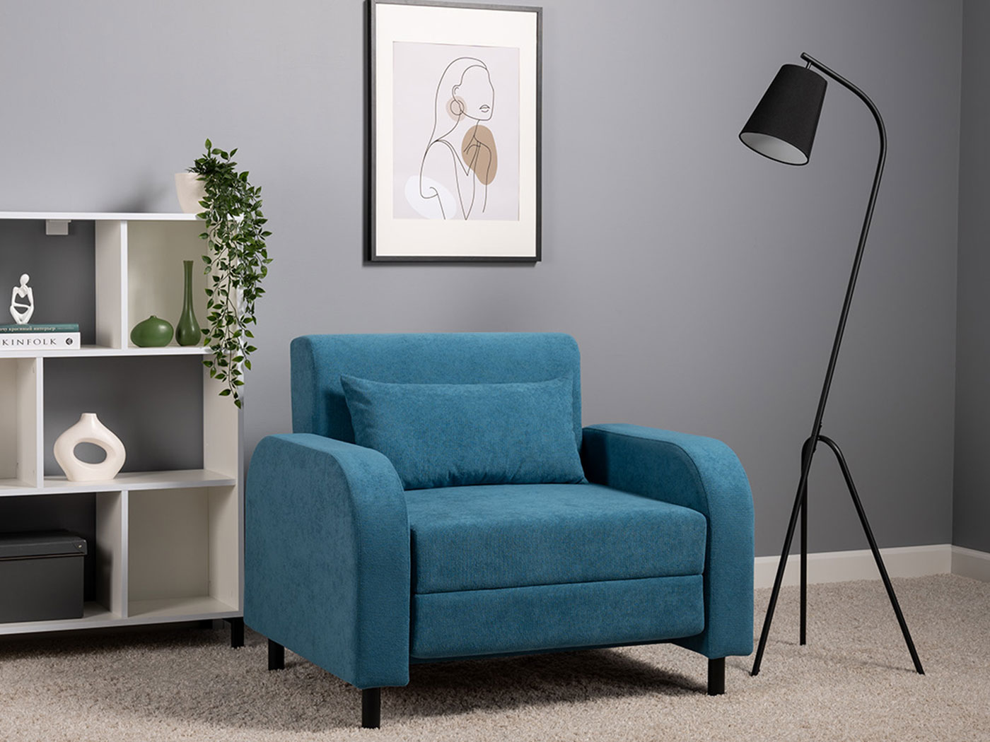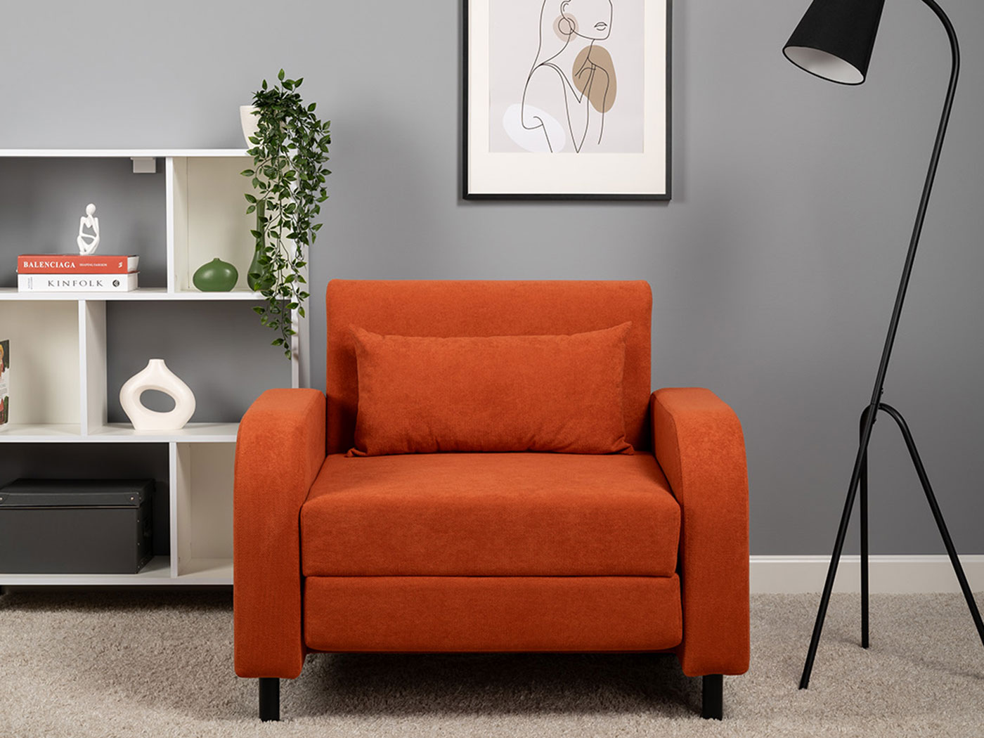 Кресло-кровать Киото дополнит интерьер спальни или гостиной и обеспечит уютное место для отдыха. Плавная форма подлокотников, а также мягкие линии спинки и сиденья создают гармоничный и актуальный силуэт. Со всех сторон кресло смотрится эстетично, поэтому его можно использовать для зонирования пространства. Простой механизм быстро превращает модель в односпальную кровать. Износостойкая ткань с защитой от влаги долго сохраняет привлекательный вид, а небольшие ножки облегчают уборку.