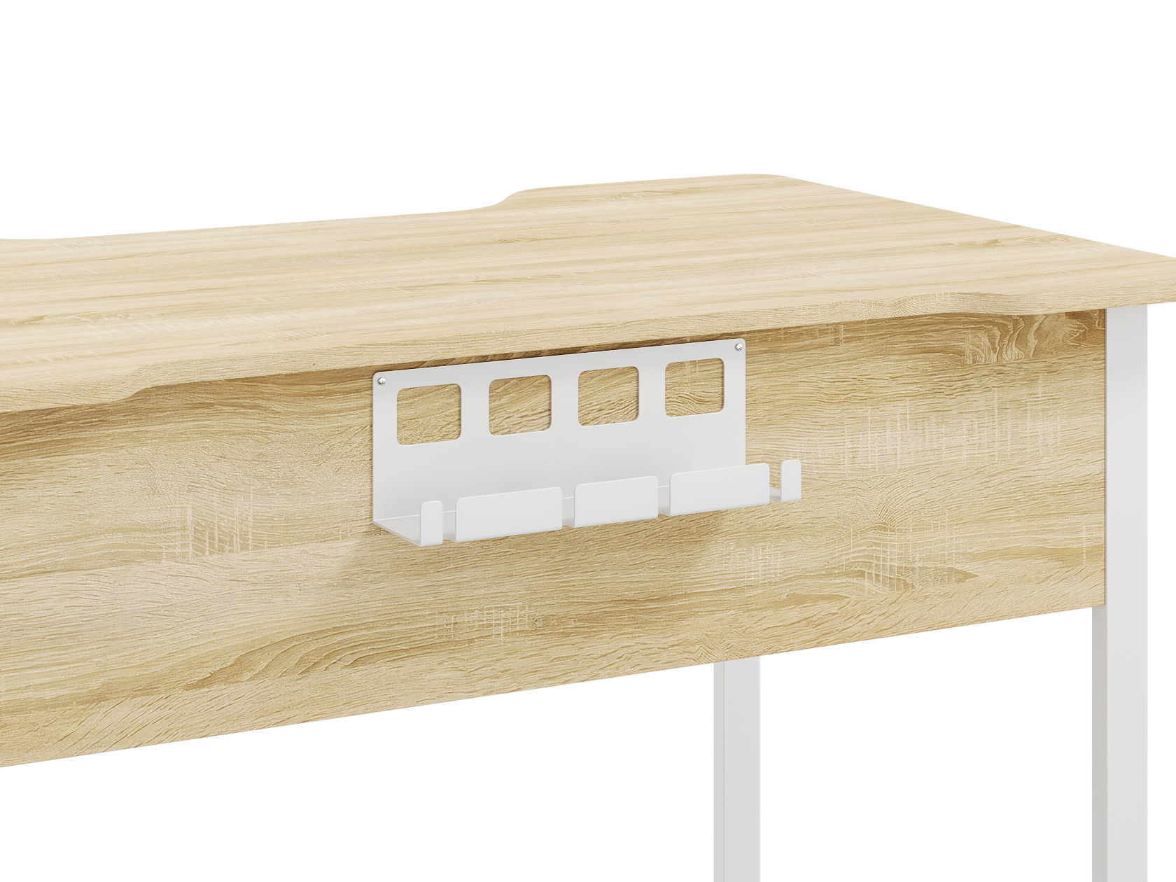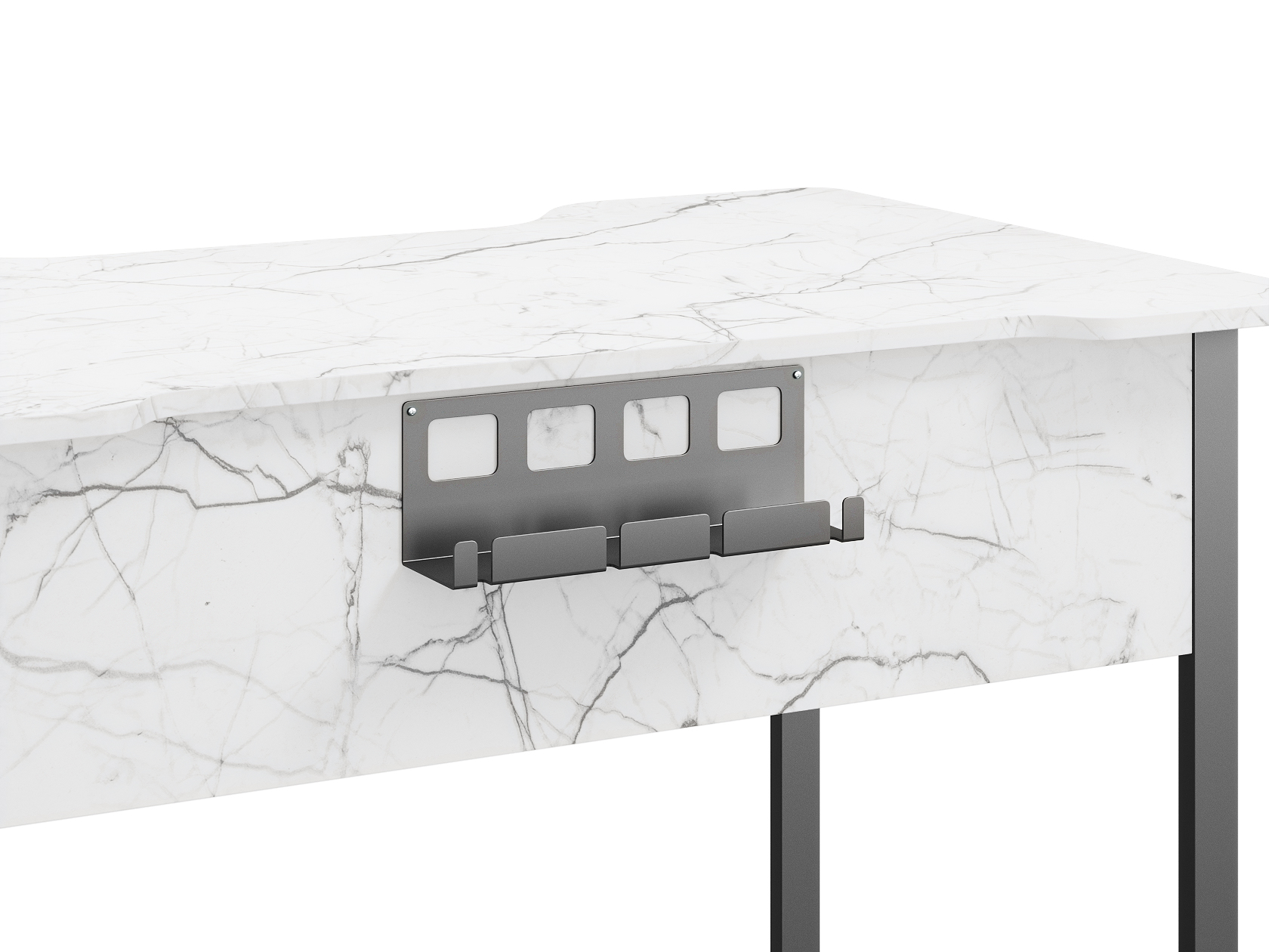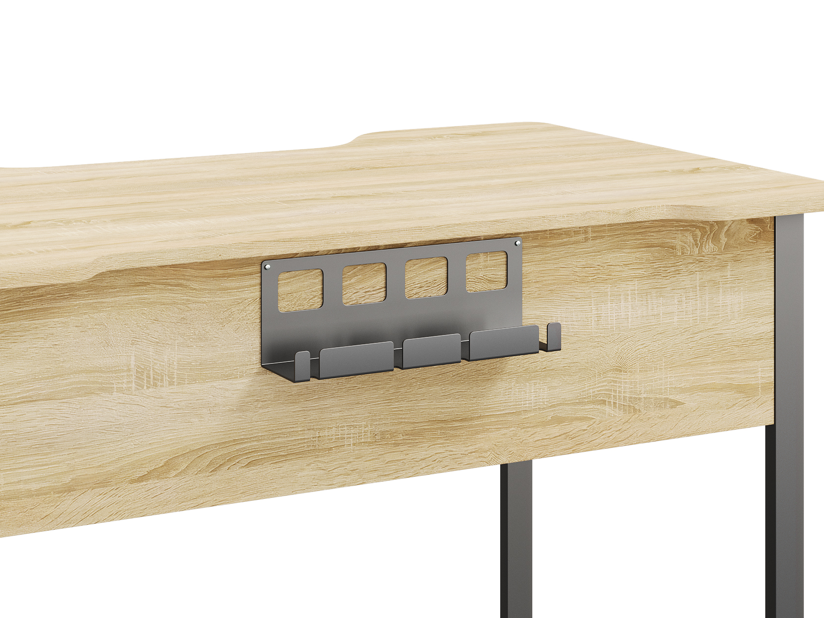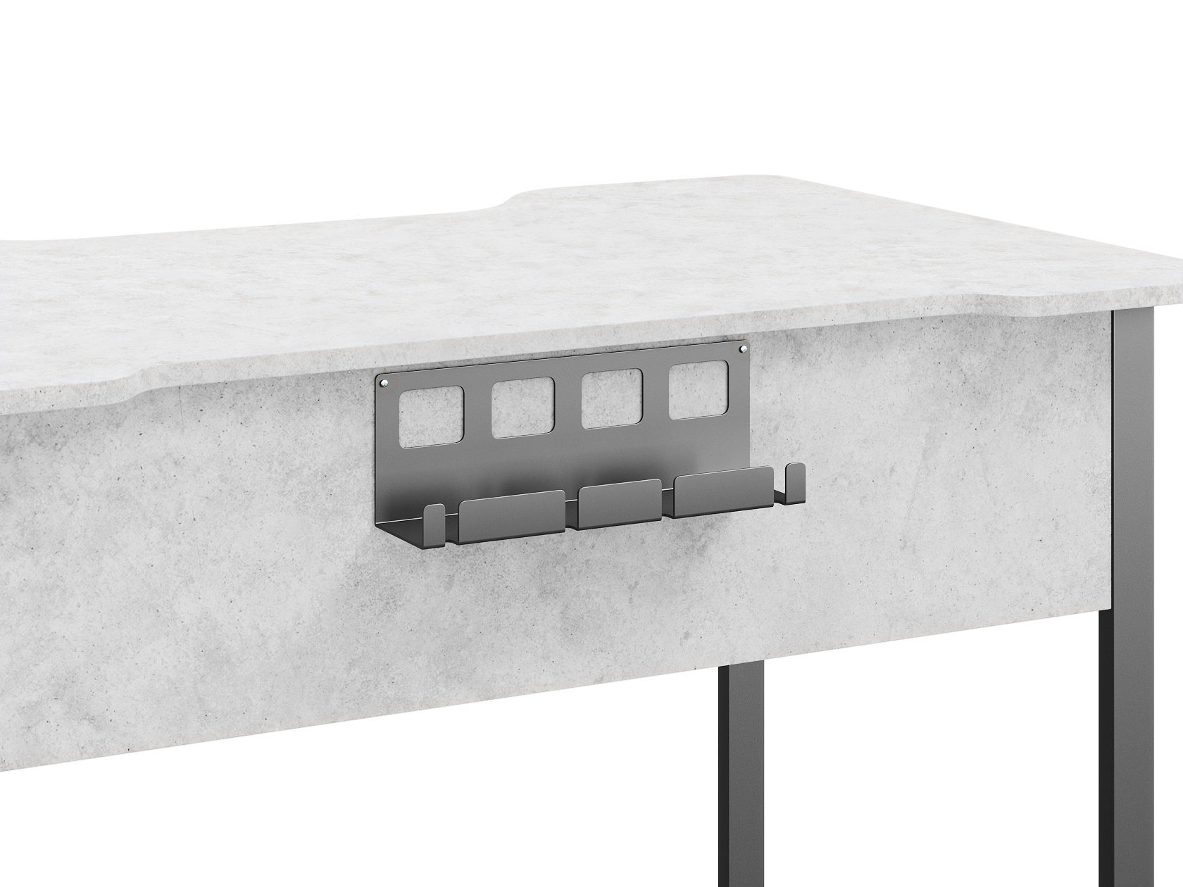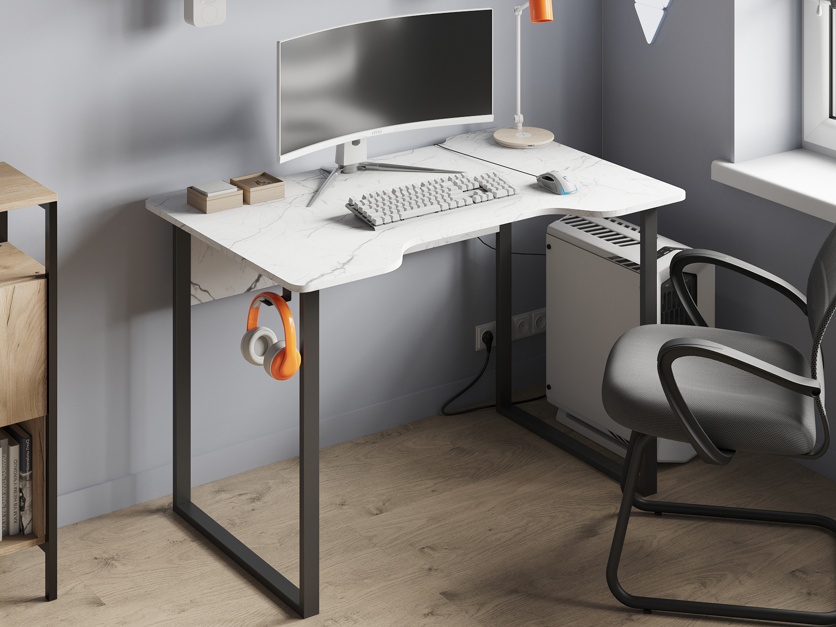 Компьютерный стол Эверест — эргономичная модель, которая отлично подходит для длительного времяпрепровождения за монитором. Анатомический вырез позволяет придвинуться вплотную и удобно расположить руки. Органайзер для проводов и держатель для наушников — практичные дополнения мебели.