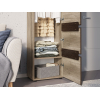 Распашной шкаф Энигма — идеальный выбор для тех, кто ценит практичность и минимализм. Узкая конструкция станет гармоничным дополнением интерьера небольшой комнаты. Полки и штанга позволяют удобно хранить одежду, аксессуары и другие необходимые вещи. В отделке нет внешней фурнитуры и декора: дверца открывается за скошенный край фасада.
