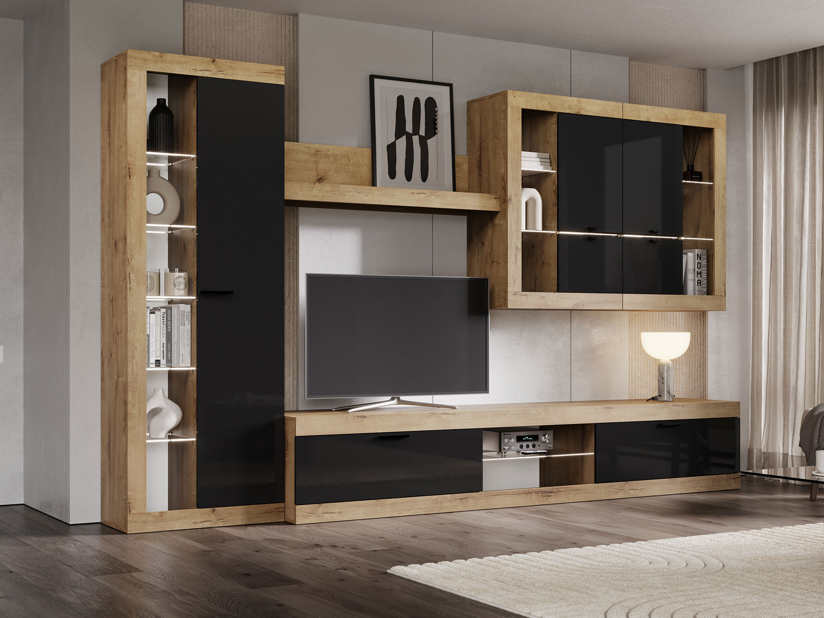 Дуб Вотан / Черный глянец. С подсветкой