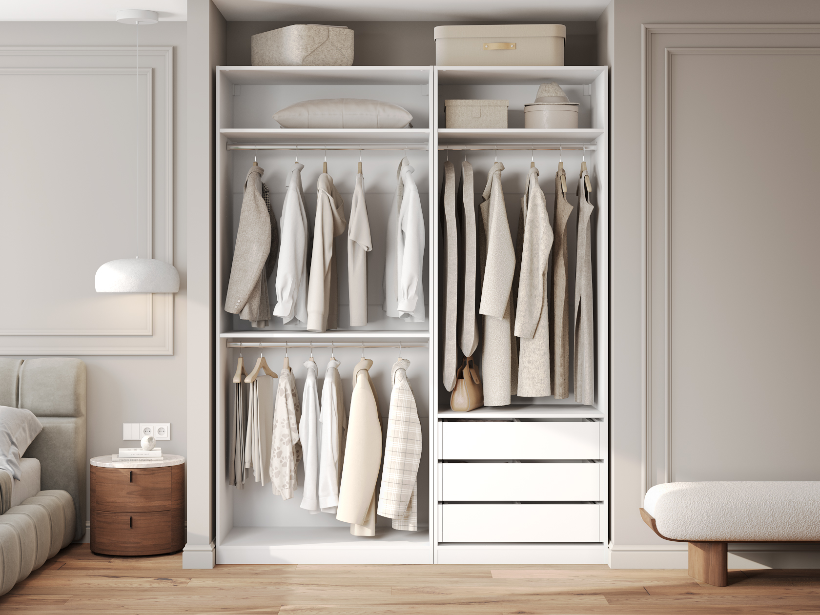 Шкаф Сиена Мега поможет создать полноценную систему хранения и легко находить нужную вещь. Вместительные элементы с большим количеством секций подойдут для просторной комнаты. Ниши со штангами, полки и выдвижные ящики позволят распределить всё необходимое: от постельных принадлежностей до костюмов и аксессуаров.